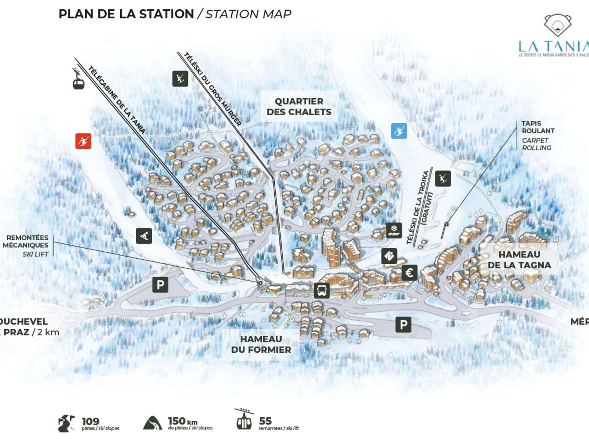 Genießen Sie die traumhafte Lage: Direkter Zugang zur Piste, Geschäfte und Restaurants in unmittelbarer Nähe – und das alles in einer ruhigen und einladenden Atmosphäre.