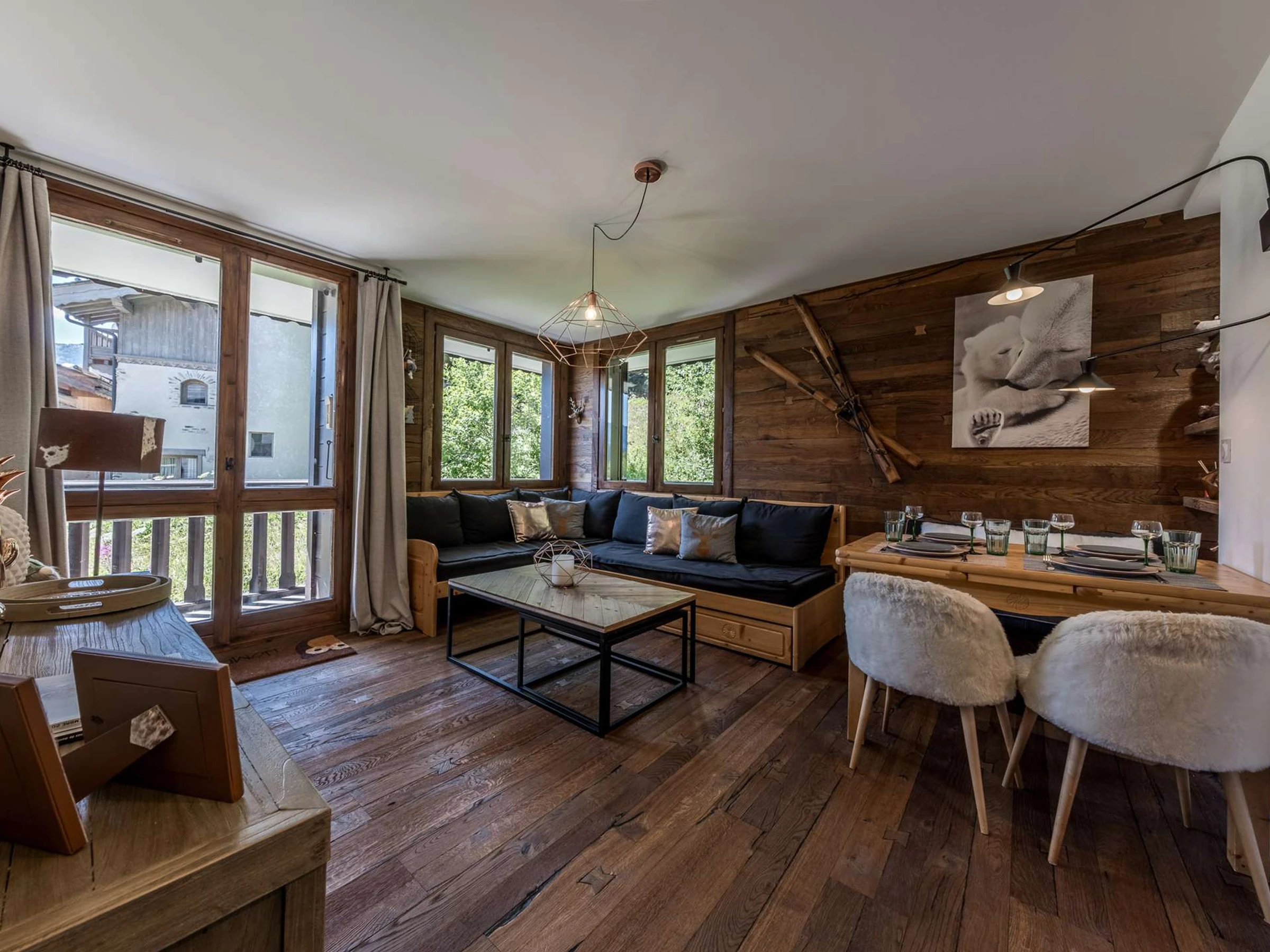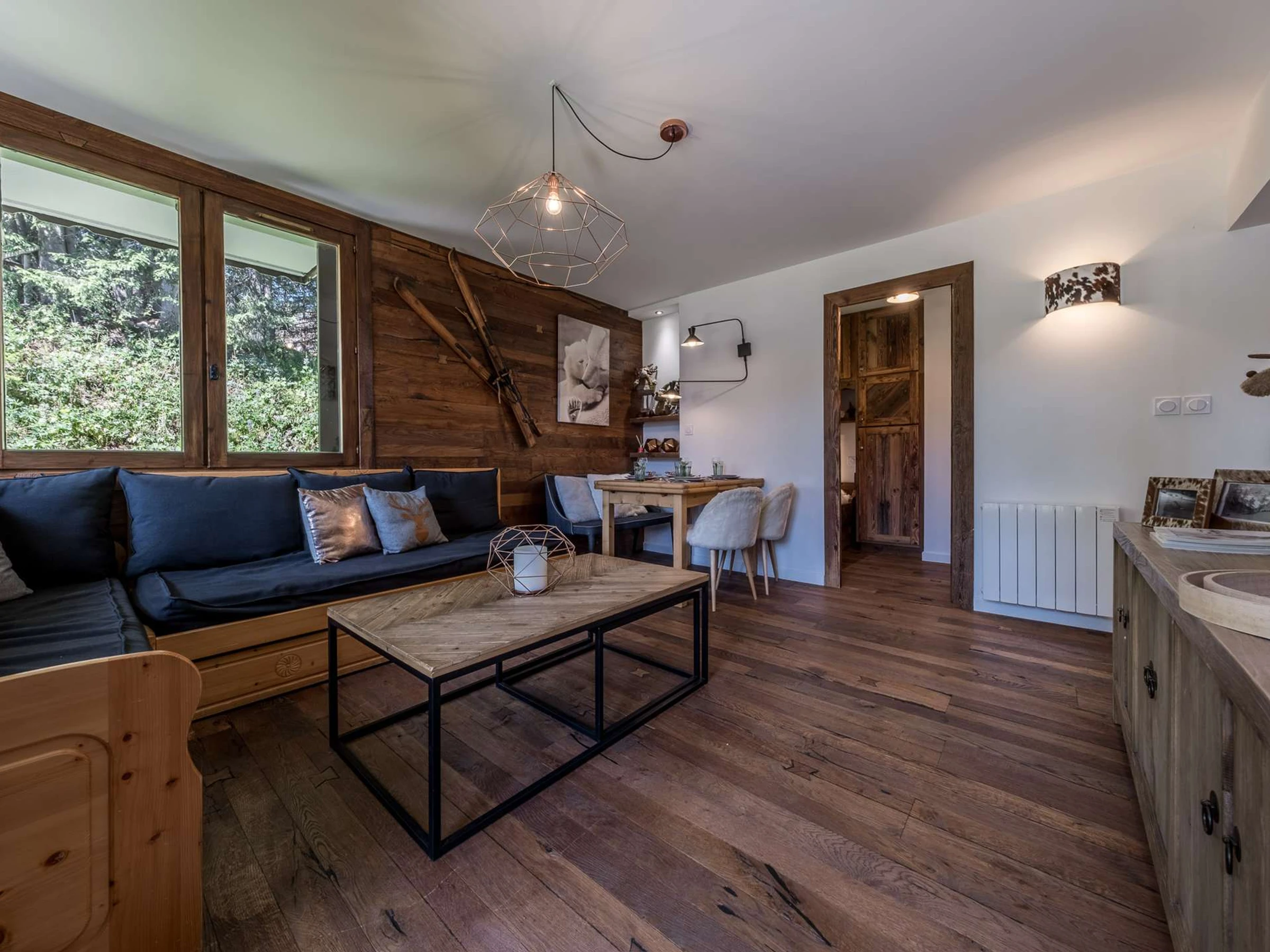 Wunderschöne Zweizimmerwohnung in idealer Lage in Bezug auf die Pisten von Courchevel 1850, ganz in der Nähe des Skigebiets, in einer ruhigen Gegend. 43 m² – Courchevel 1850 – 5 Schlafplätze – Pistennähe