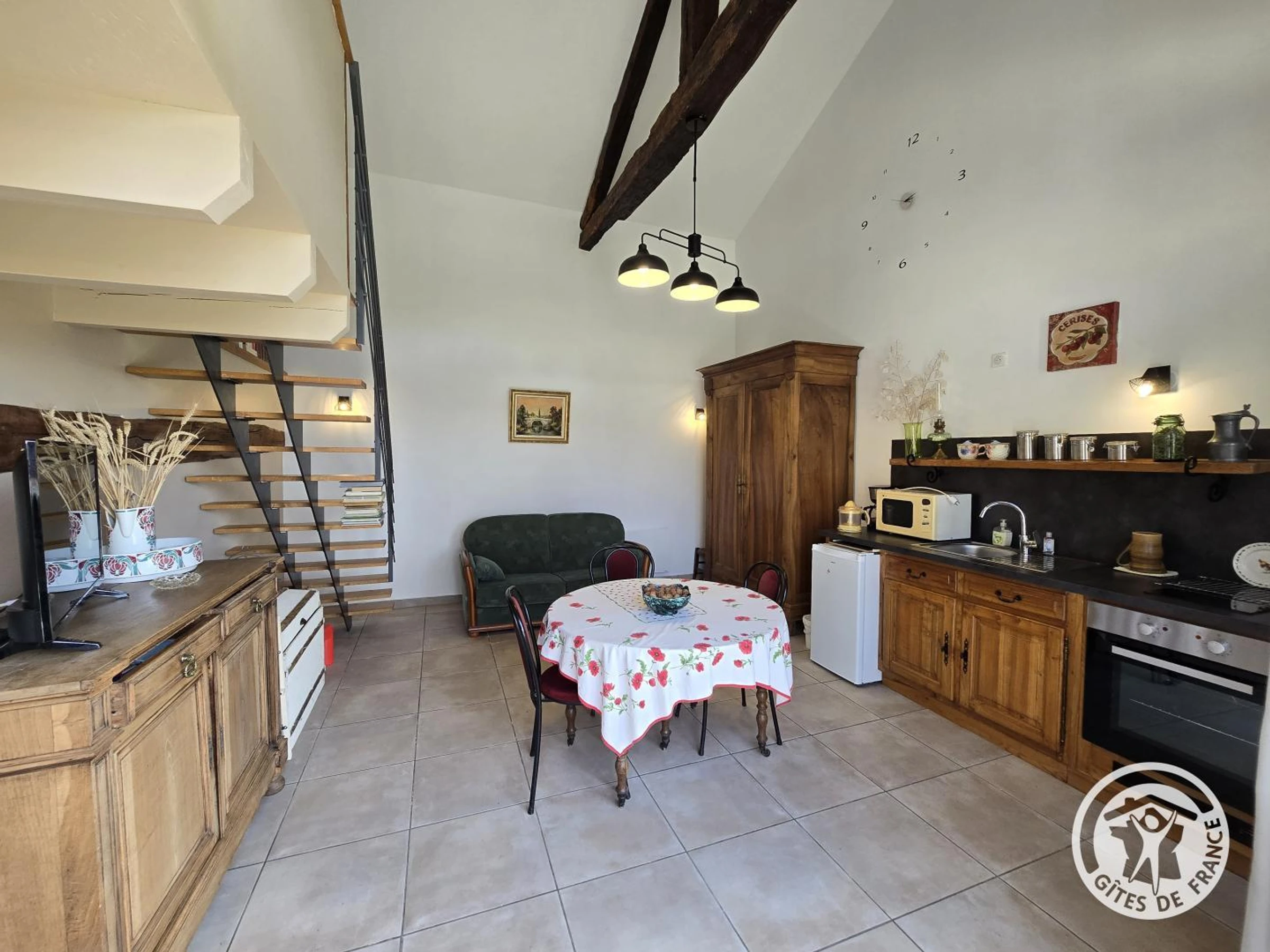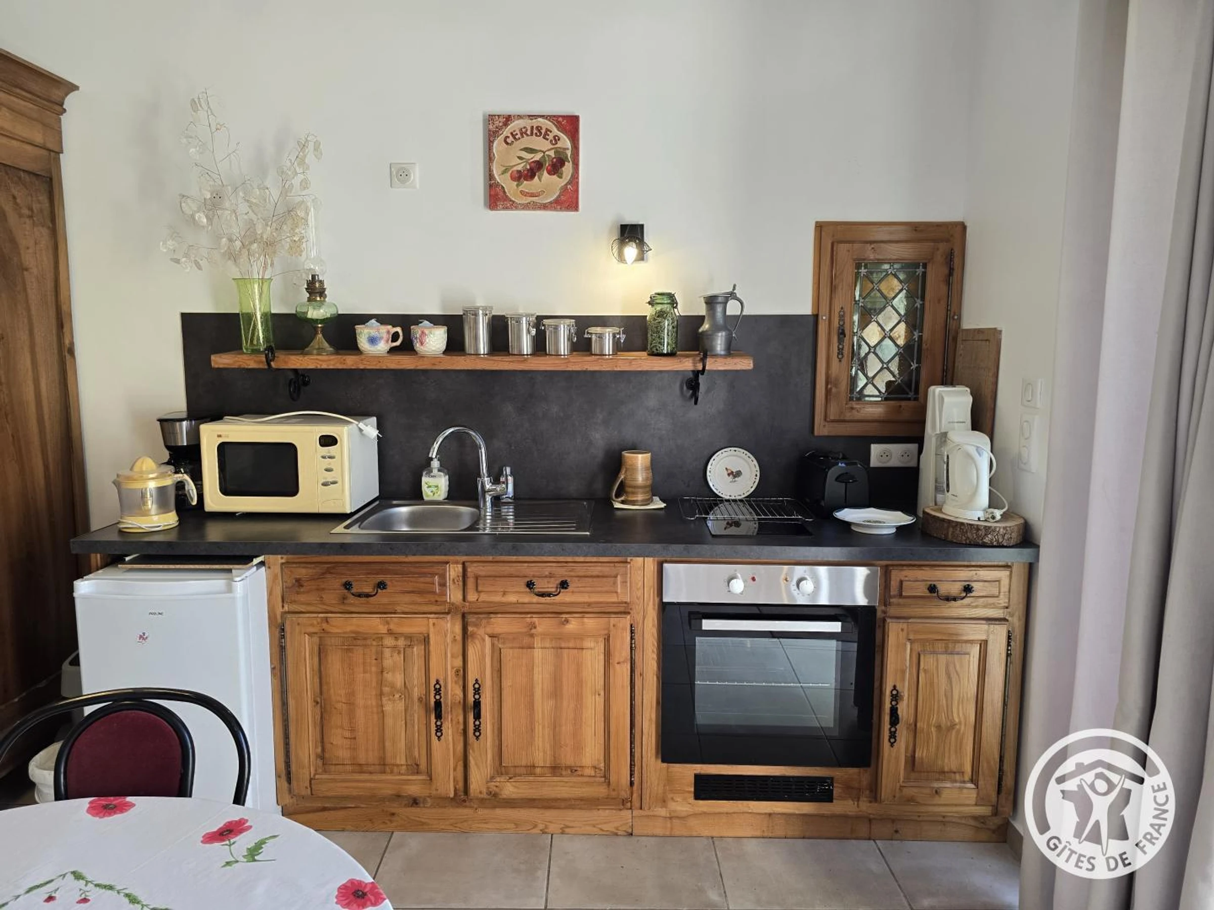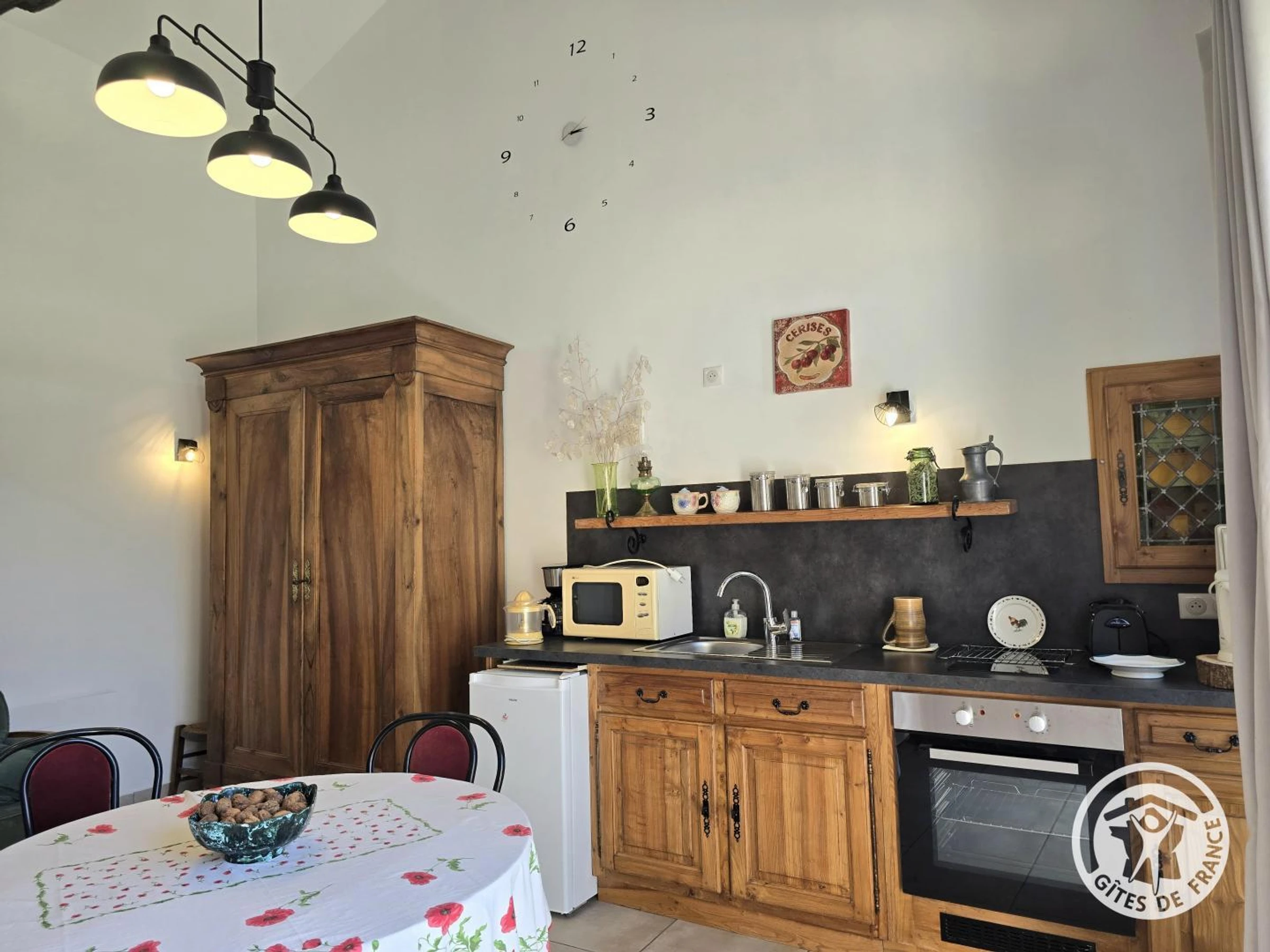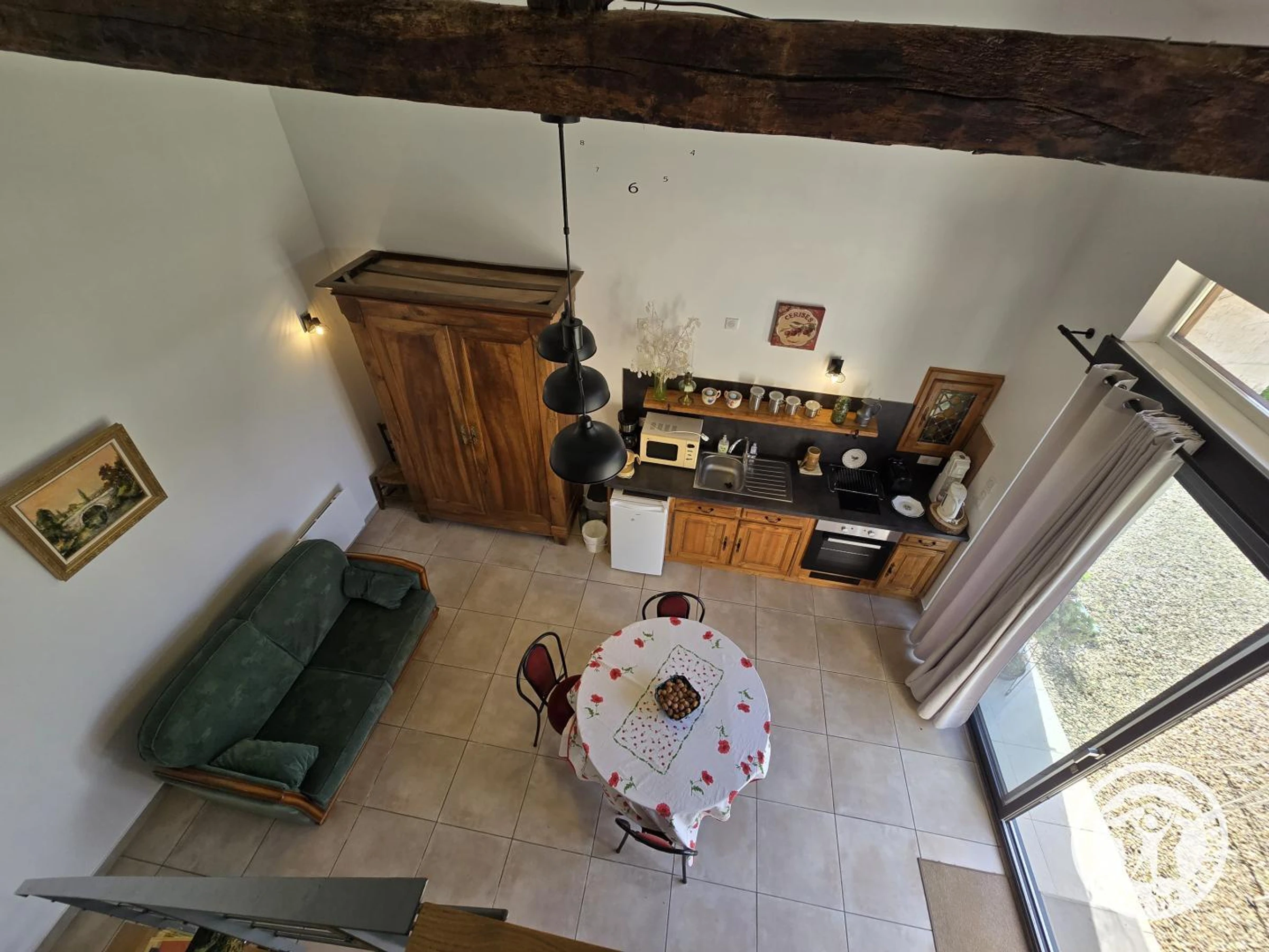 Dieses Ferienhaus, das an das Haus des Eigentümers angrenzt, bietet ein Wohnzimmer mit hohen Decken, eine kleine Küchenzeile mit Backofen, Mikrowelle, kleinem Kühlschrank und Kochfeld, einen Essbereich sowie ein Sofa mit Fernseher. Im Obergeschoss, auf der Galerie, befindet sich ein Doppelbett (140 cm). Ein privates Duschbad mit WC ist ebenfalls auf der Galerie vorhanden. Genießen Sie die Terrasse im Innenhof mit Gartenmöbeln, Sonnenschirm und Elektrogrill. Private Parkplätze stehen Ihnen vor Ort zur Verfügung. Babyausstattung (Reisebett mit Matratze, Hochstuhl und Babybadewanne) ist auf Anfrage erhältlich. Das Ferienhaus liegt in Coursac, nur wenige Minuten von Périgueux entfernt, und ist ein idealer Ausgangspunkt, um die Region Périgord zu erkunden. Besuchen Sie die Kathedrale Saint-Front, schlendern Sie über die Märkte, entdecken Sie die historischen Stätten der Region und genießen Sie die vielen Wanderwege in der Umgebung.