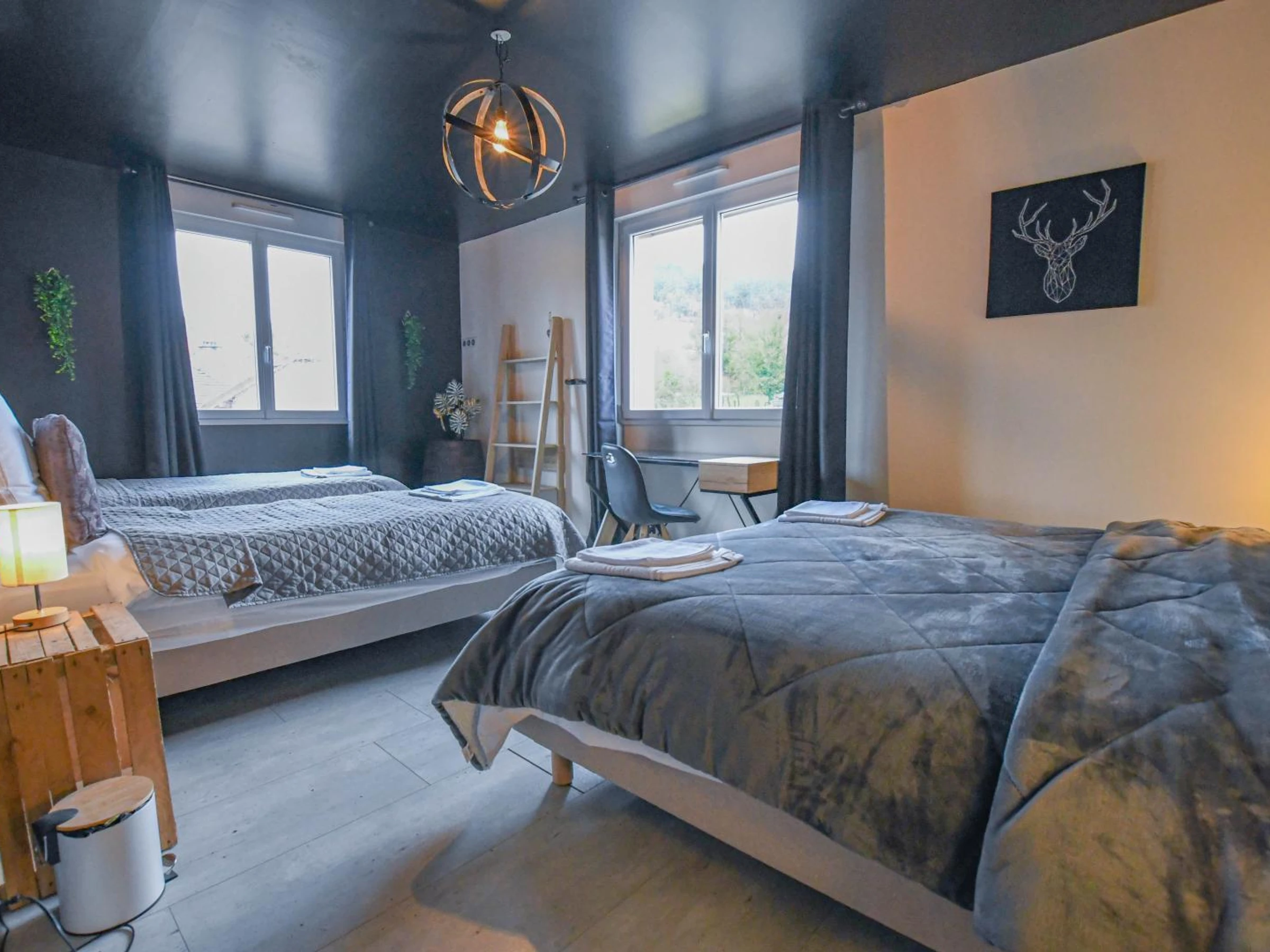 Das geräumige Wohnzimmer ist das Herzstück des Hauses: Billard, Airhockey, Brettspiele, ein großer Wohn-/Essbereich mit Fernseher und eine voll ausgestattete Küche. Hier ist für Unterhaltung und unvergessliche Momente gesorgt. Im Obergeschoss befinden sich drei geräumige Schlafzimmer mit jeweils vier Schlafplätzen, eines mit einem Kingsize-Bett (180 x 200 cm) und zwei Einzelbetten (90 x 200 cm), die zu einem Doppelbett zusammengestellt werden können, zwei Duschbäder und zwei WCs. Draußen erwartet Sie alles, was Sie sich wünschen: ein privater, beheizter Swimmingpool (29 °C), geöffnet vom 1. Mai bis 15. September (1,80 m tief, mit Sicherheitsabdeckung), eine große, möblierte Terrasse, eine Lounge für Aperitifs, Gartenmöbel und ein Grill für sommerliche Mahlzeiten, ein sicherer, umzäunter Innenhof zum Parken oder Boulespielen sowie ein Fahrradabstellplatz. Ein wahrer Ort zum Beisammensein, zum gemeinsamen Genießen und Entspannen in absoluter Ruhe. Die Betten sind bezogen, Bettwäsche wird gestellt, Heizung und Strom sind inklusive. Die Endreinigung ist inklusive, ausgenommen Bettwäsche abziehen, Müll entsorgen und Staubsaugen. Gönnen Sie sich einen geselligen Aufenthalt in einer komplett renovierten ehemaligen Weinpresse für bis zu 12 Personen – ideal für Familien- oder Freundestreffen. Mitten in den Weinbergen der Champagne gelegen, nur 10 Minuten vom Freizeitpark Nigloland und 50 Minuten von Troyes entfernt, vereint unser Ferienhaus authentischen Charme mit Annehmlichkeiten für jeden Geschmack. Ob Sie gerne die Umgebung erkunden, Rad fahren, wandern, Weinproben genießen (Reservierung beim Eigentümer erforderlich) oder Nervenkitzel suchen – hier ist für jeden etwas dabei. Ein authentischer, geräumiger und einladender Ort für unvergessliche Momente in geselliger Runde.