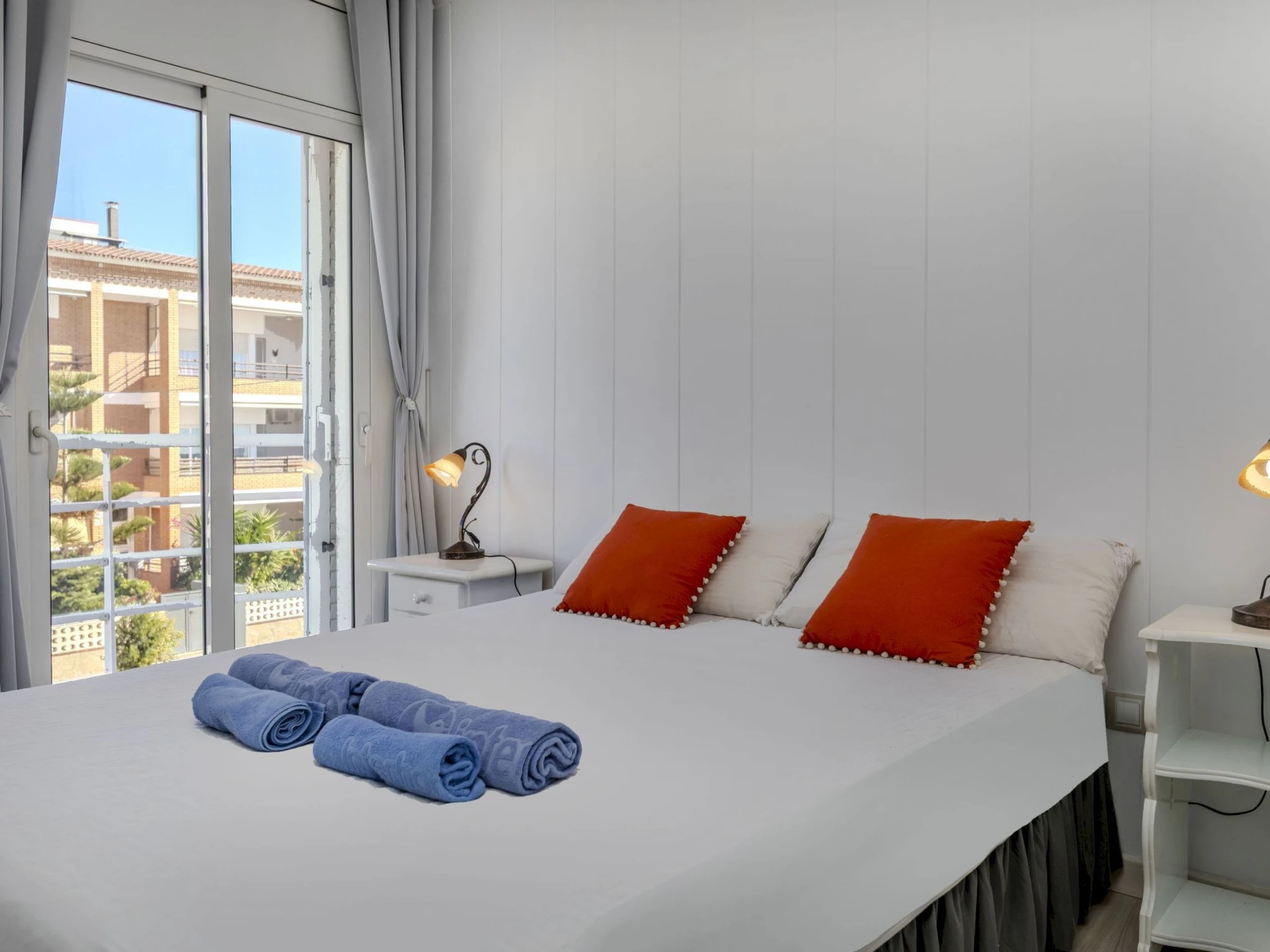 "Xaloc", 3-Zimmer-Wohnung 59 m2 im 1. Stock. Renoviert im Jahre 2024, zweckmässig und gemütlich eingerichtet: Wohn-/Esszimmer mit Digital-TV und Flachbildschirm. Ausgang zum Gartensitzplatz. 1 Zimmer mit 1 franz. Bett (160 cm, Länge 200 cm), Ventilator. Ausgang zum Balkon. 1 Zimmer mit 1 franz. Bett (150 cm, Länge 190 cm), Ventilator. Offene Küche (Backofen, Geschirrspüler, 3 Glaskeramikplatten, Toaster, Wasserkocher, Mikrowelle, elektrische Kaffeemaschine, Kapseln für die Kaffeemaschine (Krups) extra). Dusche/Bidet/WC. Klimaanlage, Warmluftheizung. Grosse Terrasse. Terrassenmöbel, Liegestühle. Herrliche Sicht auf das Meer. Zur Verfügung: Waschmaschine, Wäschetrockner, Bügeleisen, Kinderhochstuhl, Babybett bis 2 Jahre, Haartrockner. Internet (WLAN, gratis). Parkplatz Nr. 18 (überdacht, 1 Auto). Bitte beachten: geeignet für Familien. Nichtraucher-Unterkunft, Parkplatz nur für kleine Wagen. [hidden]