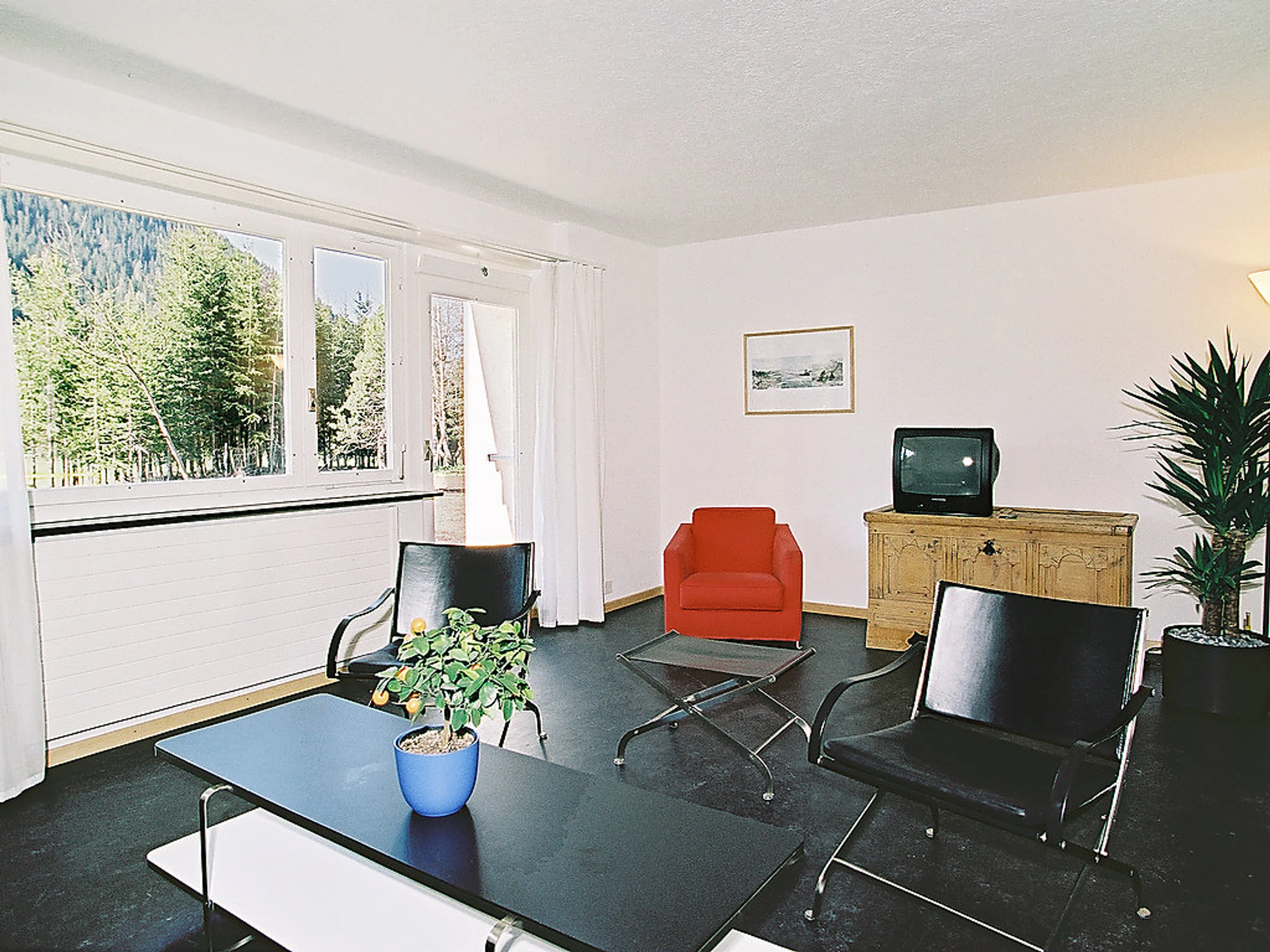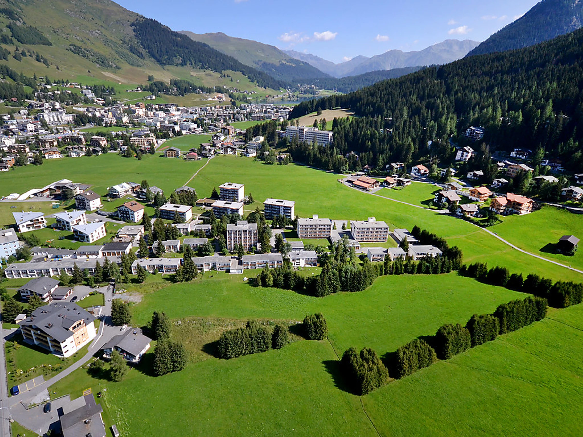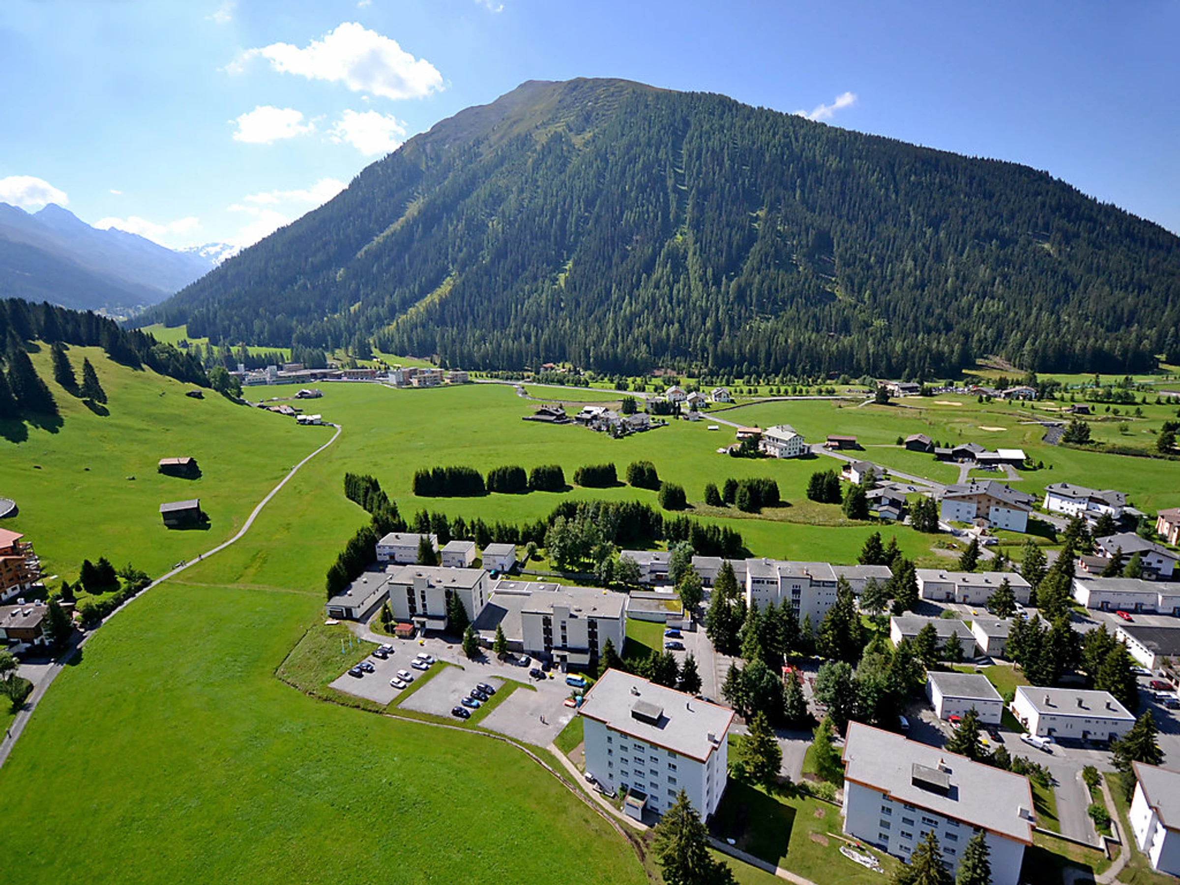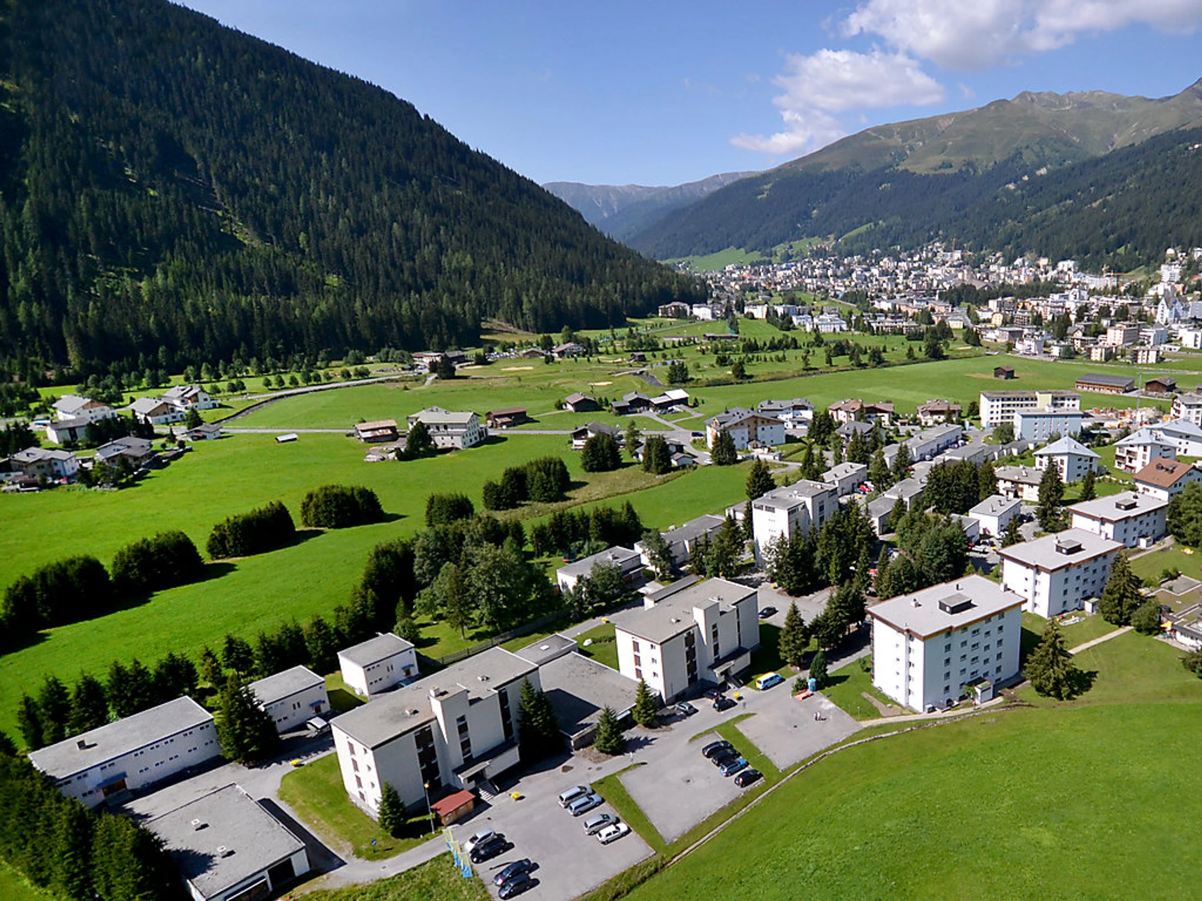 Grosse Residenz "Solaria", umgeben von Bäumen und Wiesen. Am Ortsrand, 500 m vom Zentrum von Davos Dorf, ruhige Lage. Zur Mitbenutzung: Kinderspielplatz. In der Anlage: Empfang, Internetzugang, Waschmaschine, Wäschetrockner (zur Mitbenutzung, extra). Wäschewechsel 1 mal wöchentlich. Handtuchwechsel 1 mal wöchentlich. Wohnungsreinigung möglich (extra). Brötchenservice (extra). Parkplatz (extra), Gemeinschaftsgarage (extra). Lebensmittelgeschäft, Restaurant, Bäckerei 500 m, Bushaltestelle 50 m, Bahnstation "Davos Dorf" 600 m. Golfplatz (18 Loch) 400 m, Bergbahn 500 m, Langlaufloipe 50 m. Bitte beachten: Babyausstattung auf Anfrage (inkl.). Gratis Skibus.