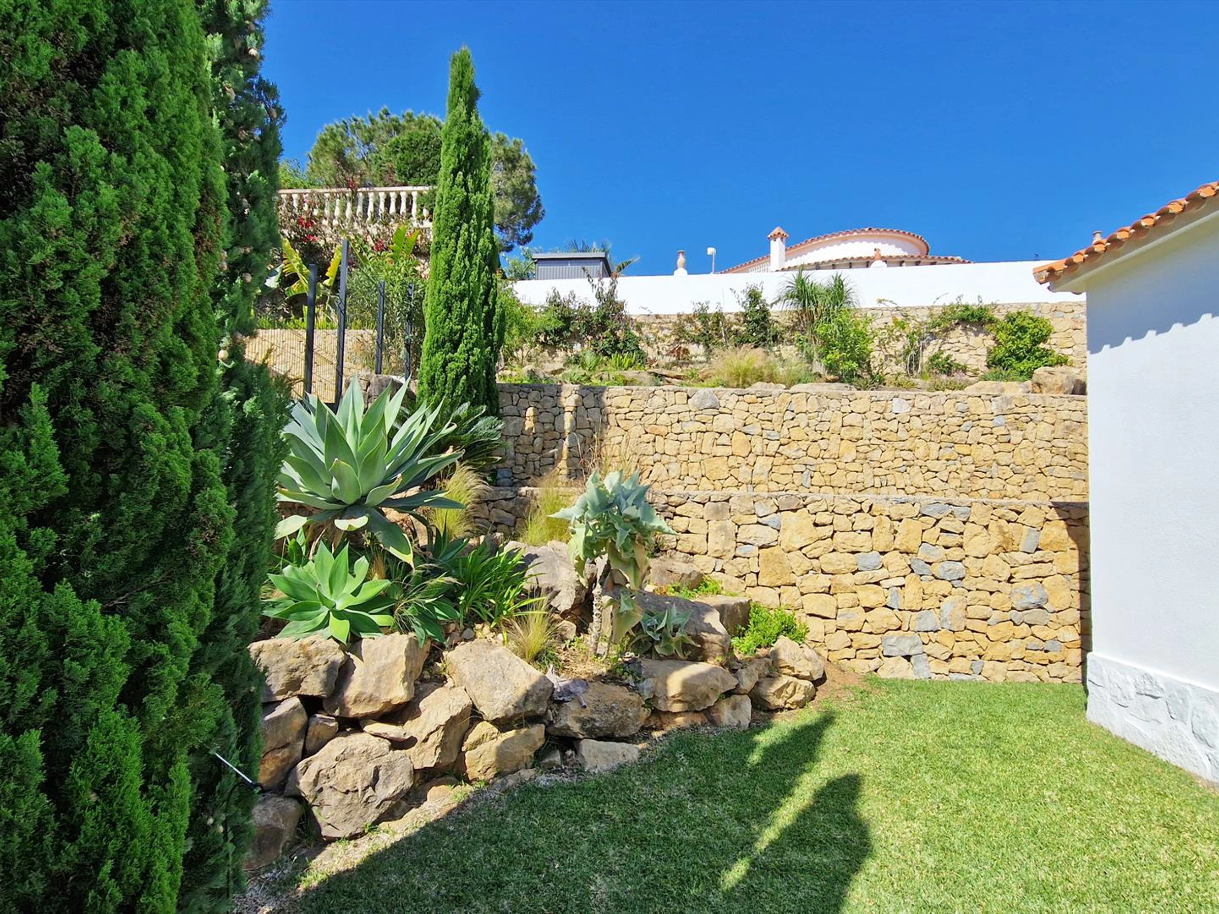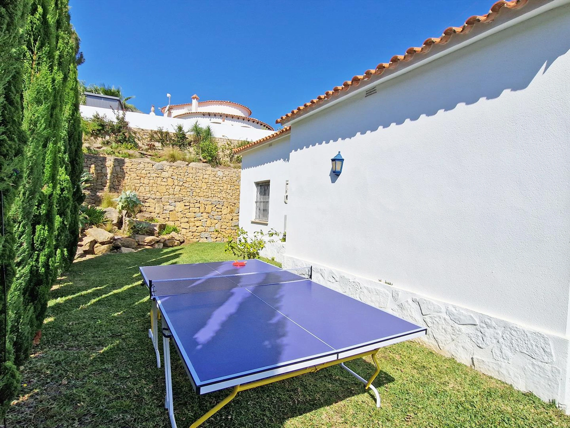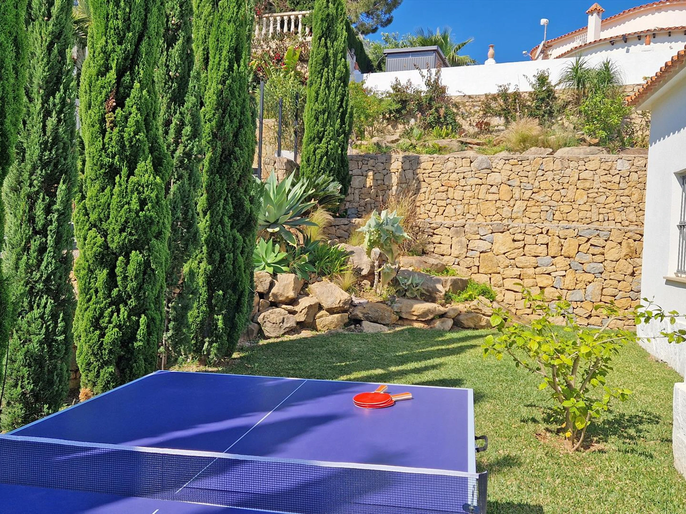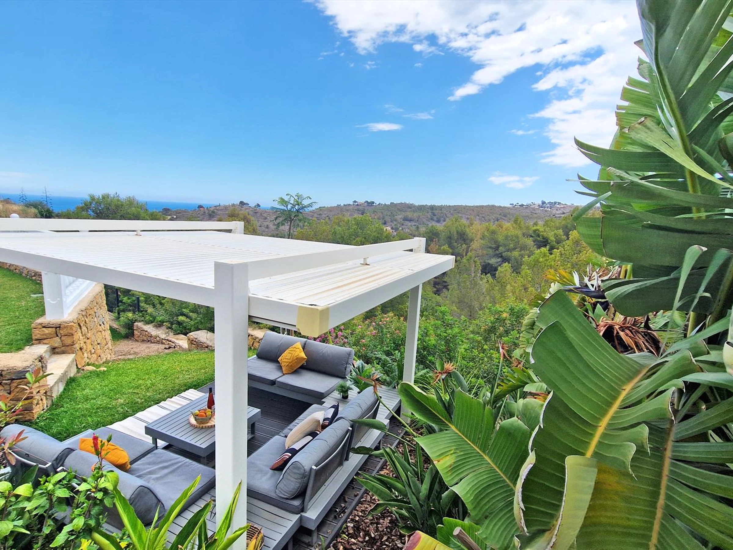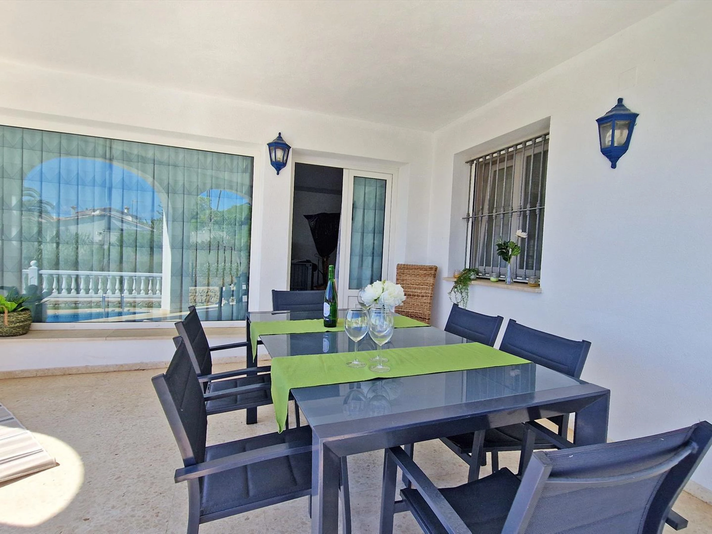 Komfortables Ferienhaus für 6 Personen, in einer ruhigen Wohngegend gelegen am Fuss des Bergs Montgó, Denia. Ein charmantes Haus umgeben von Rasen und mediterranem Garten, mit privatem Pool und beeindruckender Aussicht auf das Meer, das Bergmassiv und die Umgebung.