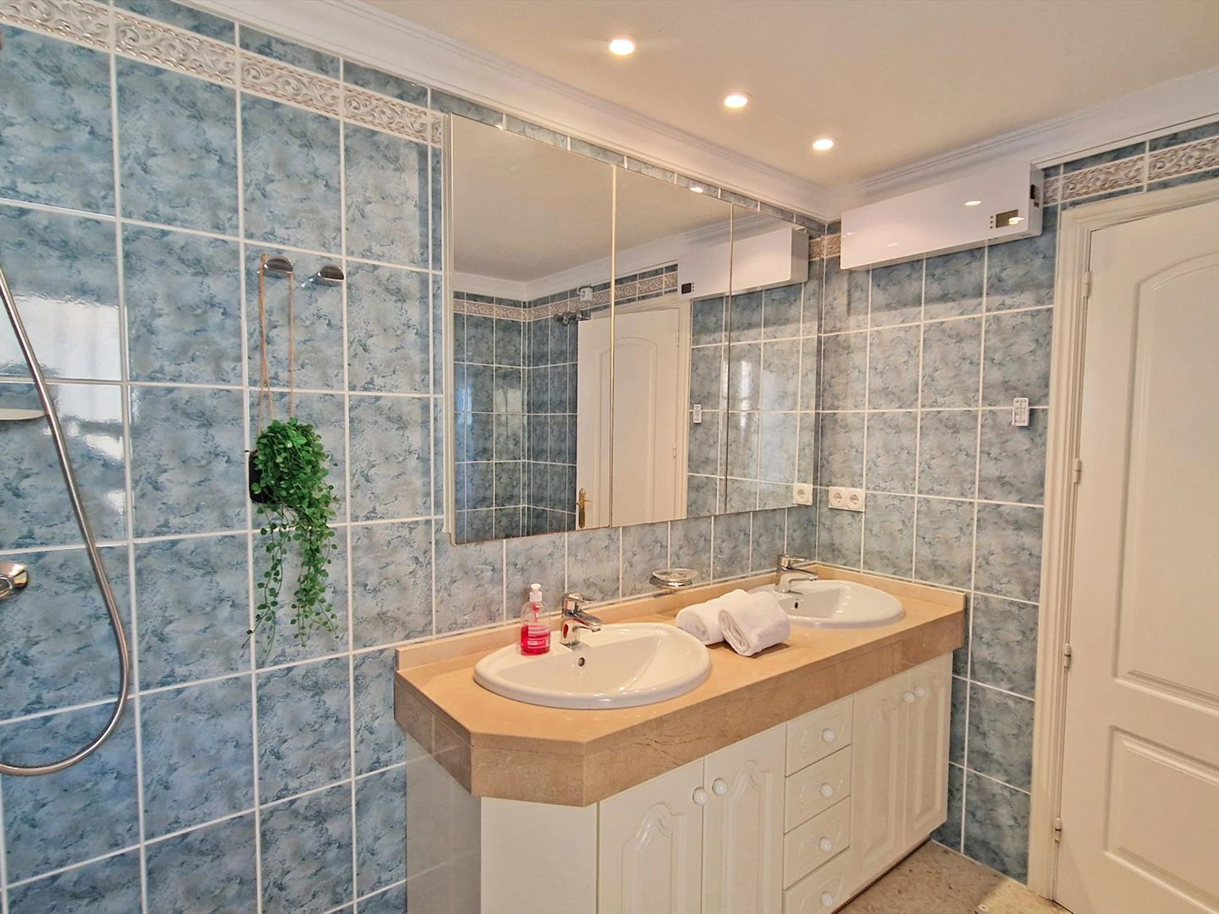 * 1 Schlafzimmer mit grossem Doppelbett und Klimaanlage und ensuite Badezimmer