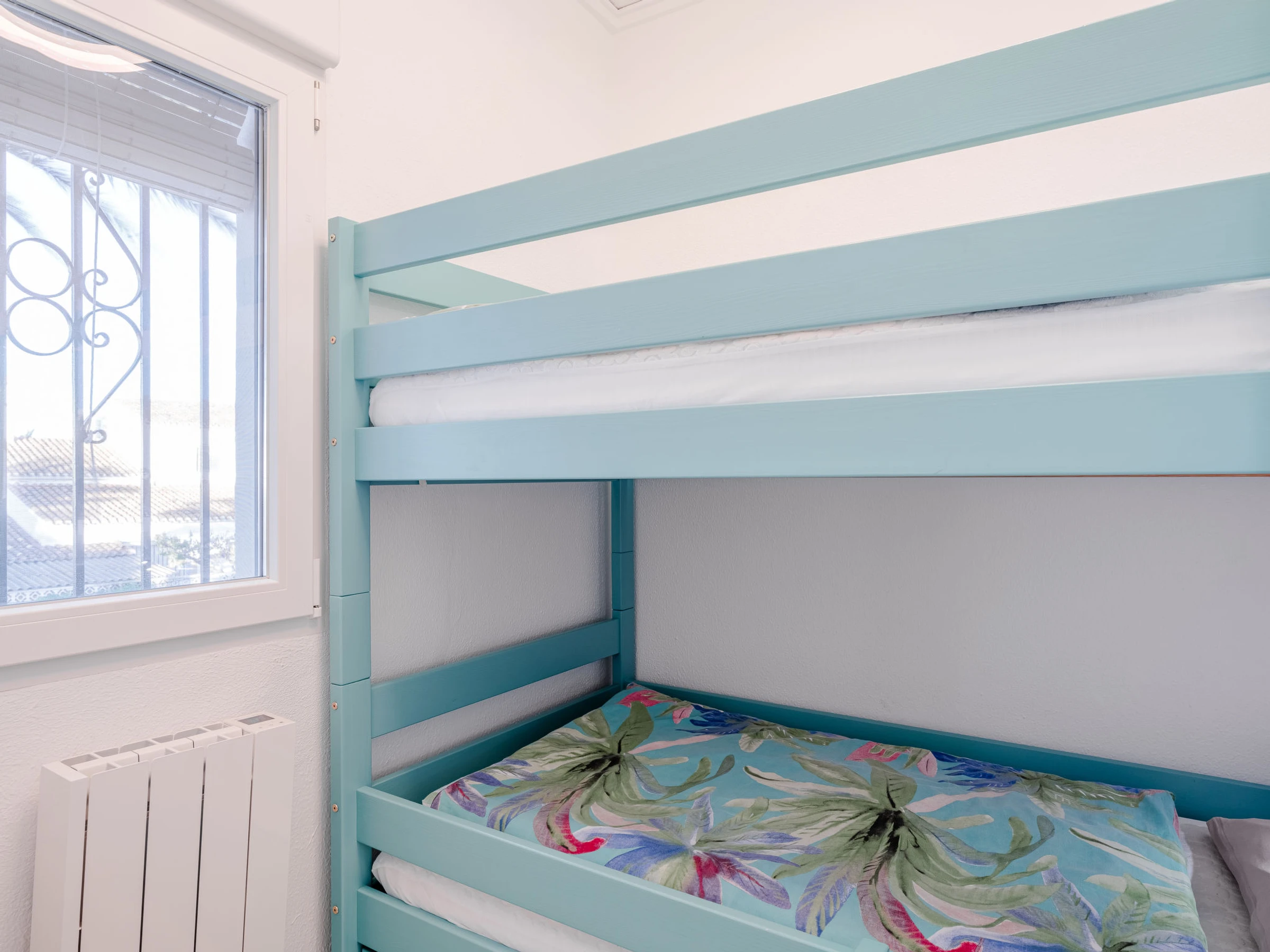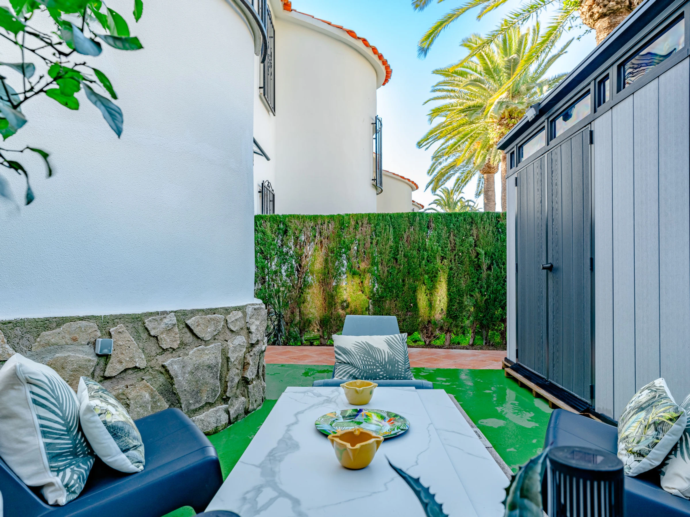 Sehr schönes, gemütliches, sehr komfortables Reihenhaus "Residencia La Perla". Im Ort, 4 km vom Zentrum von Dénia, vom Meer, 700 m vom Strand. Zur Mitbenutzung: 2 Schwimmbäder (saisonale Verfügbarkeit: [hidden] - [hidden] mit Innentreppe. Ungleichmässige Schwimmbadform, Kinderbecken, Rutschbahn, Aussendusche, Kinderspielplatz. Zur Alleinbenutzung: Grundstück mit Rasen, Parkplatz beim Haus. Einkaufsgeschäft 300 m, Supermarkt 900 m, Restaurant 400 m, Bar 450 m, Bushaltestelle 800 m, Bahnstation 6 km, Fähre 6 km, Sandstrand "Playa de les Bovetes" 700 m. Sporthafen 4.5 km, Jacht-Hafen 4.5 km, Segelschule 700 m. Der Besitzer akzeptiert keine Jugendgruppen.