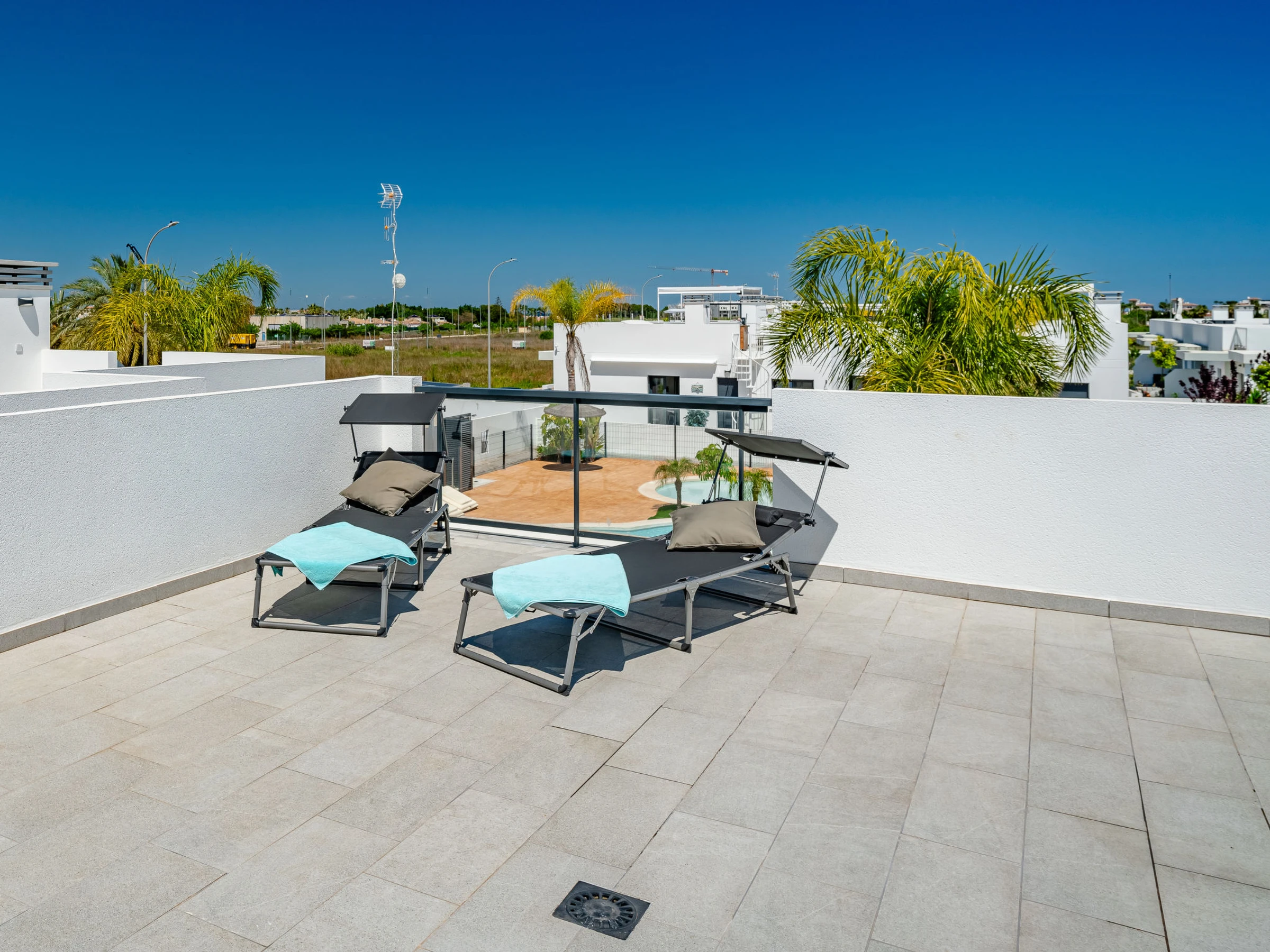Modernes, schönes Doppelhaus "Vergel Beach", Baujahr 2024. Im Ort El Vergel, ruhige, sonnige Lage, 1.2 km vom Meer, 1.2 km vom Strand. Zur Mitbenutzung: Schwimmbad (19 x 9 m, 40 - 180 cm tief, saisonale Verfügbarkeit: [hidden] - [hidden] mit Innentreppe. Ungleichmässige Schwimmbadform, Aussendusche, Parkplatz auf dem Grundstück. Einkaufsgeschäft 600 m, Supermarkt 550 m, Restaurant, Café 450 m, Bushaltestelle 2 km, Sandstrand 1.2 km. Sporthafen 10 km, Golfplatz (18 Loch) 6.5 km, Surfschule 2 km, Segelschule 2 km. Nahe gelegene Sehenswürdigkeiten: La Sella Golf - 27 Holes. Bitte beachten: kein Fahrstuhl vorhanden. Der Besitzer akzeptiert keine Jugendgruppen.