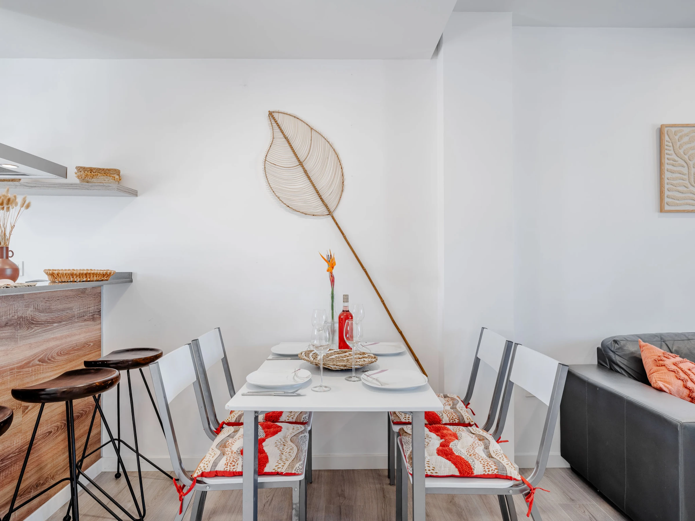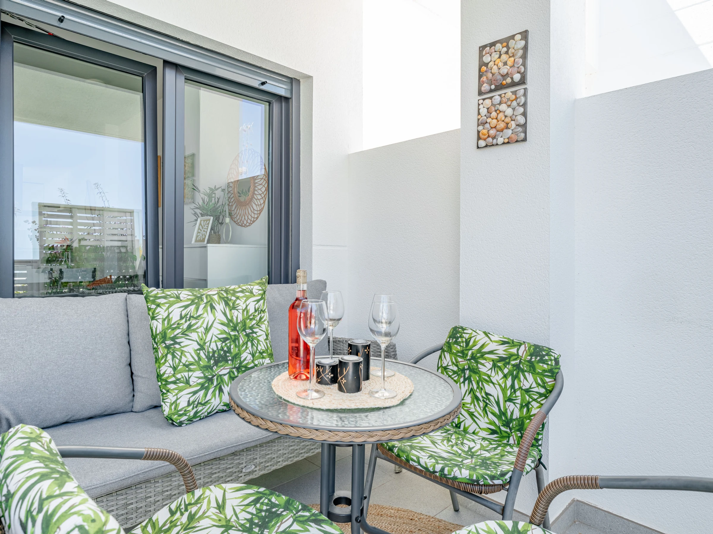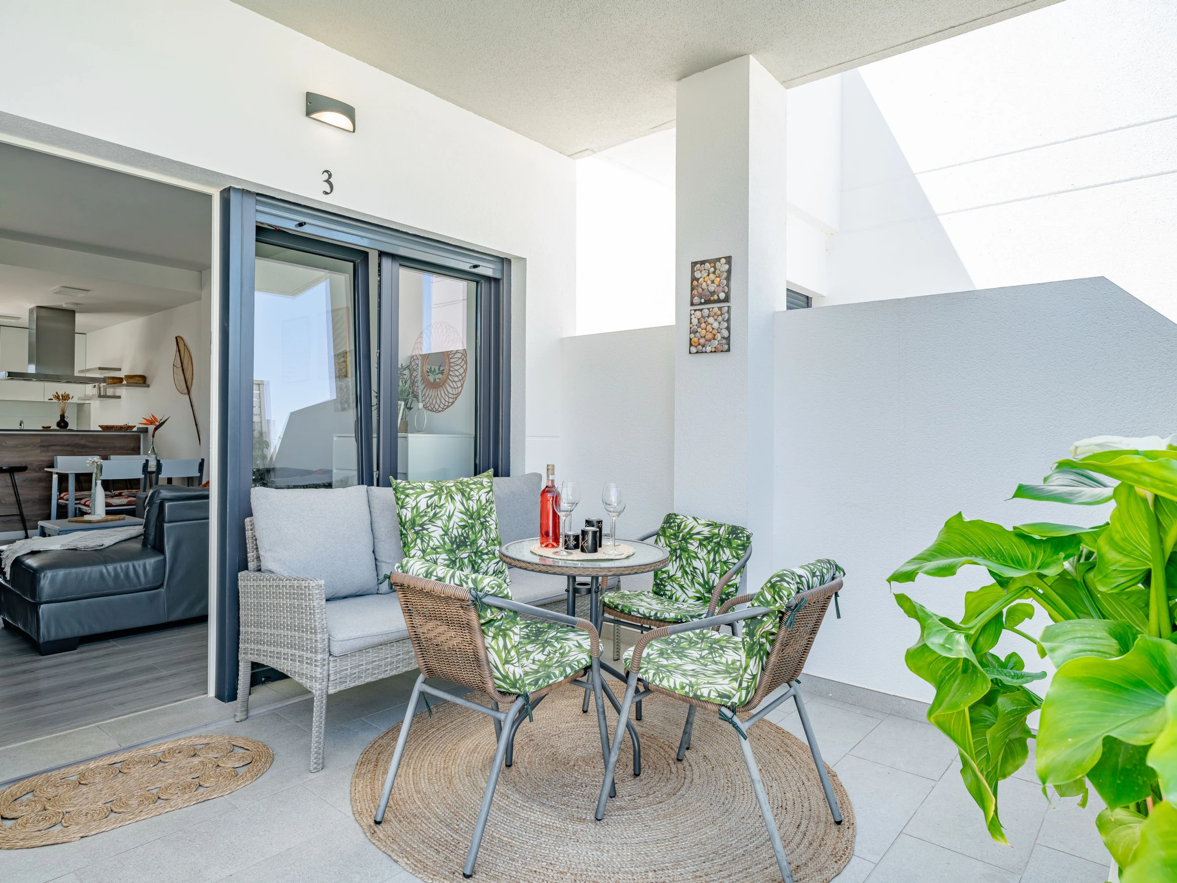 "Vergel Beach", 3-Zimmer-Doppelhaushälfte 80 m2. Geräumig und hell, sehr schön und stilvoll eingerichtet: Wohn-/Esszimmer mit Sat-TV, Klimaanlage und Warmluftheizung. Ausgang zur Terrasse, zum Schwimmbad. 1 Zimmer mit 1 franz. Bett (150 cm, Länge 200 cm), Dusche/WC, Klimaanlage und Warmluftheizung. 1 Zimmer mit 1 Doppelbett (2 x 90 cm, Länge 200 cm), Klimaanlage und Warmluftheizung. Offene Küche (Backofen, Geschirrspüler, 3 Induktionskochplatten, Toaster, Wasserkocher, Mikrowelle, Tiefkühler, elektrische Kaffeemaschine, Kapseln für die Kaffeemaschine (Dolce Gusto) extra) mit Klimaanlage und Warmluftheizung. Ausgang zur Terrasse. Dusche/WC. 2 grosse Terrassen. Terrassenmöbel, Liegestühle, Loggia, Sitzplatz. Sicht auf die Berge, das Tal und das Schwimmbad. Zur Verfügung: Waschmaschine, Bügeleisen, Kinderhochstuhl, Babybett, Haartrockner. Internet (WLAN, gratis). Parkplatz Nr. 3. [hidden]