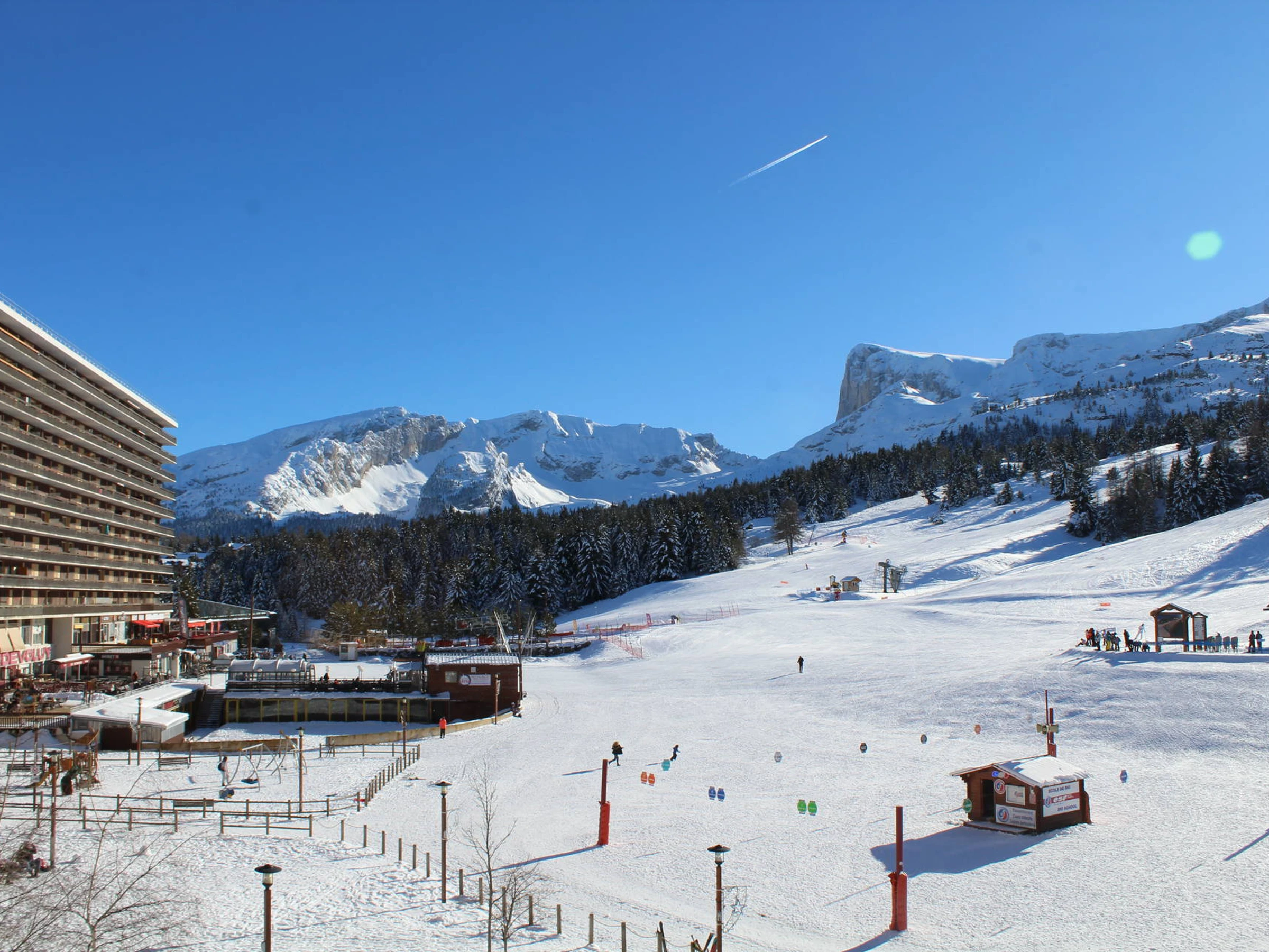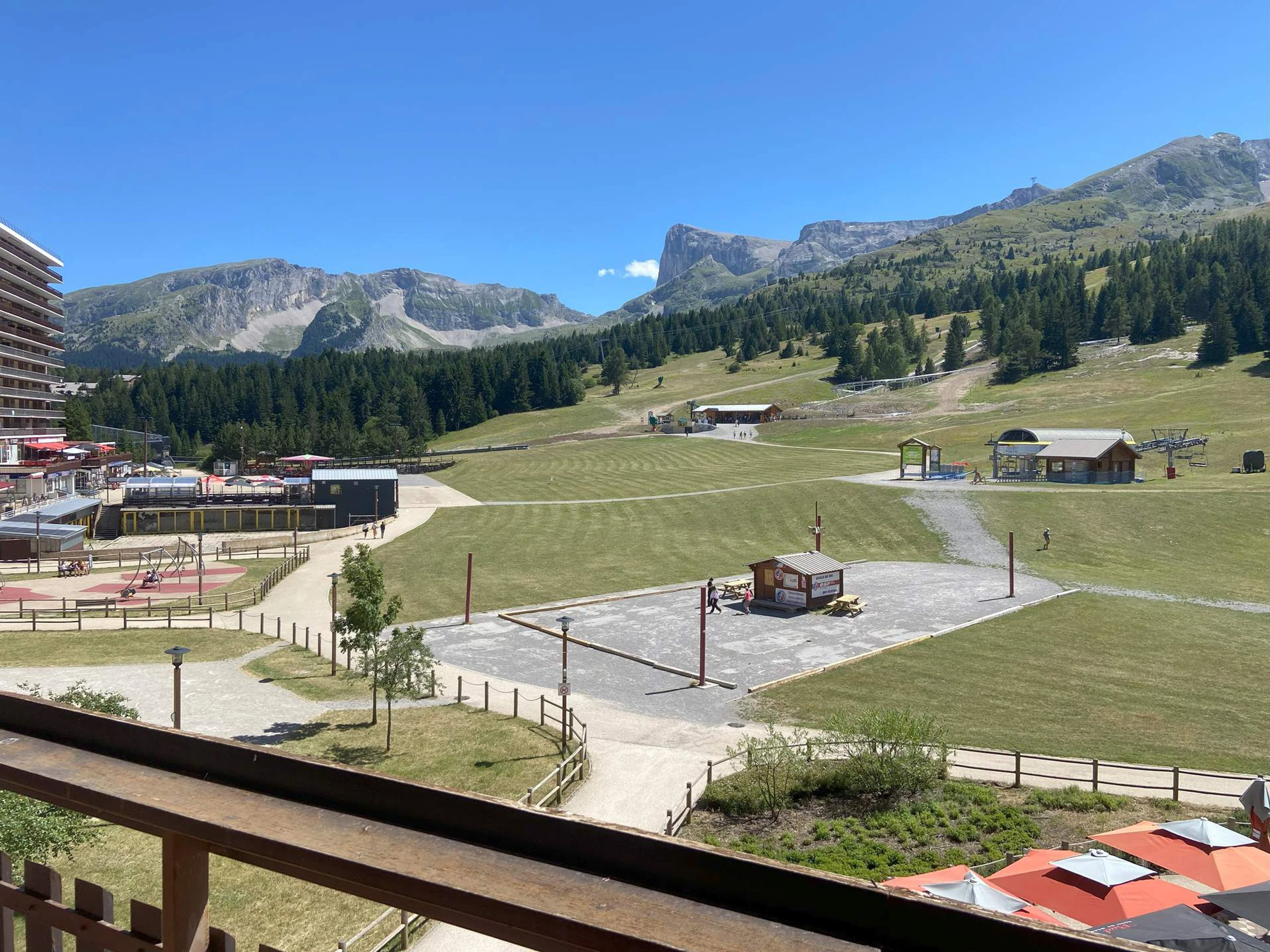 Le Bois d'Aurouze, Bâtiment Principal de Superdévoluy. Grande résidence des années 70 (classé au patrimoine 20e siècle). Principalement des studios 4 persons, exposition sud ou vallée avec balcon, et studios 2 personnes, exposition vallée, sans balcon. Au sud, très belle vue sur le domaine skiable et le Pic de Bure. Côté Vallée, vue sur la Montagne de Faraud.