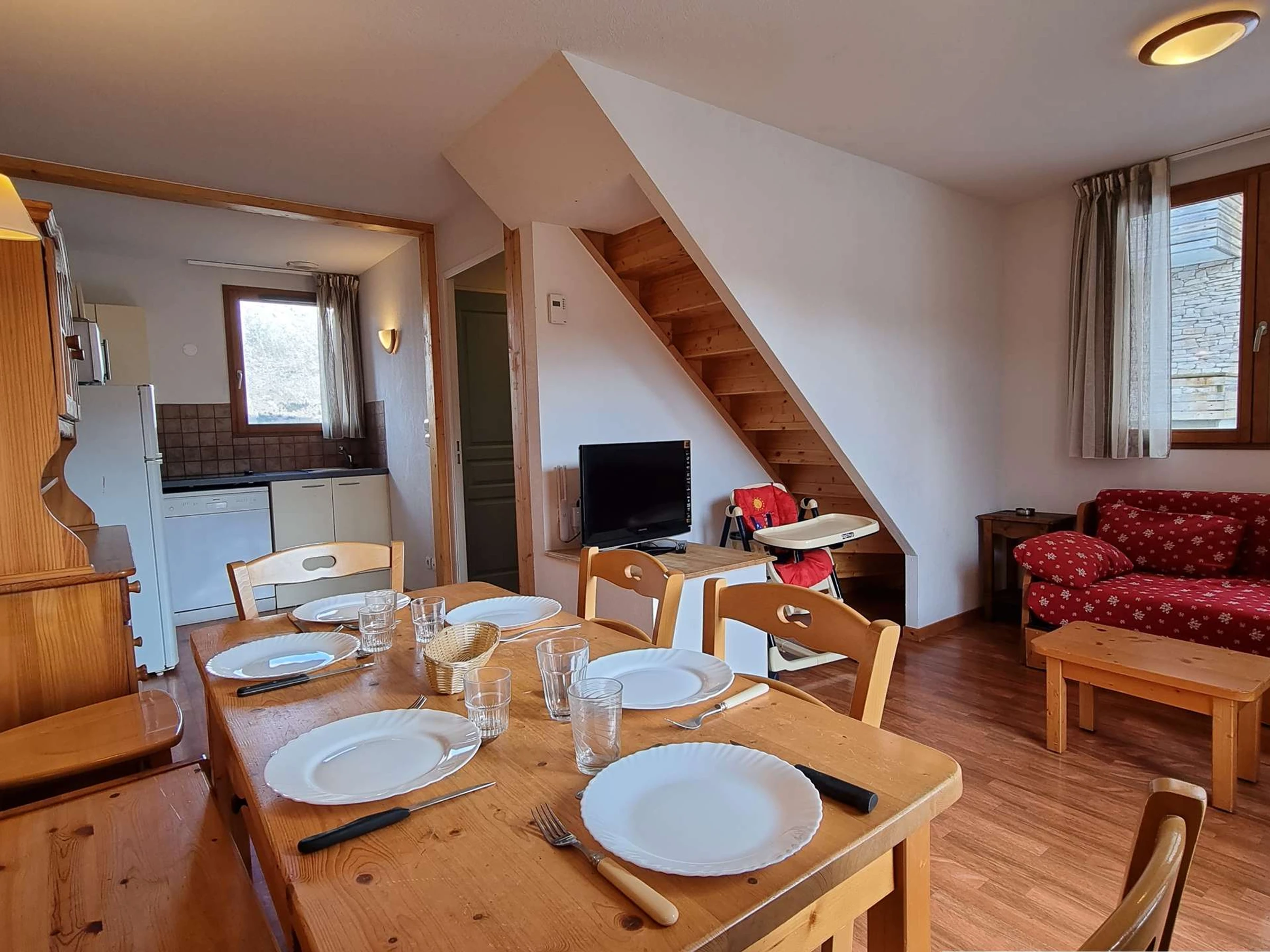 Dieses helle, nach Südwesten ausgerichtete 3-Zimmer-Chalet, nur 450 m vom Sessellift Le Jas entfernt, befindet sich in der Residenz "Les Chalets du Soleil" und bietet Zugang zum Freizeitzentrum.