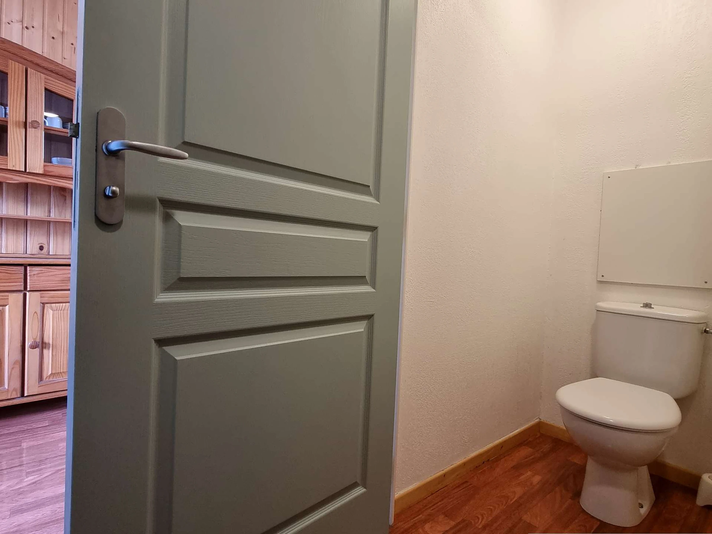 Es verfügt über einen Eingang, der zum Badezimmer und einem separaten WC führt.
