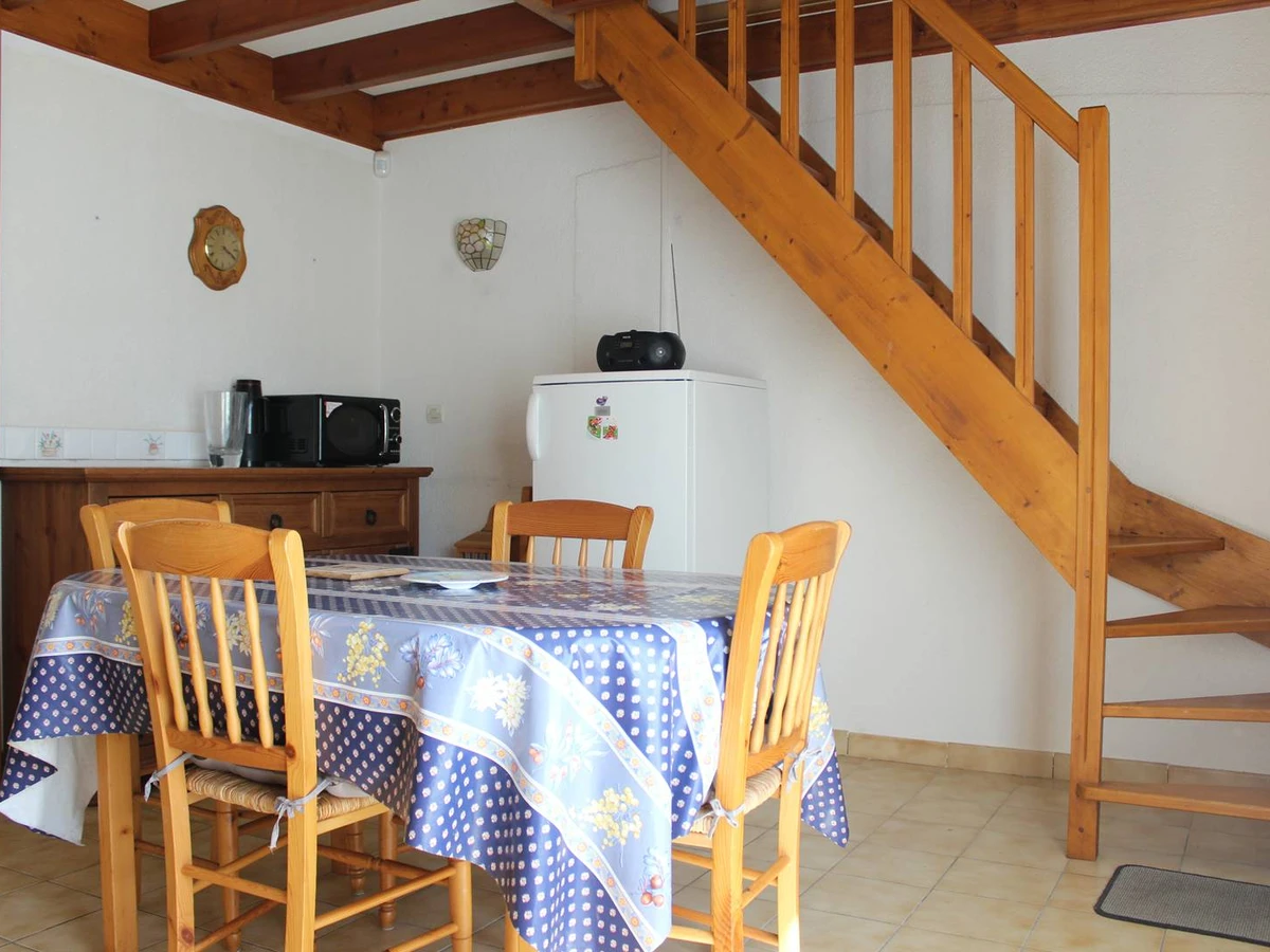 In einer Residenz in der Nähe des Meeres gelegenes Haus mit Terrasse, bestehend aus einem Wohnzimmer mit ausgestatteter und ausgestatteter Küche, einem Wohnzimmer mit einem Schlafsofa, einem Badezimmer und einer separaten Toilette. Im Obergeschoss ein Schlafzimmer mit einem Doppelbett (140) und Stauraum, ein zweites Schlafzimmer mit zwei Einzelbetten (140) und Stauraum. Draußen ein geschützter Innenhof und ein Abstellraum mit Waschmaschine und Grill.