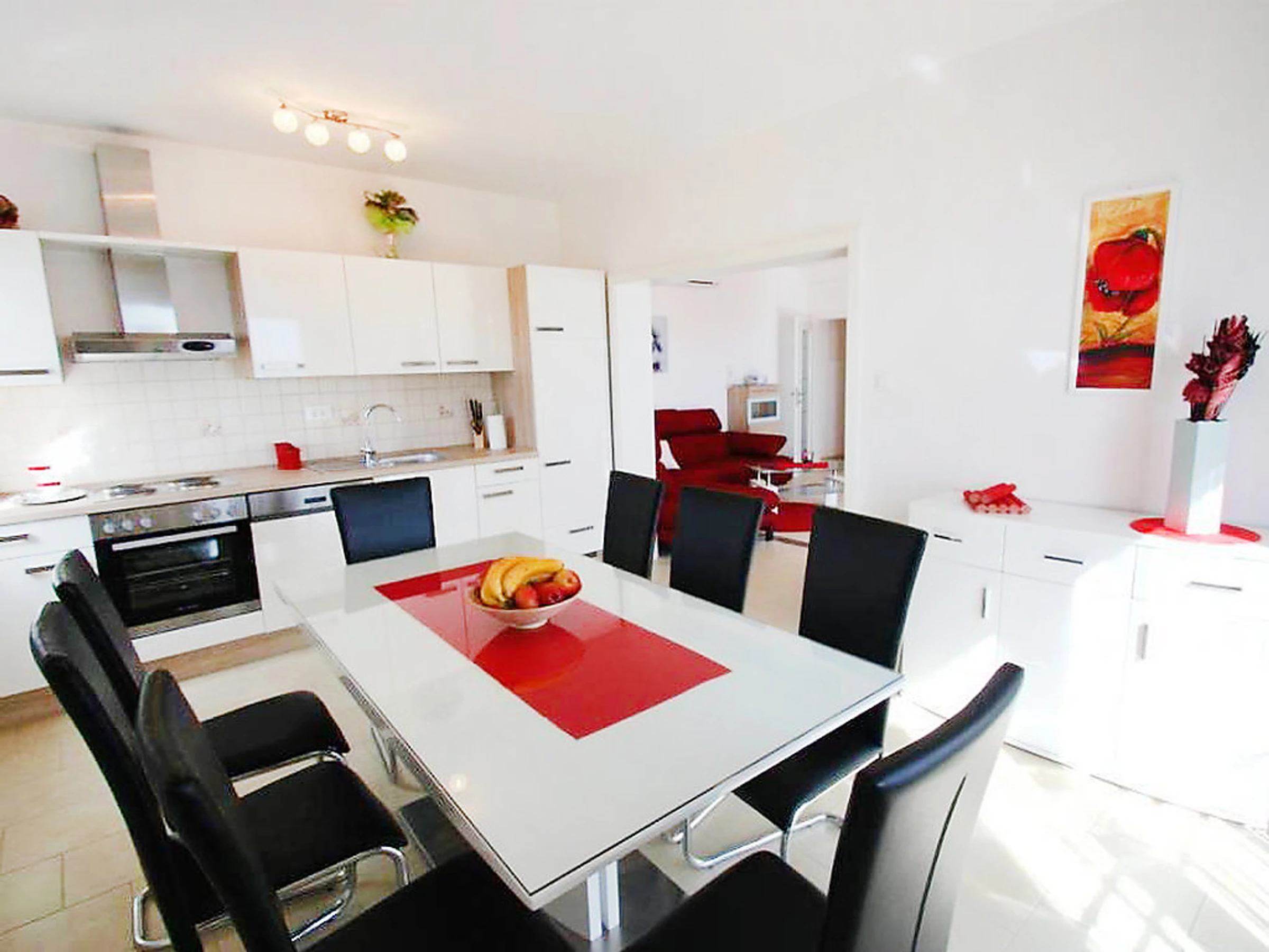Modernes, schönes, gemütliches Appartementhaus "Villa Sara luxus". Hausausstattung: Klimaanlage. Zufahrt & Parkmöglichkeiten: reservierter Parkplatz. Ganzjährig Zufahrt bis zum Haus möglich. Auto empfohlen. Lage: am Ortsrand von Crikvenica, im Ortsteil Dramalj, ruhige Lage. Aussicht von der Wohnung auf das Meer. Umgebung des Hauses: Grill (zur Mitbenutzung). Infrastruktur und Distanzen: Einkaufsgeschäft 540 m, Supermarkt 540 m, Restaurant 270 m, Sandstrand 1.3 km, Kieselstrand 70 m, Felsstrand 200 m, Sportzentrum 500 m, Tennis 500 m. Bitte beachten, in der Nähe befindet sich ein Flughafen/Flugplatz in 25 km.