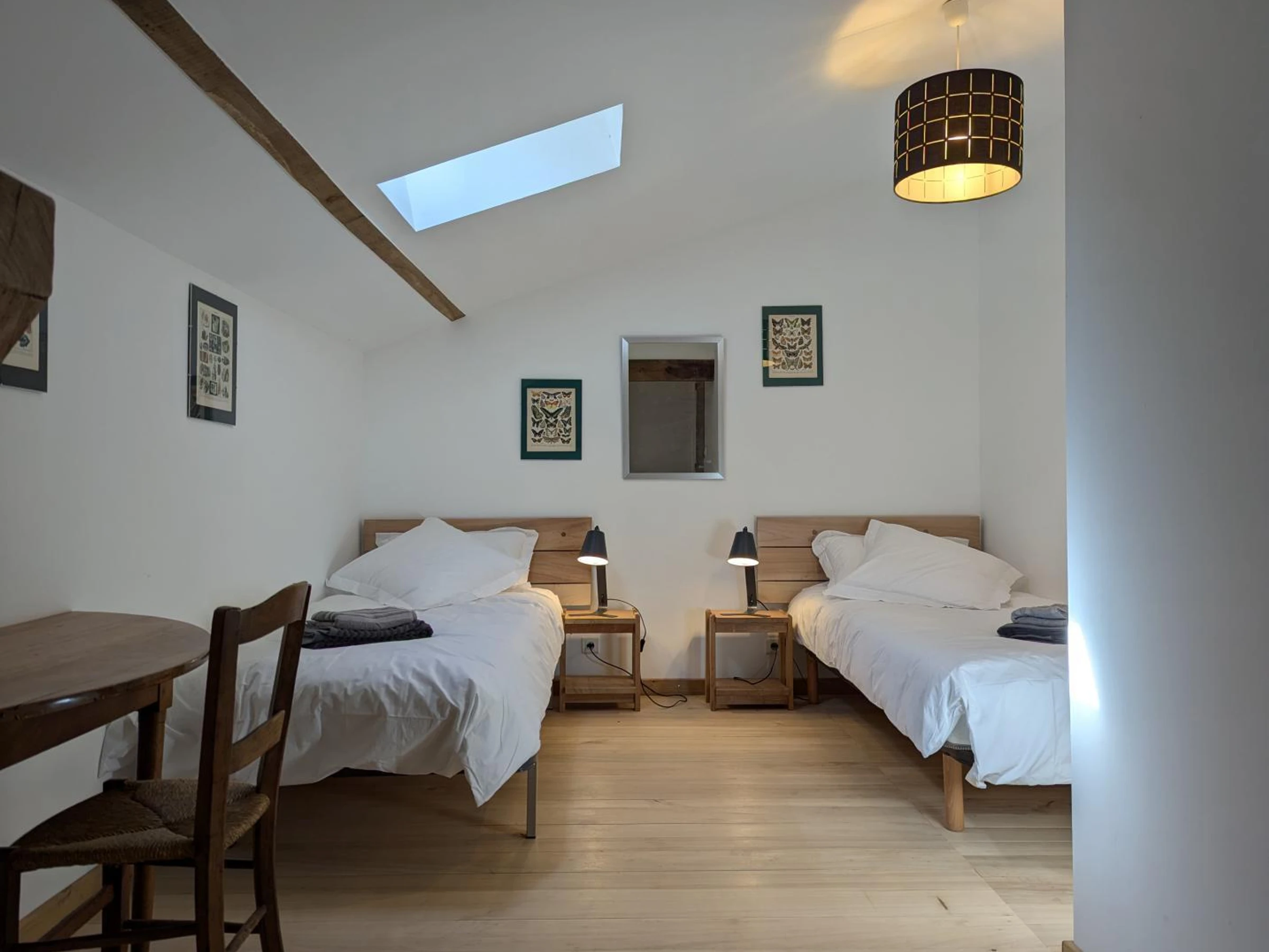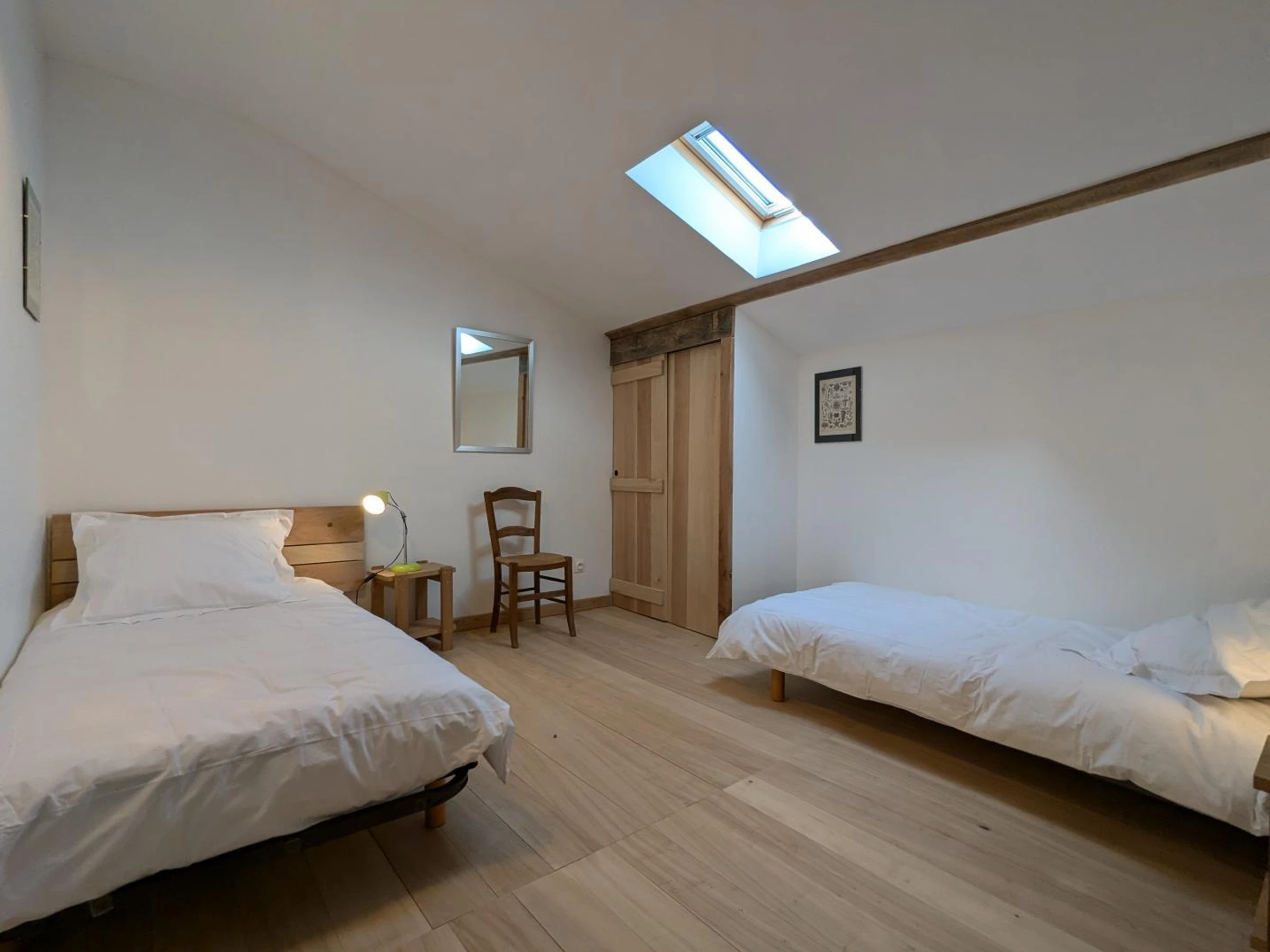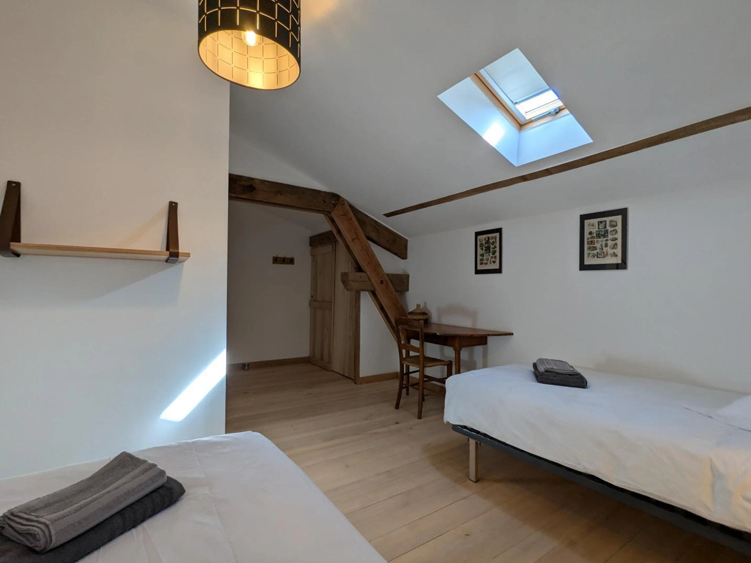 Obergeschoss: zwei Schlafzimmer mit je zwei Betten (90 x 190 cm) und ein Duschbad mit WC.