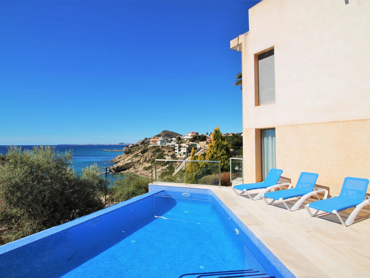 Grosses, modernes, alleinstehendes Haus "La Mar Campello", auf 3 Stockwerken. Am Ortsrand, 10 km vom Zentrum von Villajoyosa, ausserhalb des Ortes, 11 km vom Zentrum von El Campello, im Bezirk Venta Lanuza, ruhige, sonnige Lage am Hang, im Villenviertel, 100 m vom Meer, 100 m vom Strand. Zur Mitbenutzung: Schwimmbad (9 x 4 m, 120 - 200 cm tief, saisonale Verfügbarkeit: [hidden] - [hidden] Öffnungszeiten Schwimmbad: 09:00-23:00). Dusche/WC im Poolbereich. Zur Alleinbenutzung: Grundstück (eingezäunt), Schwimmbad (6 x 3 m, 140 - 170 cm tief, saisonale Verfügbarkeit: [hidden] - [hidden] Aussendusche, Sitzplatz, Terrasse, Parkplatz beim Haus, öffentliche Parkplätze auf der Strasse. Supermarkt 10 km, Bar 10 km, Kieselstrand "Plya de las palmeras" 100 m. Nahe gelegene Sehenswürdigkeiten: Alicante 25 km, Aeropuerto Alicante 36 km, Terramitica Benidorm 23 km, Terra Natura Benidorm 26 km, Aqualandia Benidorm 32 km, Mundomar Benidorm 32 km. Bitte beachten: Fahrzeug empfohlen, kein Fahrstuhl vorhanden. Babyausstattung auf Anfrage. Der Besitzer akzeptiert keine Jugendgruppen. Die Schlüsselübergabe findet bei der Agentur in Benidorm statt, 27 km. Die Nachbarschaft ist sehr lärmempfindlich. Ruhe und gutes Benehmen wird erwartet.