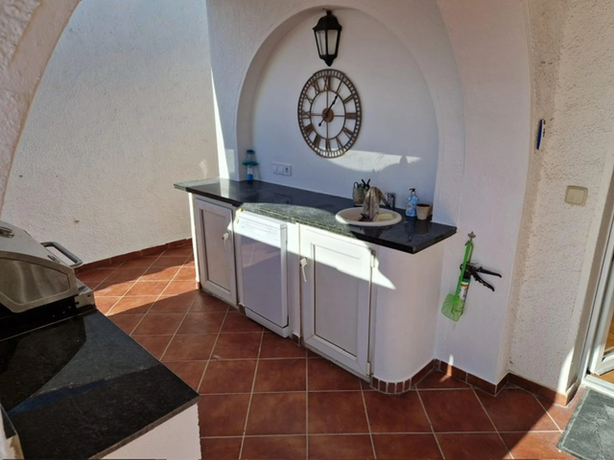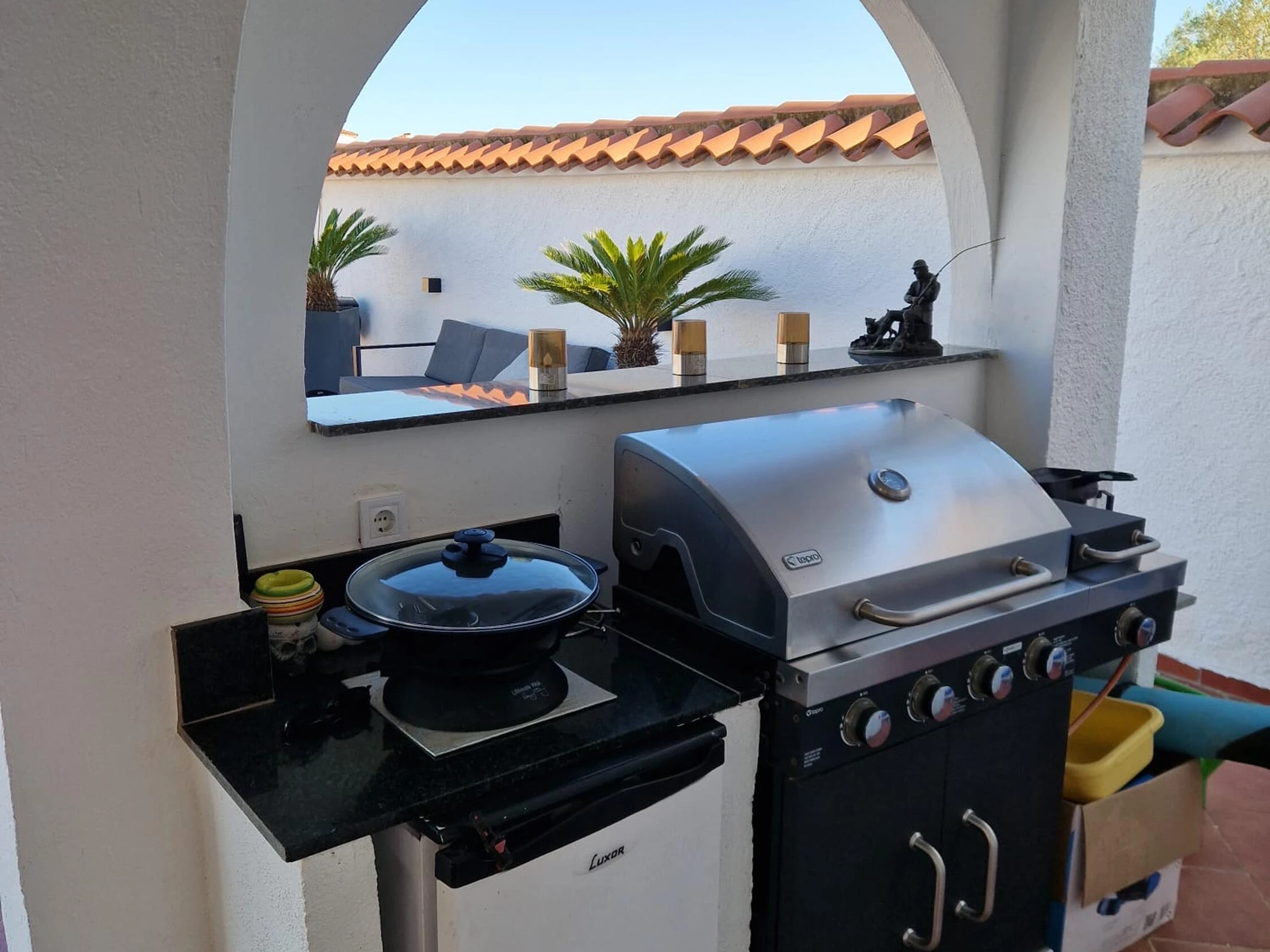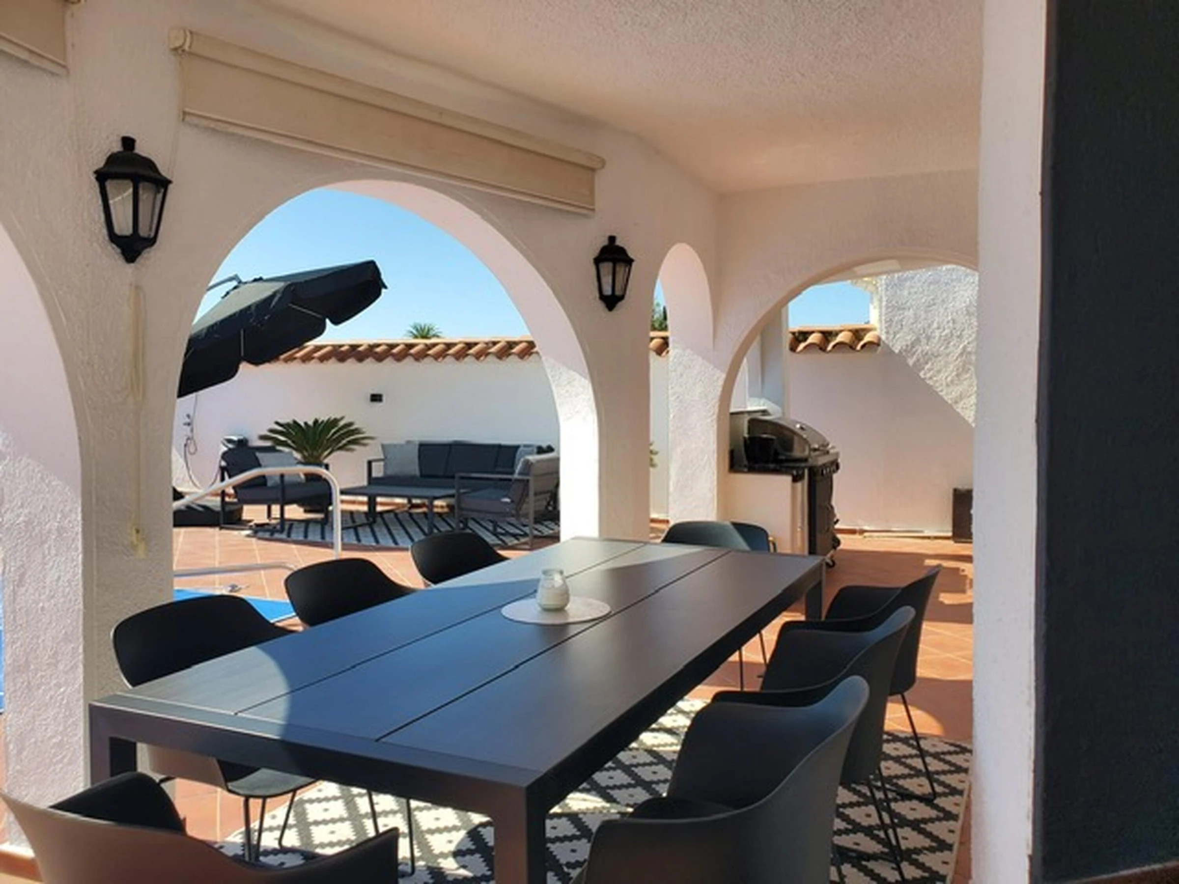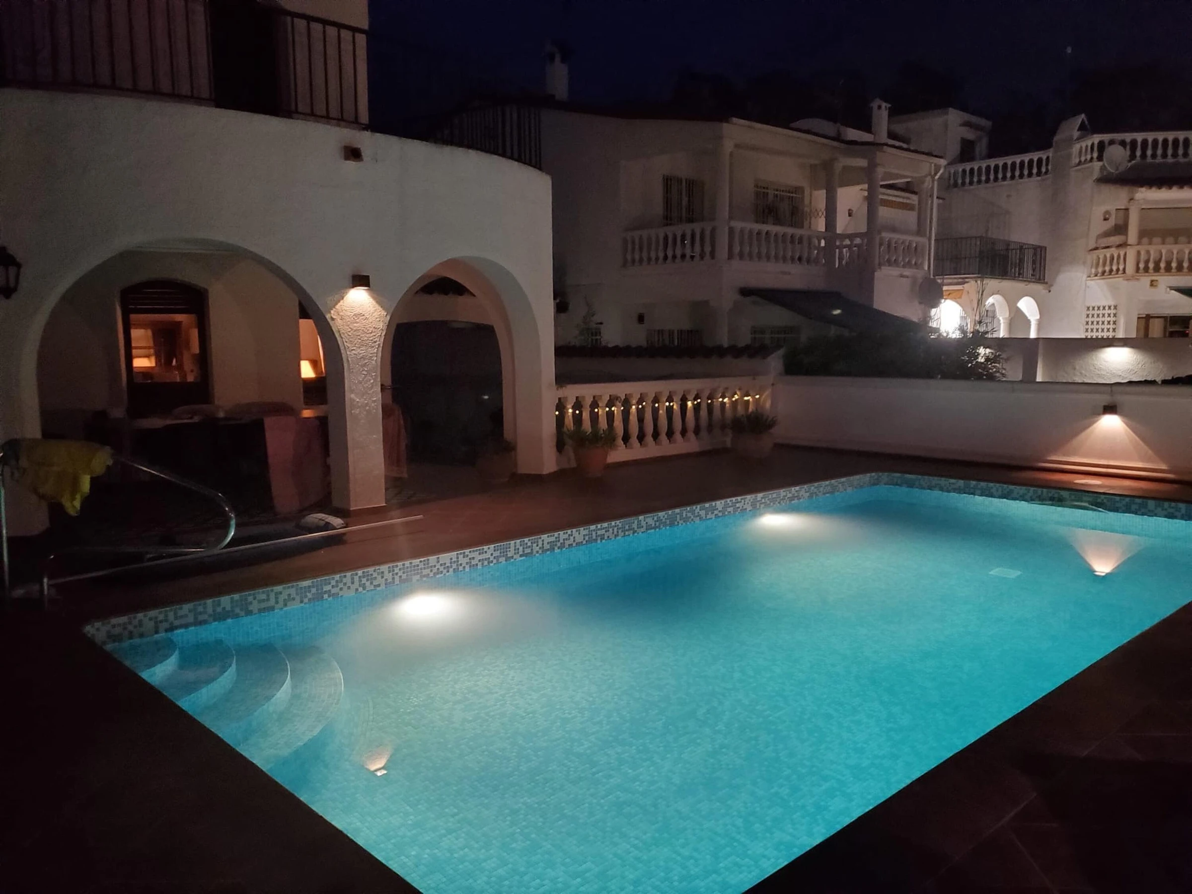 Goertz und Partner bietet Ihnen das Ferienhaus „Los Amigos – Goertz“ in Tordera zur Miete an. Genießen Sie ein großzügiges 496 m² großes Grundstück, einen großen Swimmingpool (ca. 8,5 m x 4,5 m) und einen 15 m langen Bootsliegeplatz – alles nach Süden ausgerichtet für maximale Sonneneinstrahlung. Der Außenbereich ist ideal für einen erholsamen Urlaub und bietet verschiedene Entspannungsmöglichkeiten: Vor dem Haus befinden sich zwei Parkplätze (die Garage steht Gästen nicht zur Verfügung). Im hinteren Bereich erwartet Sie ein privater Bereich mit einer Außenküche, ausgestattet mit Gasgrill, Spüle, kleinem Geschirrspüler und Kühlschrank. Ein großer Tisch mit acht Stühlen lädt zu Mahlzeiten im Freien ein. Rund um den Pool finden Sie eine Gartenlounge mit niedrigem Tisch, zwei Sonnenliegen und zwei großen Sonnenschirmen (bitte schließen Sie diese beim Verlassen des Hauses). Seitlich befindet sich ein Außenbad mit Dusche und WC. Eine Treppe führt zum 15 m langen Bootsliegeplatz, der sich neben dem Haus in einem breiten Kanal befindet. Im Erdgeschoss bietet das Haus einen komfortablen Wohnbereich mit einem Wohnzimmer mit zwei Sofas und Klimaanlage, einem offenen Essbereich und einer voll ausgestatteten Küche im amerikanischen Stil (Geschirrspüler, Gasherd, Kaffeemaschine etc.). Auf dieser Ebene befindet sich außerdem eine klimatisierte Suite mit einem Kingsize-Bett (zwei 90 cm dicke Matratzen), einem Kleiderschrank und einem Badezimmer en suite mit Badewanne. Zusätzlich gibt es ein separates WC und einen Waschraum unter der Treppe mit Waschmaschine. Im Obergeschoss befinden sich zwei klimatisierte Schlafzimmer. Das erste, geräumige und helle Schlafzimmer verfügt über ein Kingsize-Bett (zwei 90 cm dicke Matratzen), einen Fernseher, viel Stauraum im Kleiderschrank und eine große Terrasse mit Blick auf den Kanal. Das zweite Schlafzimmer bietet ebenfalls ein Kingsize-Bett (zwei 90 cm dicke Matratzen). Das Badezimmer (in Grün gehalten) ist mit Badewanne, Waschbecken und WC ausgestattet. Bettwäsche und Handtücher sind nicht im Mietpreis enthalten (können für 25 € pro Person gemietet werden). Energieeffizienzklasse: Verbrauch: F – 316, Emissionen: F – 66.
