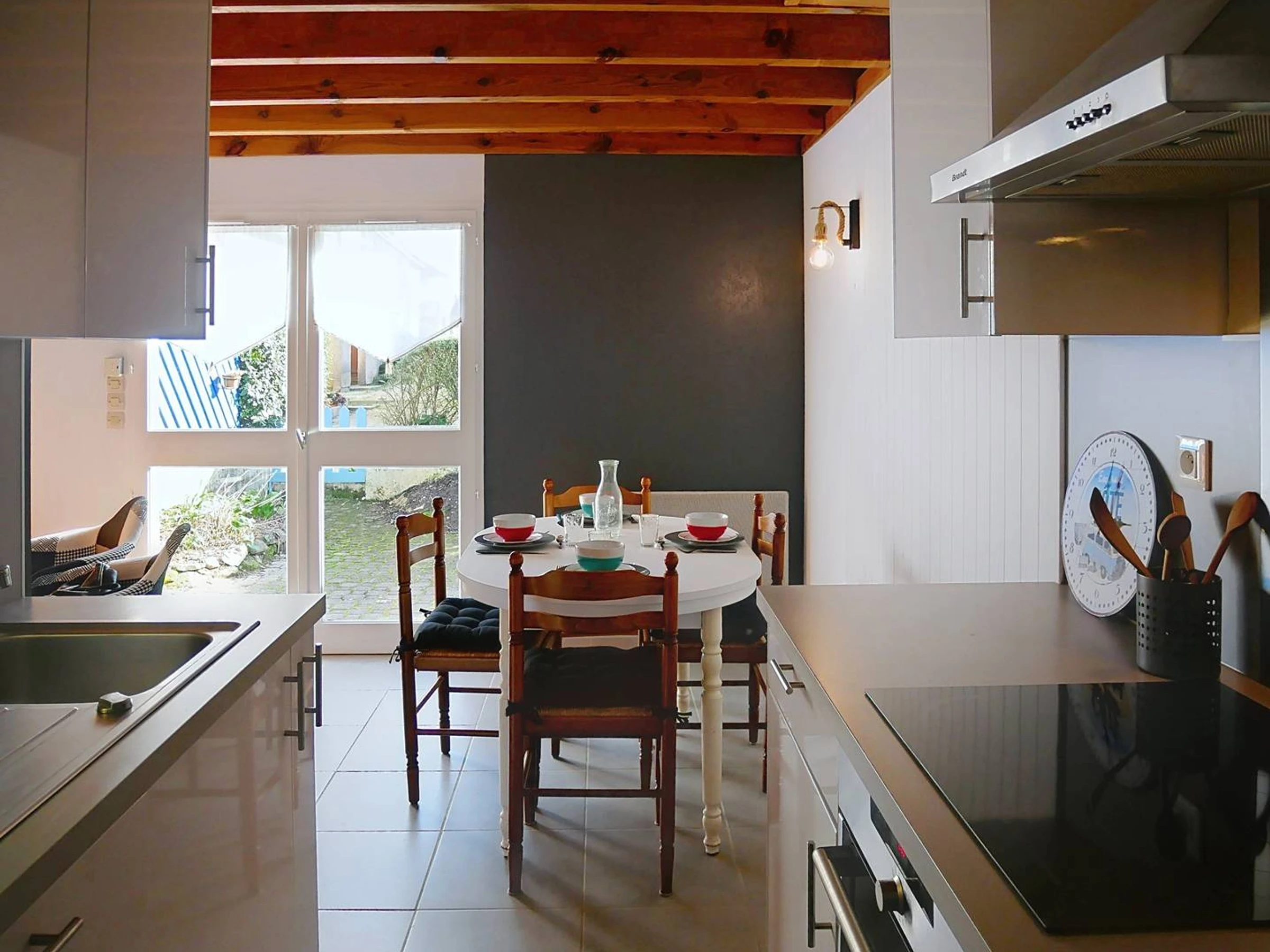 - Direkter Zugang durch die offene, voll ausgestattete Küche (Geschirrspüler, Kühlschrank, Backofen, 3-Platten-Induktionskochfeld, Mikrowelle, Kaffeemaschine, Wasserkocher, Toaster)