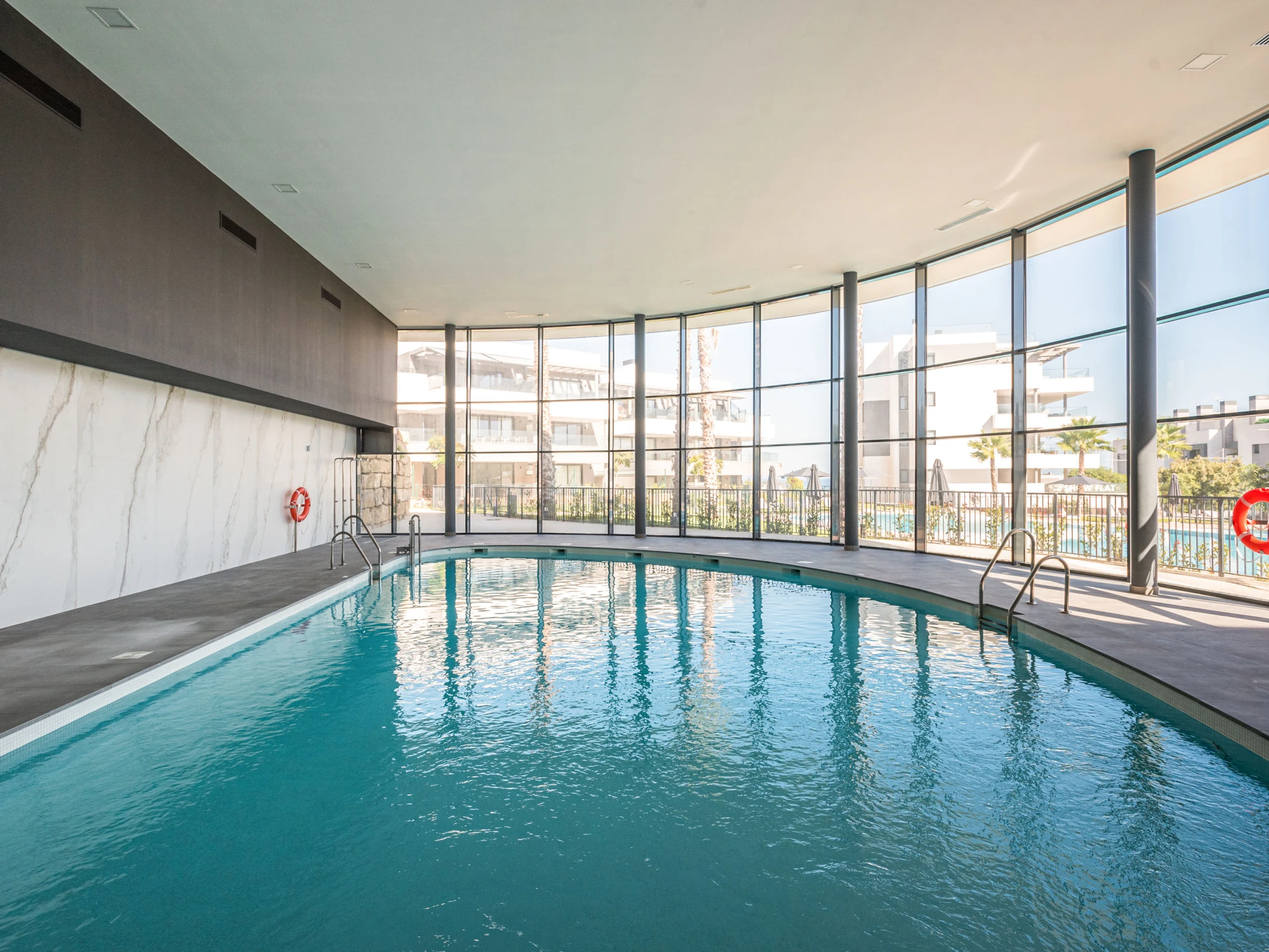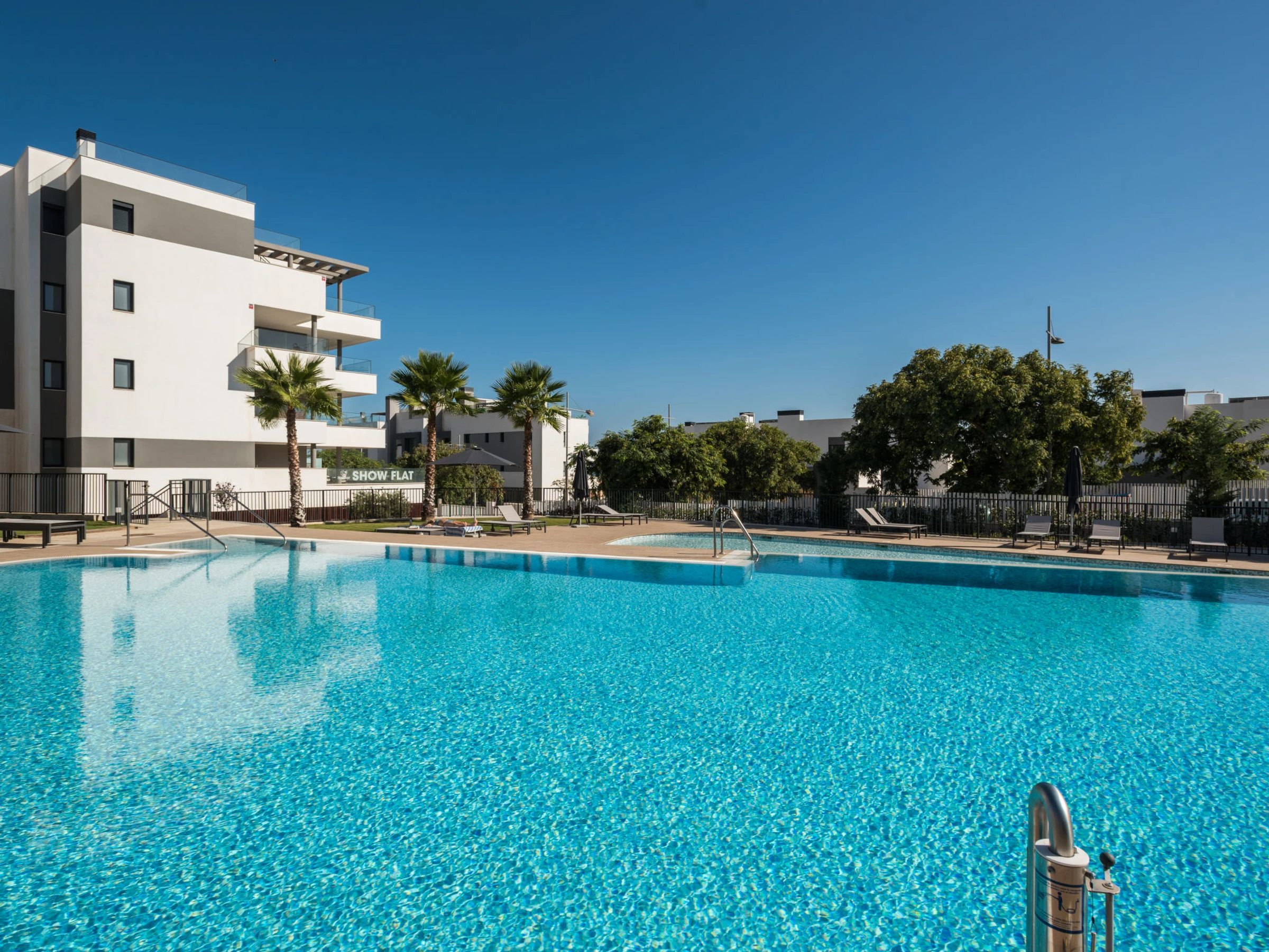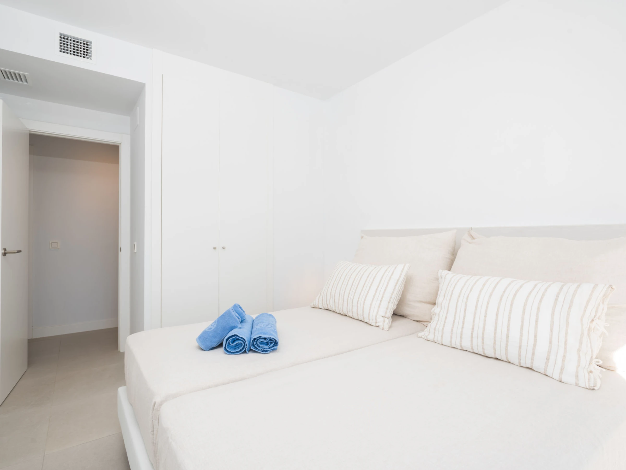 Modernes, komfortables Appartementhaus "Calma Blanca", Baujahr 2021. Zentrale, belebte, sonnige Lage, 1.2 km vom Meer, 1.2 km vom Strand, Richtung Süden. Zur Mitbenutzung: 2 Schwimmbäder, Hallenbad beheizt (saisonale Verfügbarkeit: [hidden] - [hidden] Öffnungszeiten Schwimmbad: 10:00-20:00). Ungleichmässige Schwimmbadform Dusche/WC im Poolbereich. In der Anlage: Fitnessraum, Fahrstuhl. Gemeinschaftsgarage Nr. 01. Einkaufsgeschäft, Supermarkt, Restaurant, Bar, Café, Fußgängerzone 800 m, Biergarten 300 m, Bushaltestelle "Avda Puerta de Mar" 400 m, Sandstrand 1.3 km. Sporthafen 1 km, Golfplatz (18 Loch) 5 km, Sportzentrum 300 m. Nahe gelegene Sehenswürdigkeiten: Centro historico de Estepona 2 km. Objekt geeignet für 6 Erwachsene. Der Besitzer akzeptiert keine Gruppen. Der Besitzer akzeptiert keine Jugendgruppen. Die Nachbarschaft ist sehr lärmempfindlich. Ruhe und gutes Benehmen wird erwartet.