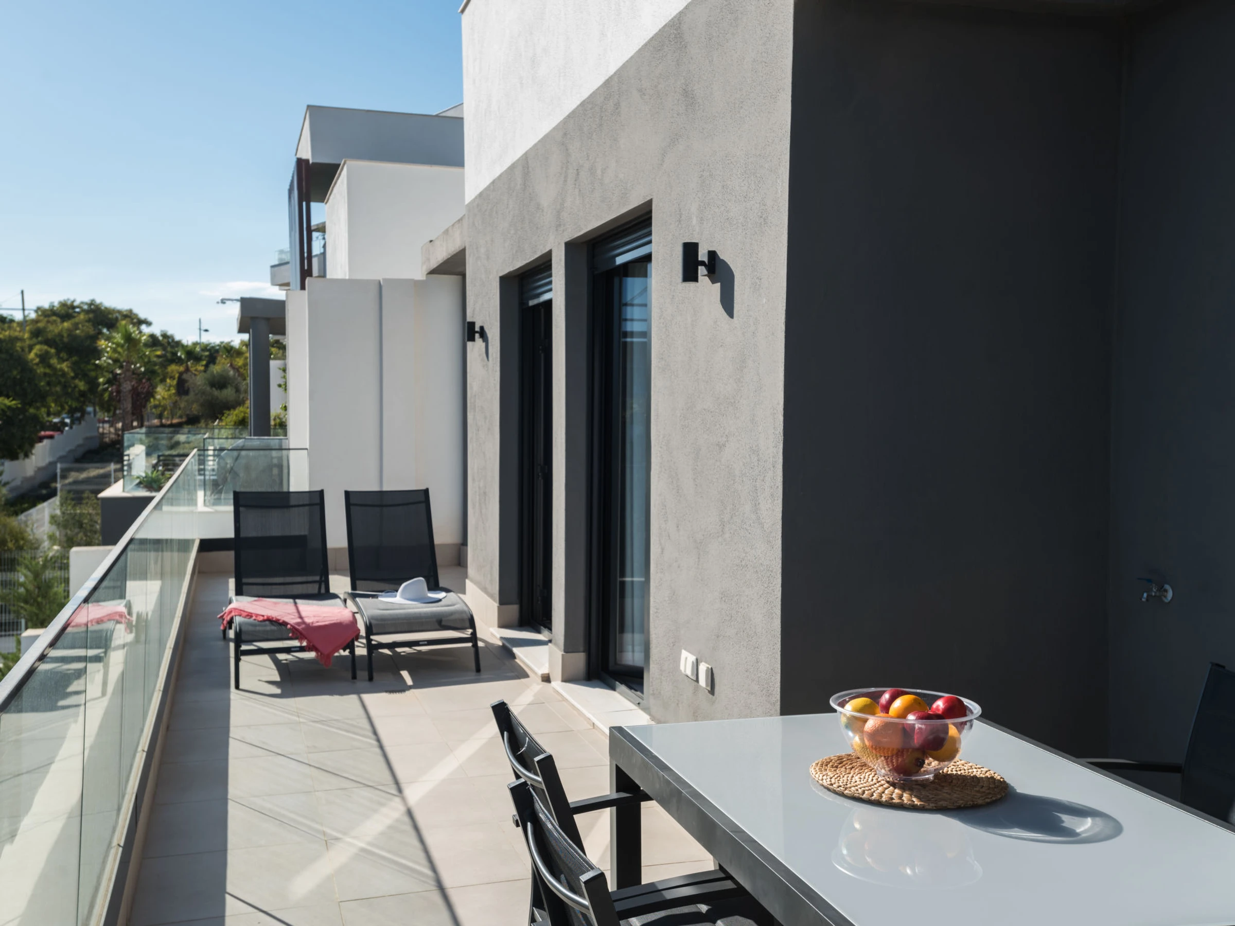 4-Zimmer-Wohnung 100 m2 im 2. Stock, Südlage. Objekt geeignet für 6 Erwachsene. Modern und stilvoll eingerichtet: Wohn-/Esszimmer mit Digital-TV, Klimaanlage und Warmluftheizung. Ausgang zur Terrasse. 1 Zimmer mit 1 franz. Bett (150 cm, Länge 190 cm), Bad/WC, Waschbecken, Klimaanlage und Warmluftheizung. 1 Zimmer mit 2 Betten (90 cm, Länge 190 cm), Klimaanlage und Warmluftheizung. 1 Zimmer mit 2 Betten (90 cm, Länge 190 cm), Klimaanlage und Warmluftheizung. Offene Küche (Backofen, Geschirrspüler, 3 Glaskeramikplatten, Toaster, Wasserkocher, Mikrowelle, Tiefkühler, elektrische Kaffeemaschine). Dusche/WC. Klimaanlage, Warmluftheizung. Natursteinboden. Terrasse 50 m2. Terrassenmöbel, Liegestühle (2), Sitzplatz. Panoramasicht auf das Meer und die Stadt. Zur Verfügung: Waschmaschine, Bügeleisen, Haartrockner. Internet (WLAN, gratis). Garage Nr. 01. Bitte beachten: geeignet für Familien. Nichtraucher-Unterkunft. [hidden] // Reg. Nr.: ESFCTU0000290360006383990000000000000000VFT/MA/573775