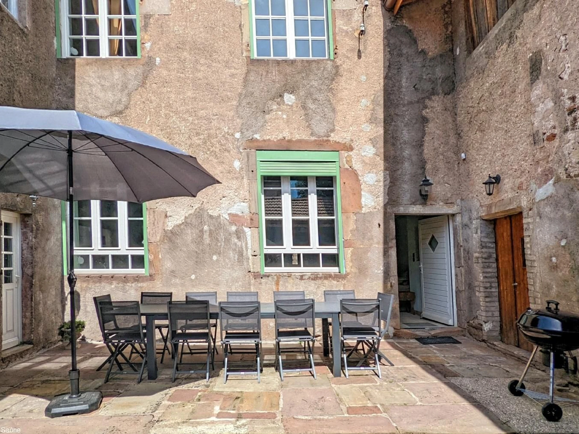 Großer Innenhof mit kleiner Sitzecke und großem Tisch, mit Grill, Sonnenschirm. Parkmöglichkeit im Hof (ein Fahrzeug).