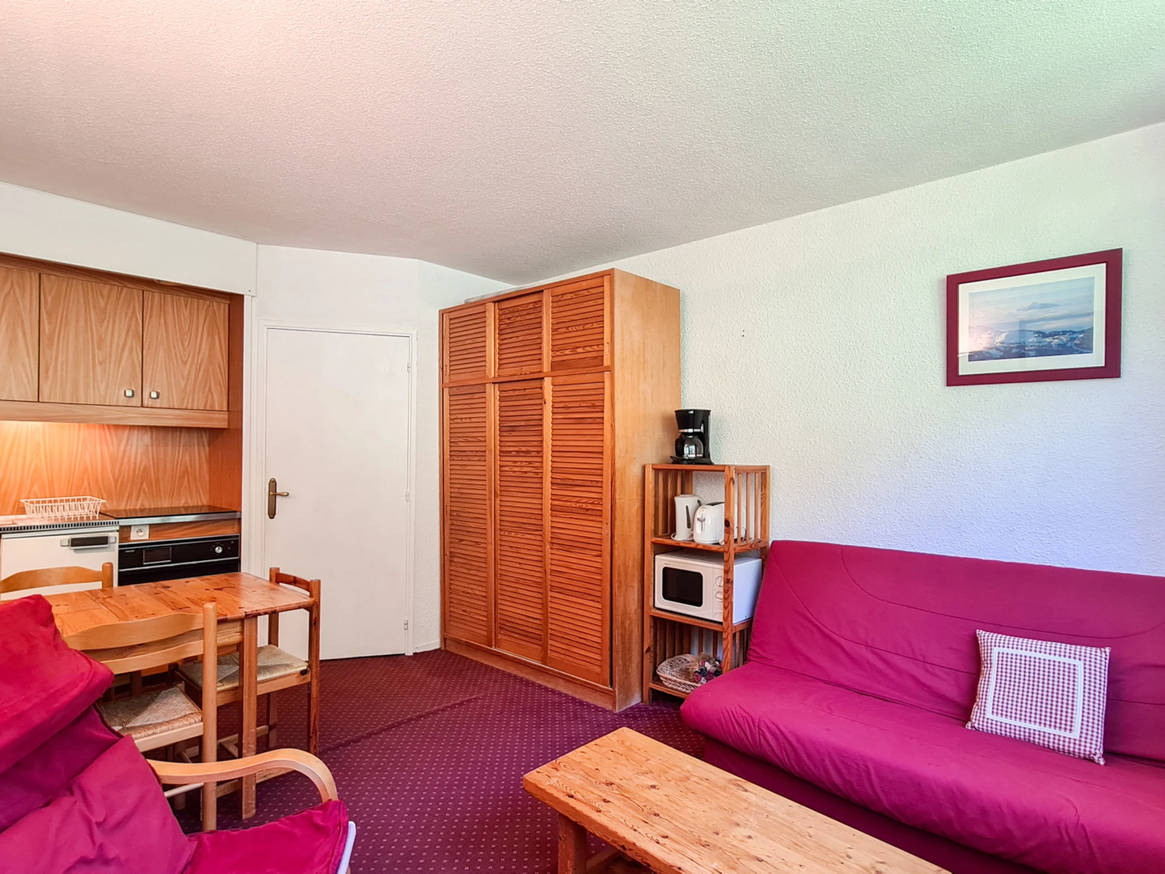 Residenz in der Gegend von Flaine Forêt, etwa 150 Meter von den Pisten und Treffpunkten der Skischulen entfernt. Ganz in der Nähe der Geschäfte. Aufzüge. Skischränke.