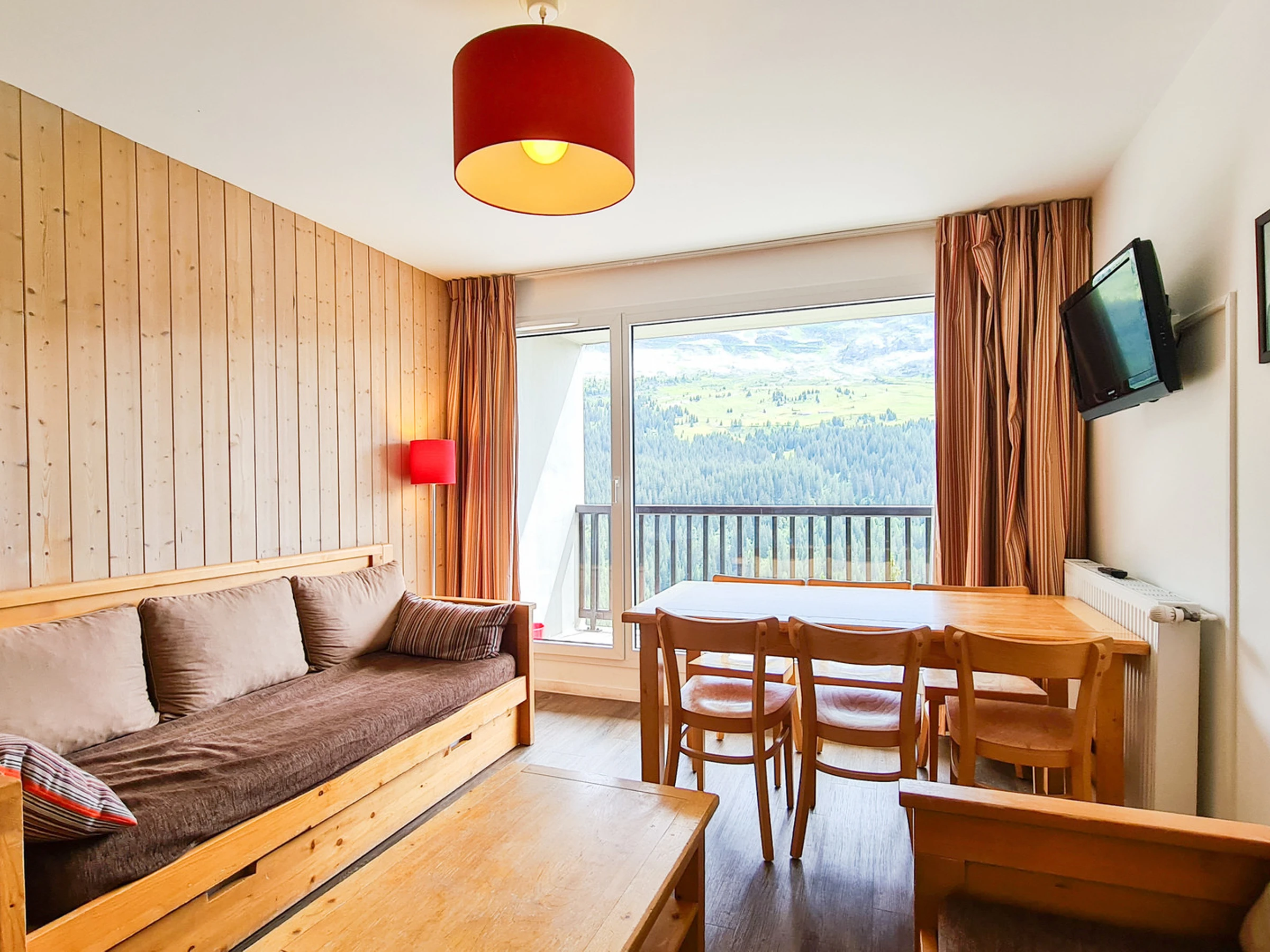 Residenz in Flaine Forêt, 500 Meter von den Pisten, 500 Meter von den Skiliften und 150 Meter vom Einkaufszentrum entfernt. Der kostenlose Skibus hält direkt vor der Residenz. Skischränke. Aufzug. Überdachter Parkplatz.
