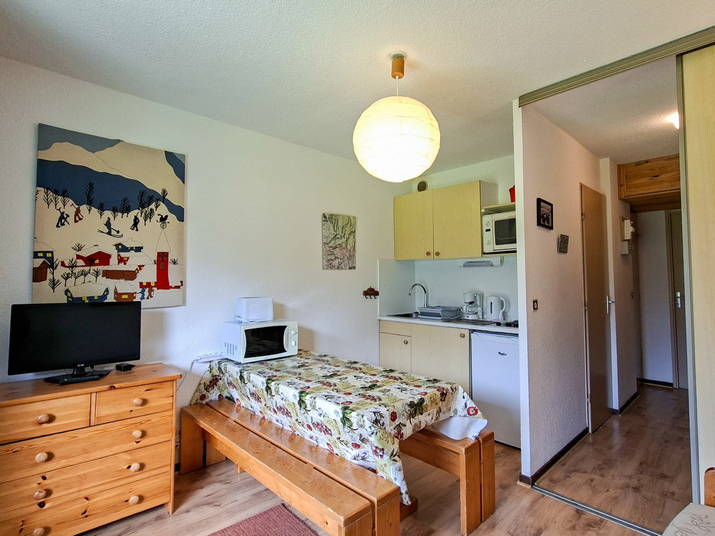 Residenz in der Gegend von Flaine Forêt, etwa 250 Meter von den Pisten und Skischulen entfernt und ganz in der Nähe der Geschäfte. Skibushaltestelle 20m. Skischränke.