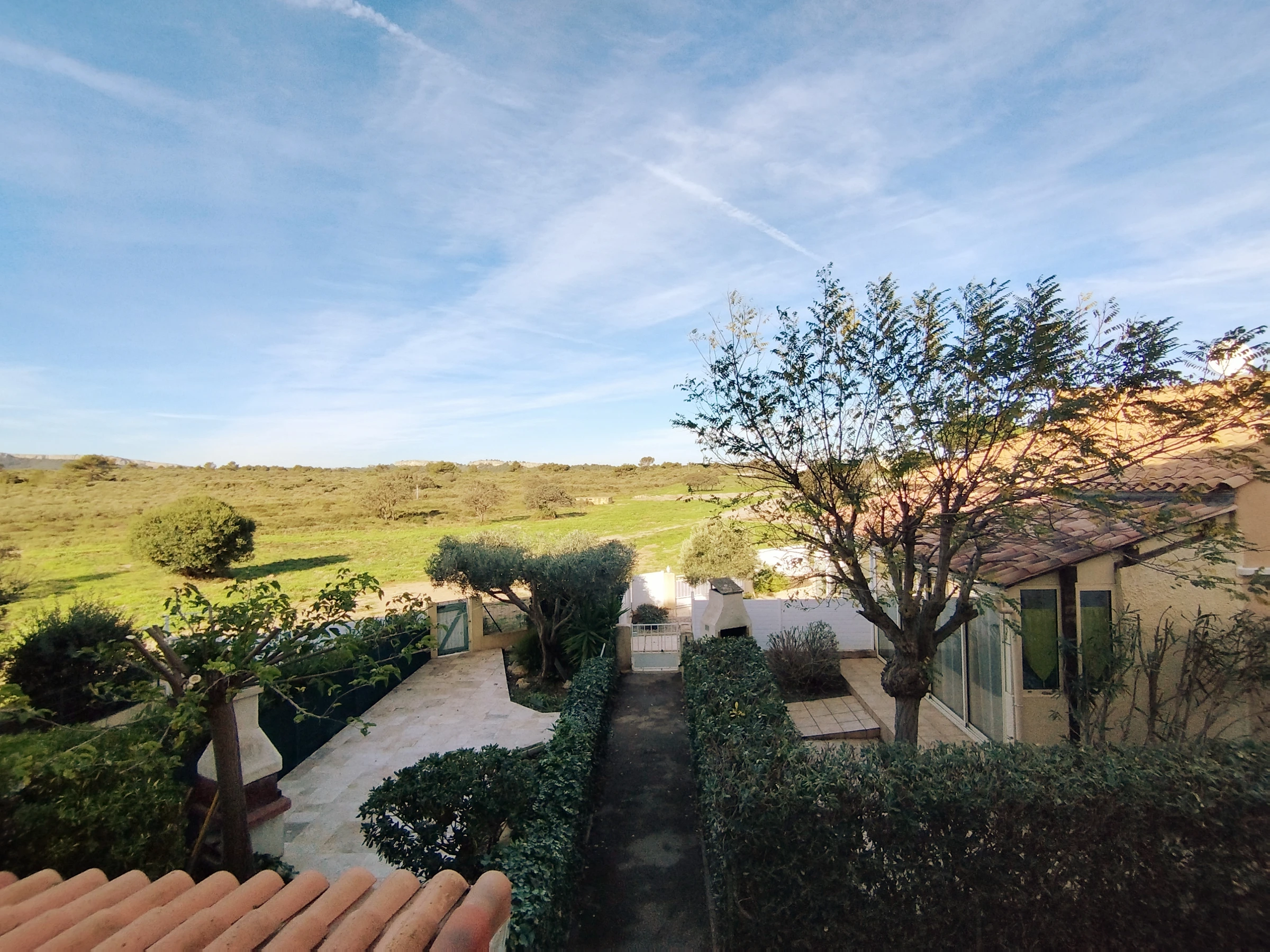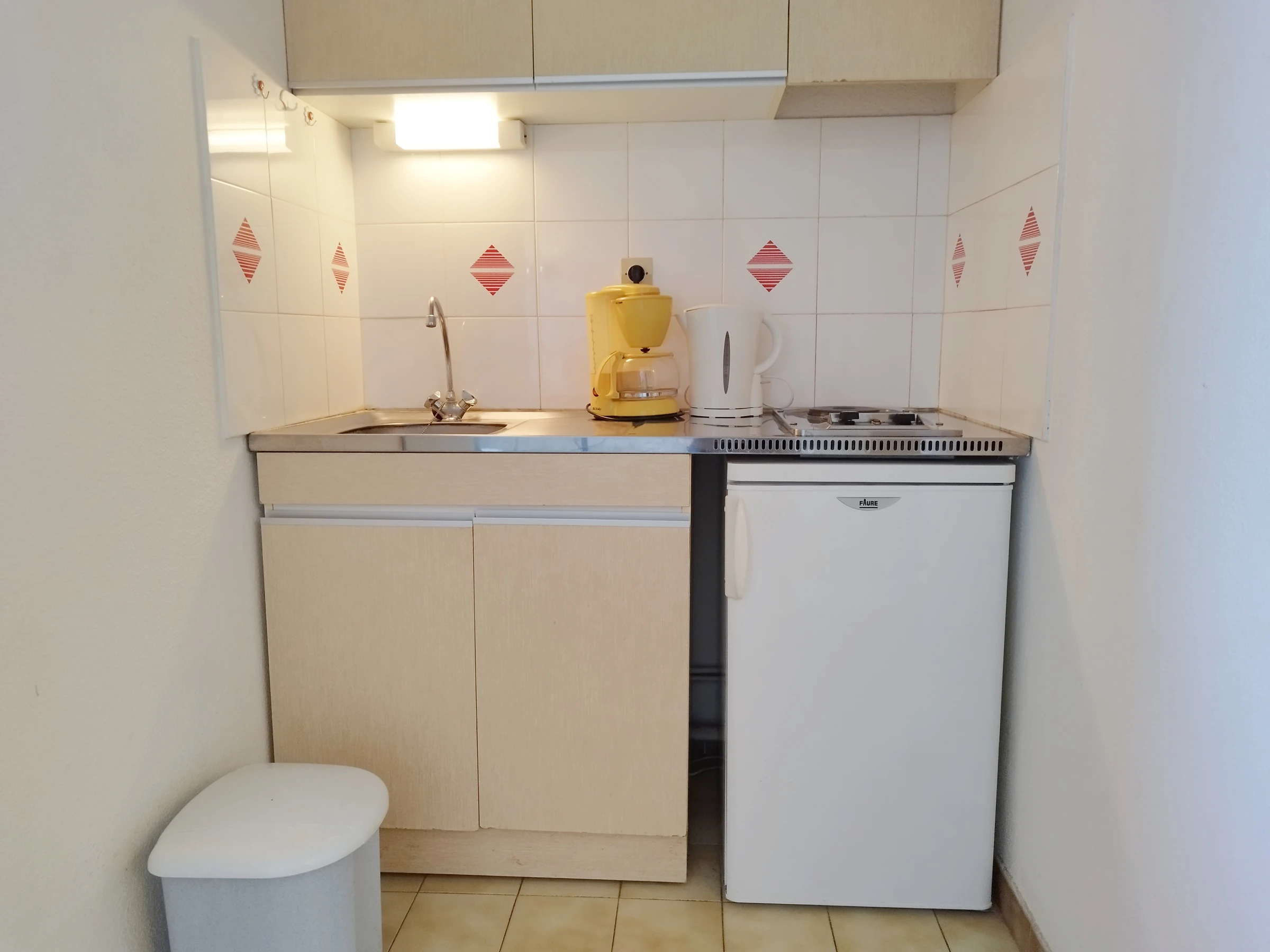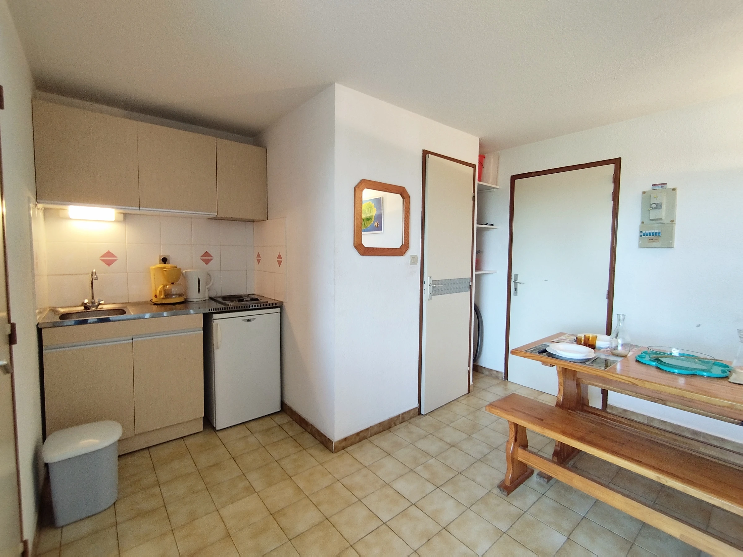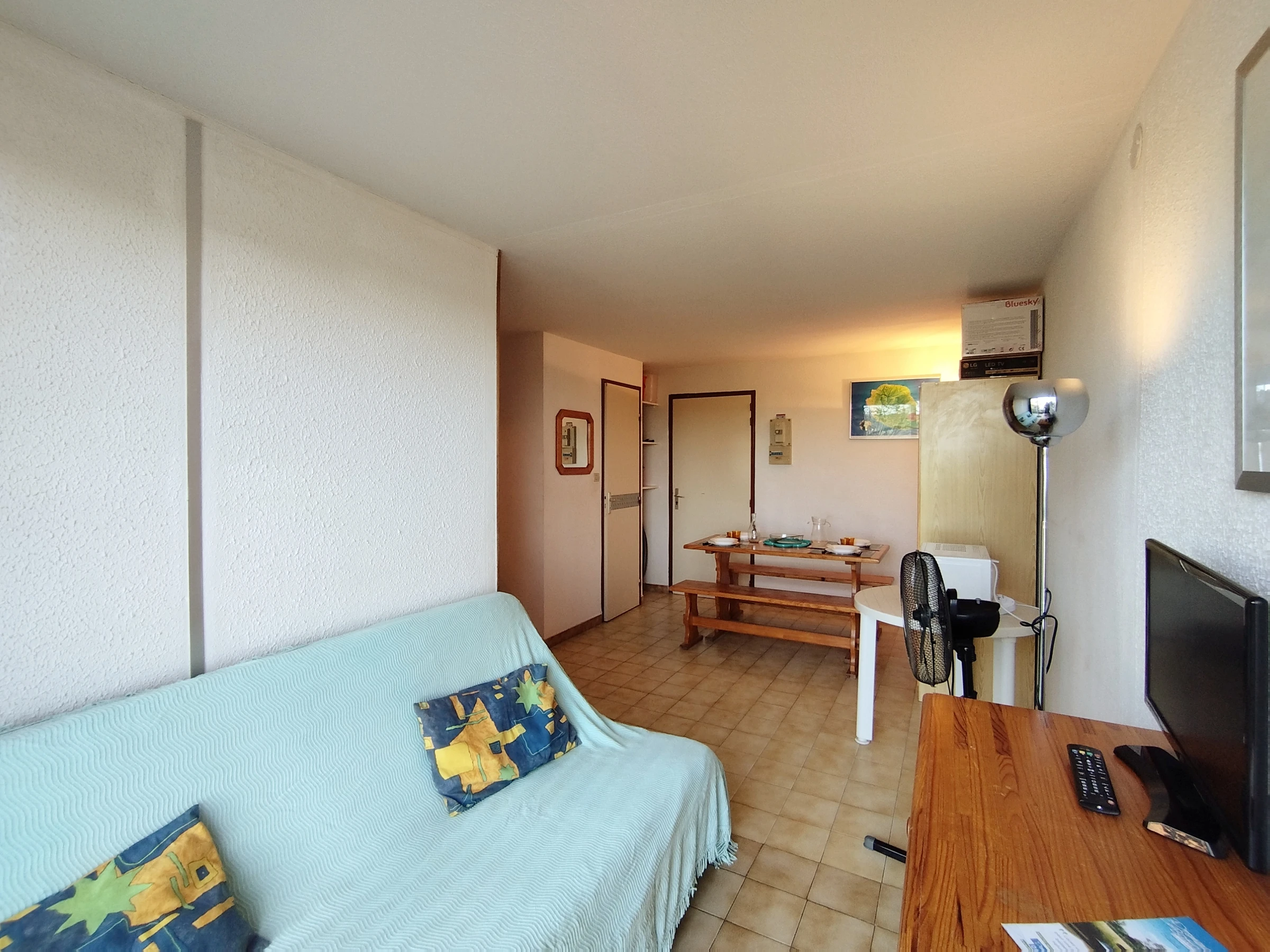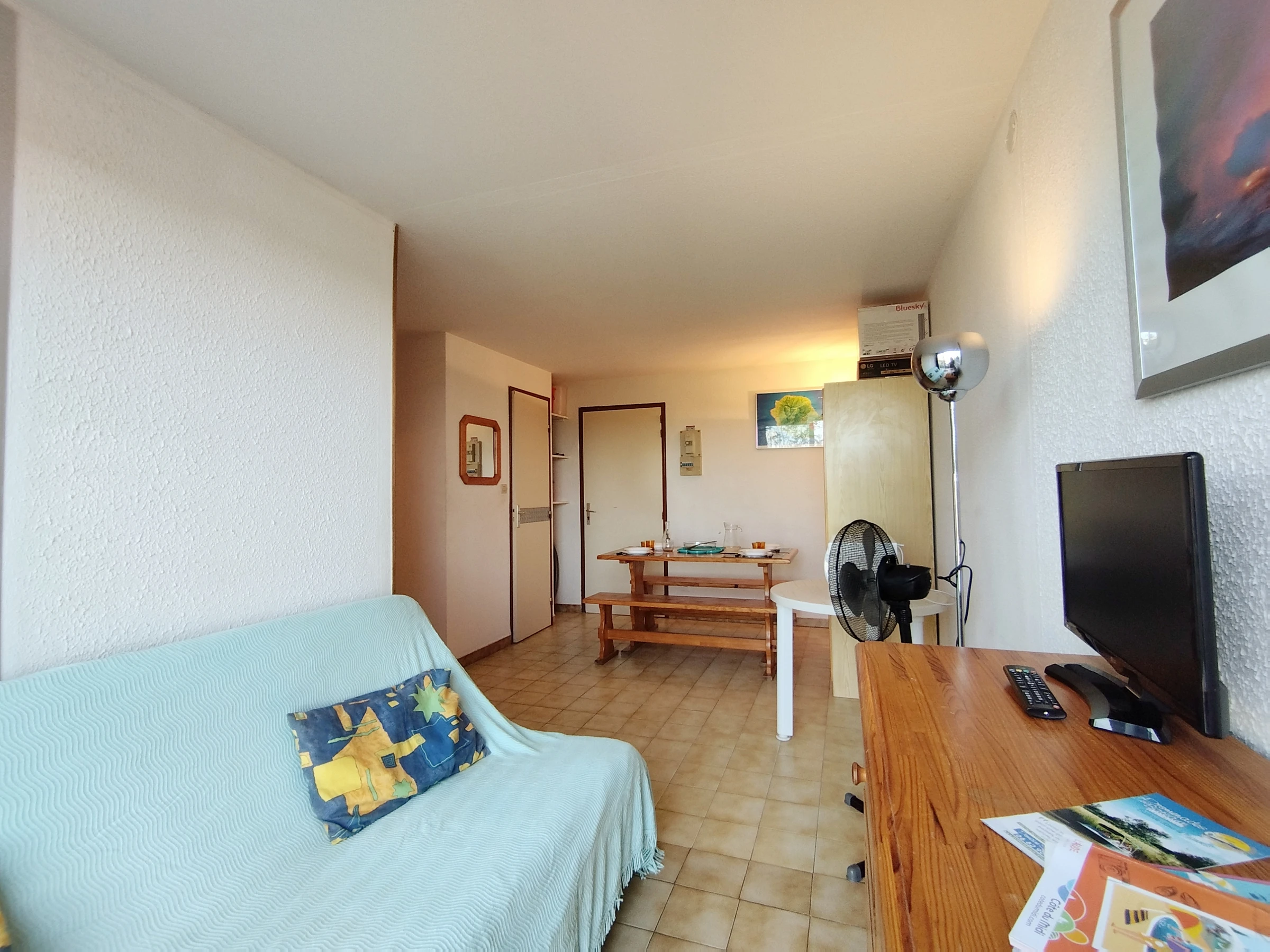 Wohnzimmer (Schlafsofa) mit herrlichem Blick auf Clape, ausgestatteter Küchenbereich.