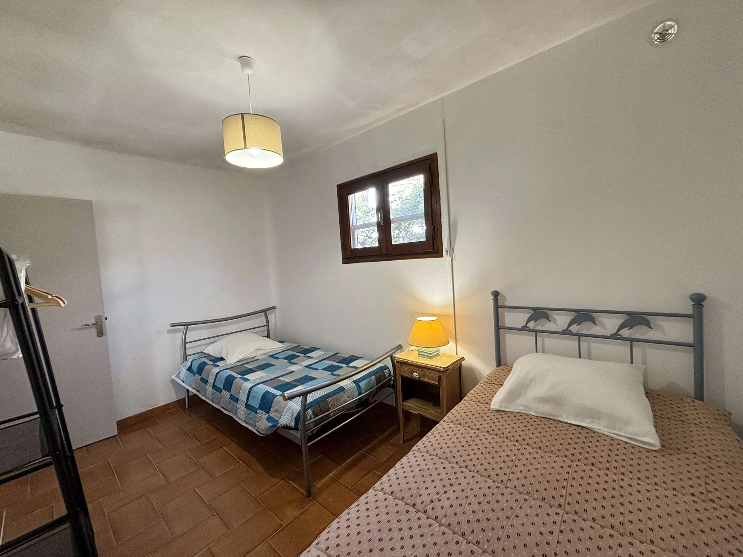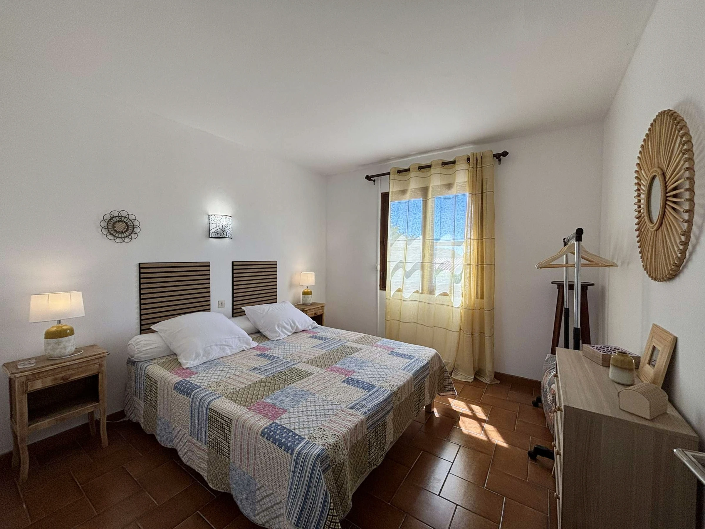 Erdgeschoss (Klimaanlage): 2 Schlafzimmer: 1 Schlafzimmer (2 Einzelbetten) + 1 Schlafzimmer (Queensize-Bett). WC. Angebaute Garage und großer eingezäunter Garten (Solardusche im Freien) bieten Platz für zwei Autos.