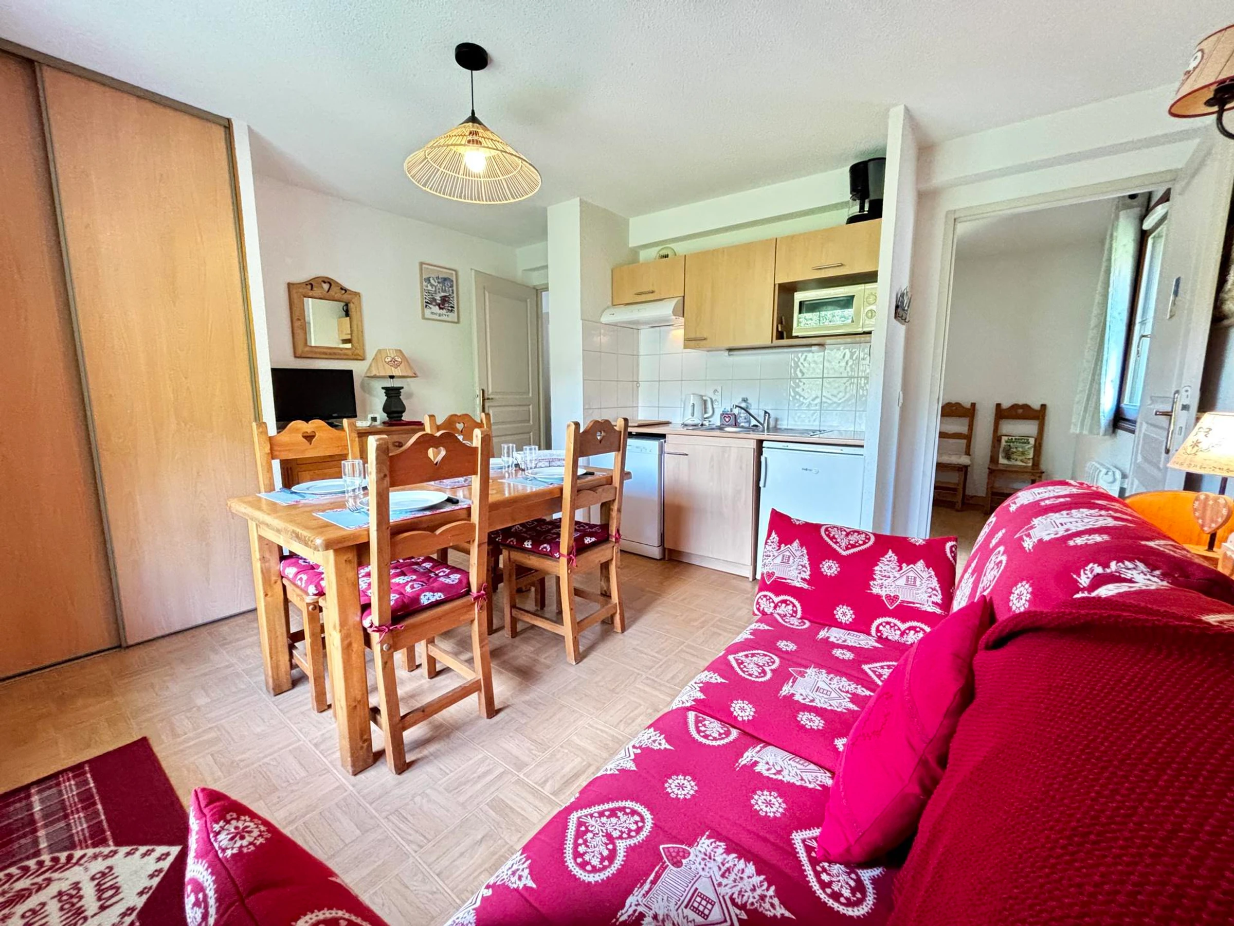 Charmantes 1-Zimmer-Apartment (28 m²), ideal für bis zu 4 Gäste, im ersten Stock einer einladenden Residenz direkt am Fuße der Pisten des Espace Diamant und nur wenige Schritte von der Skischule entfernt. Das Apartment verfügt über einen nach Nordwesten ausgerichteten Balkon mit freiem Blick auf die umliegenden Berge.