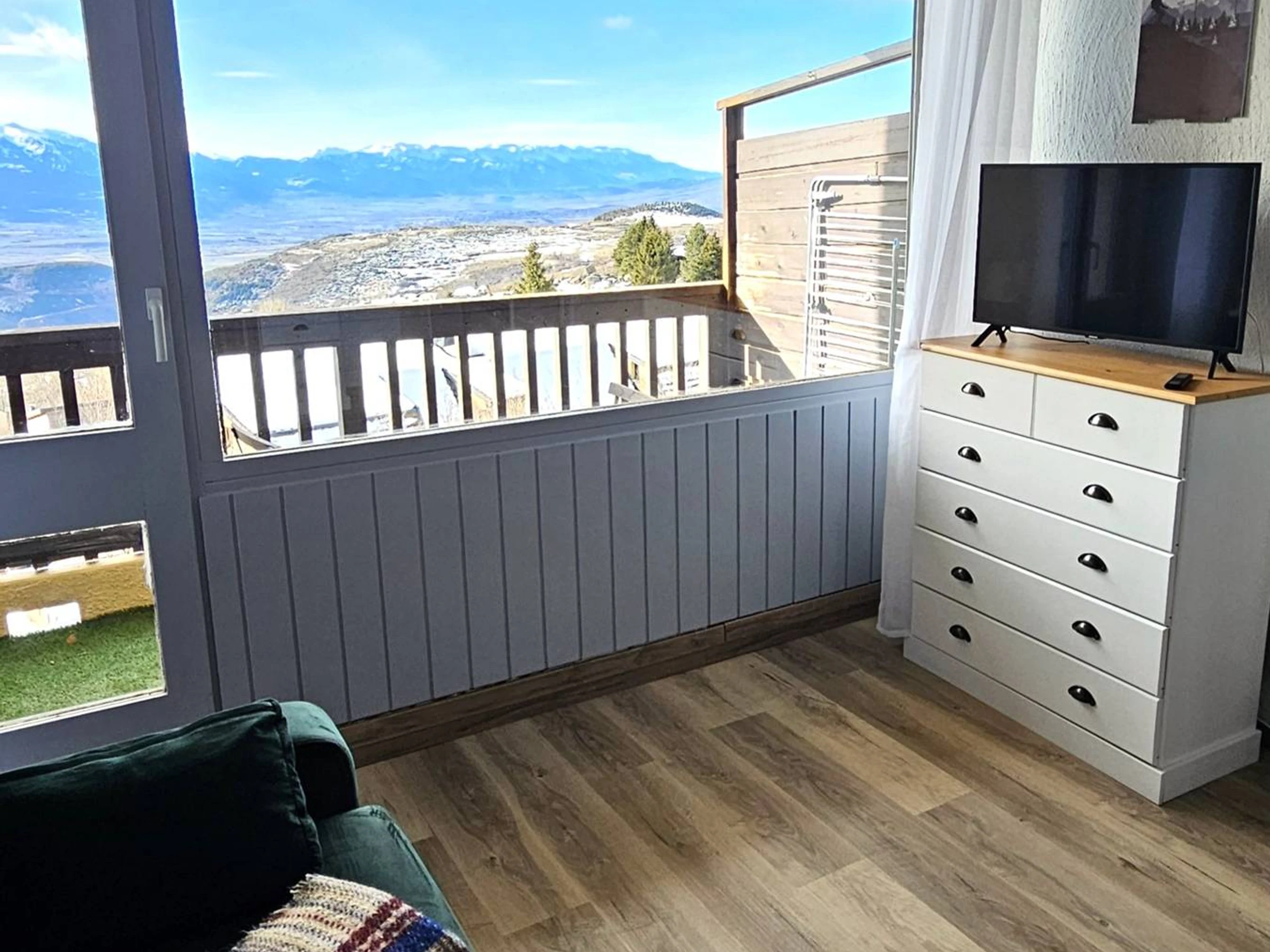 Dieses Studio-Apartment befindet sich im 1. Stock eines Wohnhauses und bietet eine Südlage mit atemberaubendem Blick auf die Pyrenäen sowie einen geräumigen Balkon. Dank der zentralen Lage in Font-Romeu erreichen Sie alle Annehmlichkeiten des Ortes bequem.