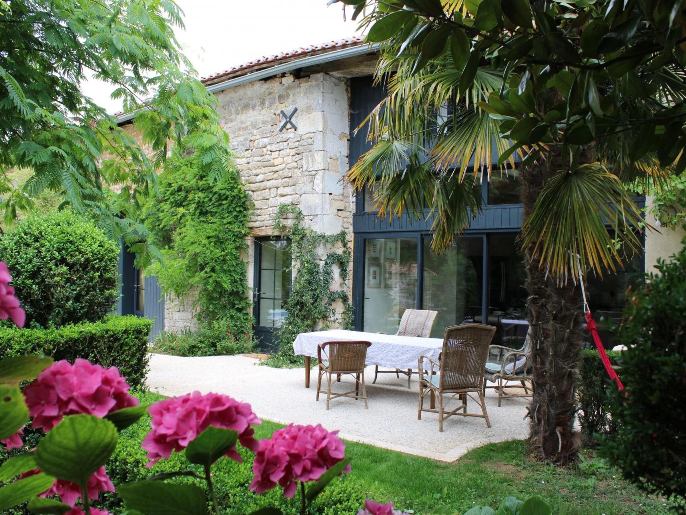20 m² große Terrasse, 1600 m² großer, umzäunter Privatgarten mit privatem 22 m² großem Pool (3 x 7,5 m und 1,4 m tief), geöffnet von Juni bis September, gesichert durch ein Rolltor.