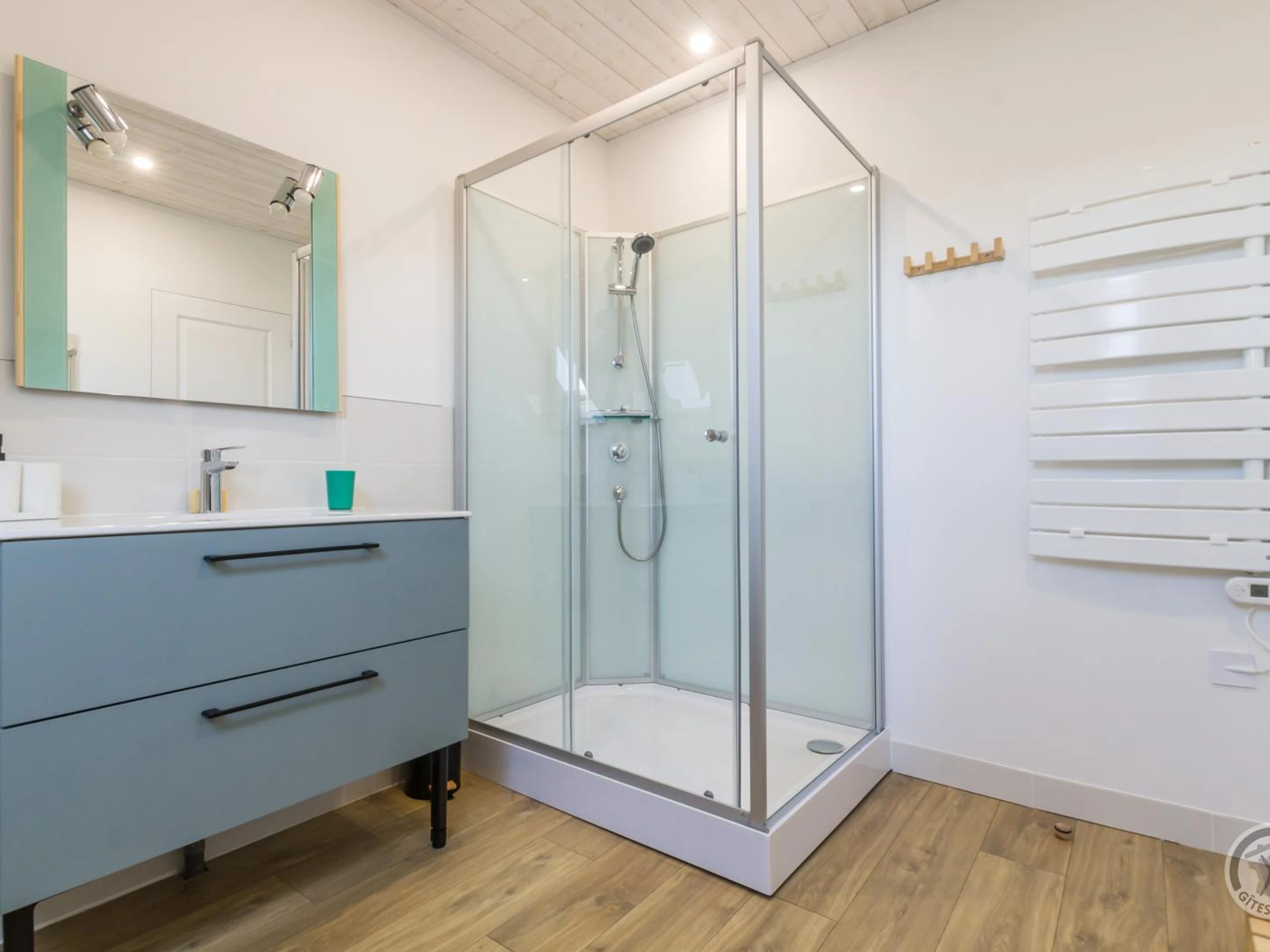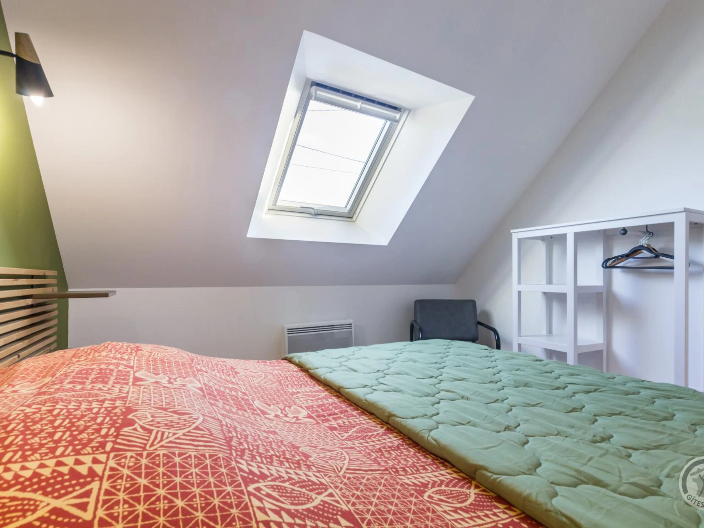 Doppelhaushälfte, angrenzend an ein weiteres Haus und das Haus des Eigentümers. Wohnzimmer (TV mit Glasfaseranschluss) mit offener Küche (Backofen, Induktionskochfeld, Kühlschrank mit Gefrierfach, Geschirrspüler, Mikrowelle, Waschmaschine). Separates WC. Im Obergeschoss befinden sich Schlafzimmer 1 (zwei Betten 90x190 cm) und Schlafzimmer 2 (Bett 160x200 cm, Spannbettlaken 180 cm empfohlen). Duschbad mit WC. Babyausstattung auf Anfrage. Elektrische Heizung (Wärmepumpe) gegen Aufpreis. Bettwäsche und Handtücher können gemietet werden. Reinigungsservice gegen Aufpreis. Das Haus verfügt über kein eigenes Grundstück, aber einen privaten, umzäunten Außenbereich im 30 m entfernten Garten des Eigentümers (Gartenmöbel, Liegestuhl, Grill). Parkplatz vorhanden. Nur 500 m vom Strand entfernt liegt dieses charmante Häuschen in einem ruhigen Weiler, der bei Wanderern (GR223) und Radfahrern (EuroVelo 4) beliebt ist. Neben Spaziergängen und Radtouren bietet die Umgebung zahlreiche Freizeitmöglichkeiten, allen voran den Golfplatz Utah Beach direkt neben dem Weiler mit seinem Restaurant und Meerblick. Auch die historische Stätte von Utah Beach und der Hafen von Saint-Vaast-la-Hougue, den man von der Ufermauer aus sehen kann, sind ganz in der Nähe. Patrick und seine Partnerin Marie-Ange heißen Sie herzlich in diesem 2024 komplett renovierten Ferienhaus willkommen. Die charmante Küche mit ihrem hellblauen Fliesenspiegel bildet das Herzstück des Wohnbereichs. Eine etwas steile Treppe führt zu einem hellen Zwischengeschoss, wo sich die beiden Schlafzimmer und das geräumige Badezimmer befinden. Die Eigentümer bieten einen kleinen, umzäunten Garten hinter dem Haus zum Entspannen an. Marie-Ange beherrscht die Gebärdensprache und kann hörgeschädigten Gästen behilflich sein.