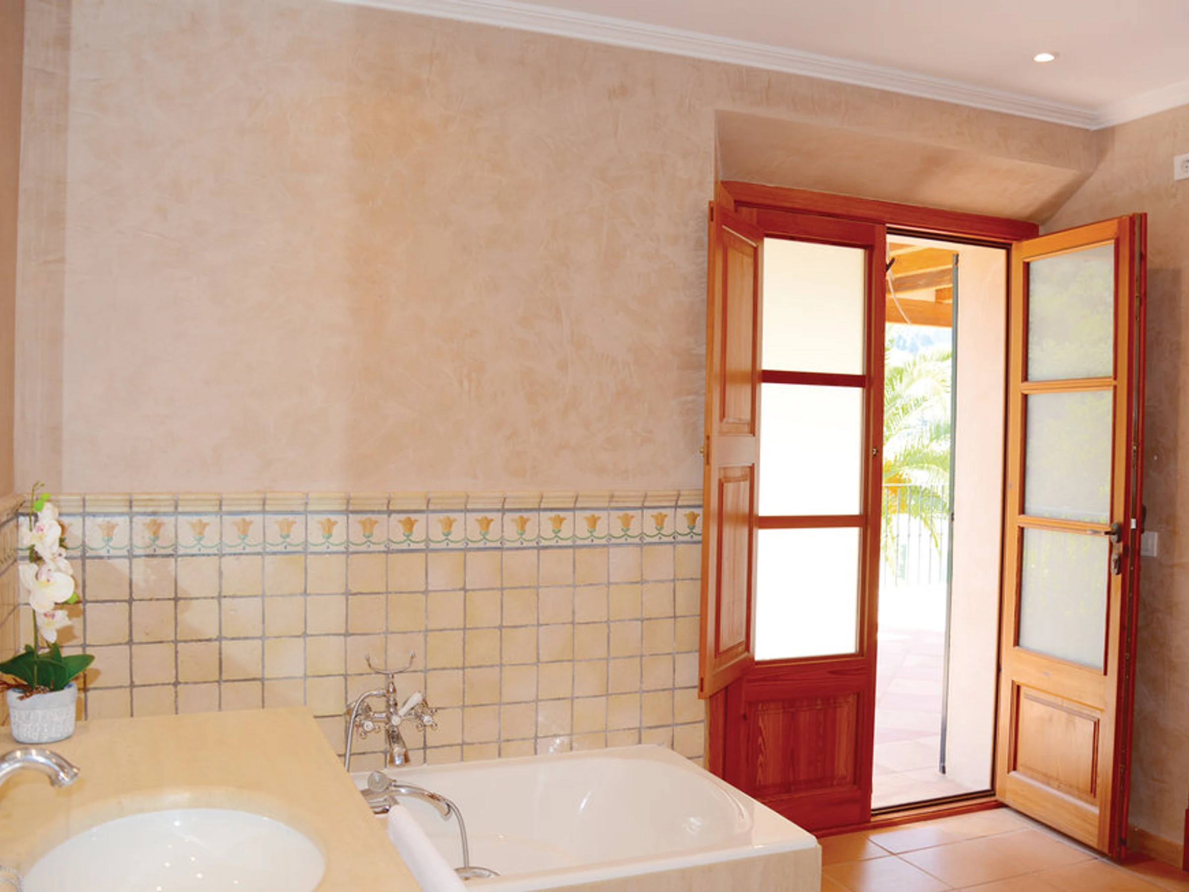 Luxuriöse Bergfinca mit hochwertiger Ausstattung, großzügigen Terrassen und schöner Weitsicht auf die umliegenden Berge. Sie wohnen auf 3 eleganten, mit einem Lift verbundenen Wohnebenen und in der untersten Etage finden Sie das Hallenbad und den Garten mit einer Rasenfläche. Die großen Schiebetüren des Pools können geöffnet werden. Die 4 weiträumigen Schlafzimmer sind alle en Suite. Ein weiteres, praktisches Bad mit separater Dusche und WC befindet sich im EG beim Schwimmbad. Auf Anfrage und Anmeldung (min. 1 Woche vorher) kann das Schwimmbad beheizt werden (400 EUR p. Woche). Kamin nur dekorativ. Luxuriöse Bergfinca mit hochwertiger Ausstattung Luxuriöse Bergfinca mit hochwertiger Ausstattung, großzügigen Terrassen und schöner Weitsicht auf die umliegenden Berge. Sie wohnen auf 3 eleganten, mit einem Lift verbundenen Wohnebenen und in der untersten Etage finden Sie das Hallenbad und den Garten mit einer Rasenfläche. Die großen Schiebetüren des Pools können geöffnet werden. Die 4 weiträumigen Schlafzimmer sind alle en Suite. Ein weiteres, praktisches Bad mit separater Dusche und WC befindet sich im EG beim Schwimmbad. Auf Anfrage und Anmeldung (mind. 1 Woche vorher) kann das Schwimmbad beheizt werden (400 EUR p. Woche). Kamin nur dekorativ. Fornalutx liegt eingebettet zwischen den Bergketten des Tramuntanagebirges, eine einmalige Gebirgskulisse, die zum Weltkulturerbe der Unesco ernannt worden ist. Dieses Bergtal liegt oberhalb von Soller und besticht durch die vielen Orangenplantagen und die saftig grünen Olivenhaine. Ein sympathisches Bergdörfchen mit ganz bensonderem Flair - es wurde sogar als eines der schönsten Orte von ganz Spanien prämiert. Die nahegelegenen Restaurants sind inselweit für die gute Küche bekannt. Der kleine Supermarkt und der Bäcker mit vielen landestypischen Spezialitäten sind leicht zu Fuss zu erreichen. Obligatorische Extra Dienstleistungen vor Ort: Verbrauchsabschlag - 100.0 EUR pro Tag; Kurtaxe, Max - 1.0 EUR pro Tag und Person; Erhältlich vor Ort mit Aufpreis: Bettwäsche/Handt. - 0.0 EUR pro Person; Reinigung - 0.0 EUR pro Aufenthalt;
