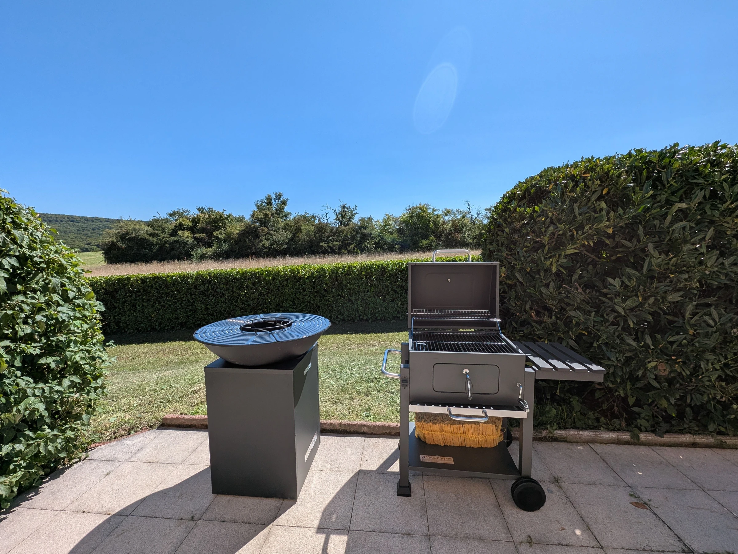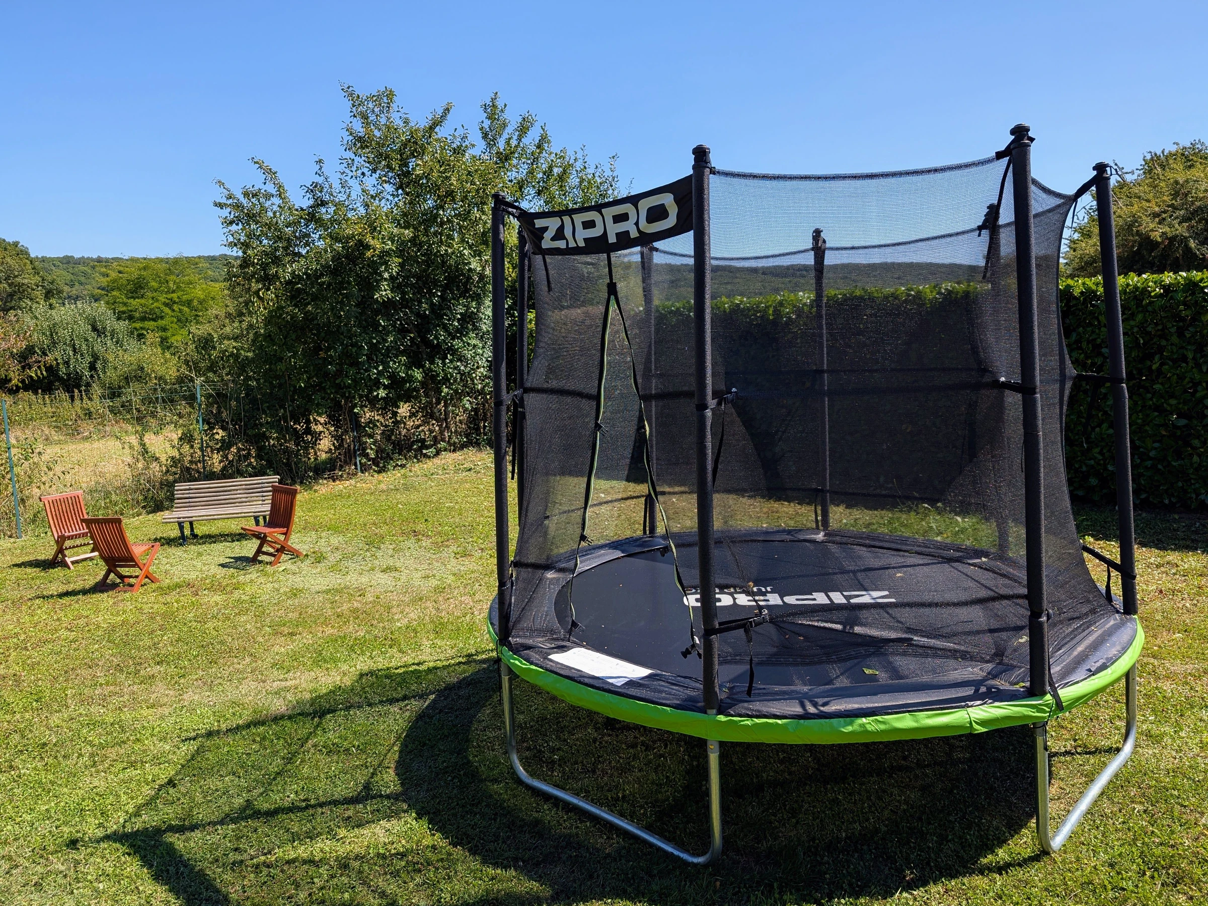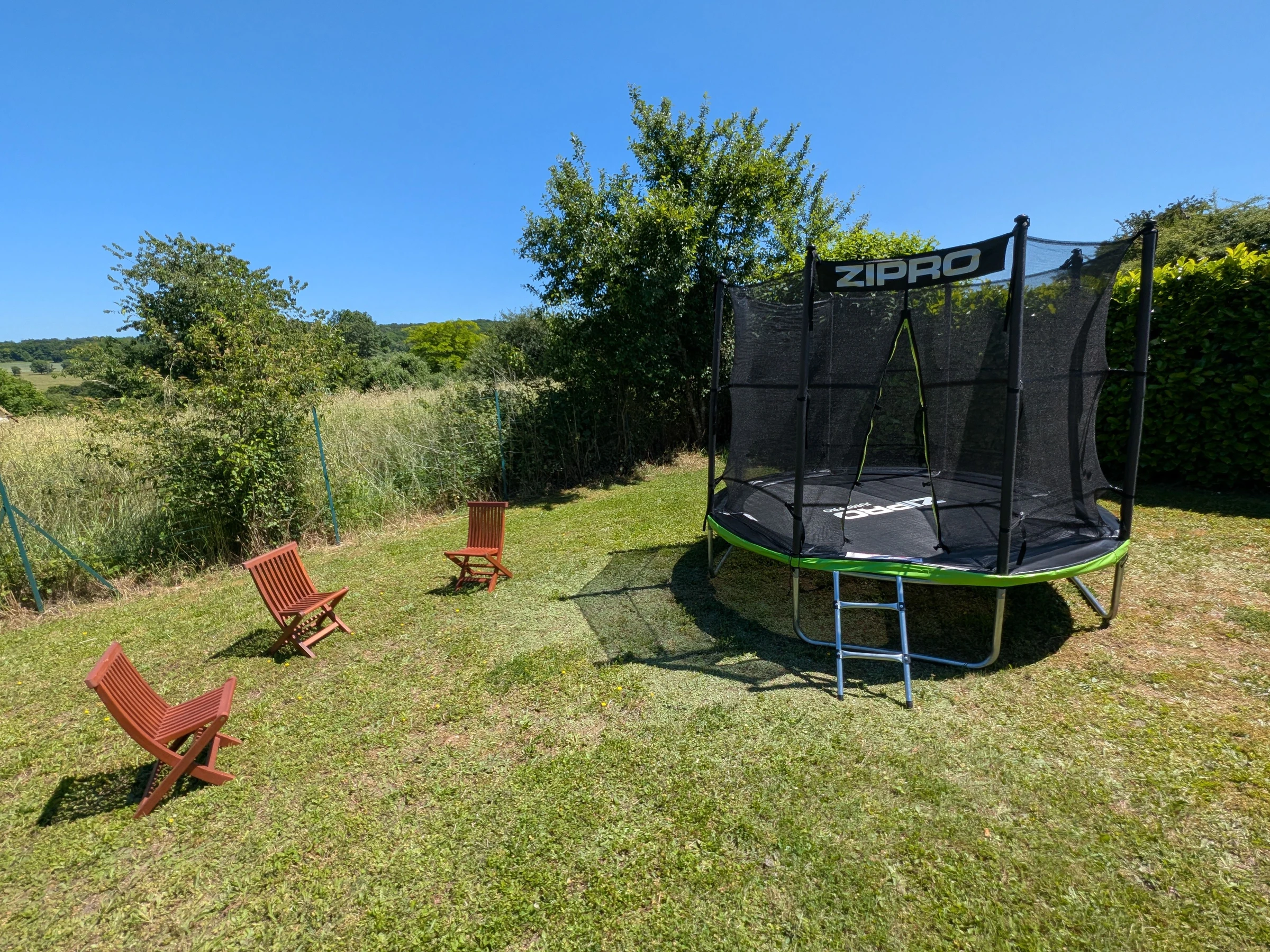 Sie können außerdem den großzügigen Garten mit einer Relax-Lounge, einem Trampolin für Kinder, Mini-Fußballtoren, einer Hängematte und einer Terrasse mit Grill und Plancha für Ihre Sommermahlzeiten im Freien genießen.