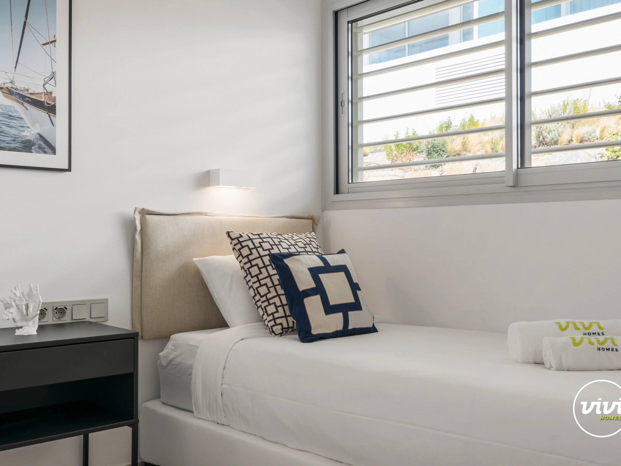 Unterkunft Unterkunft hat 85 m² befindet sichhübsche und moderne, mit Blick auf den Strand / das Meer und die Berge.