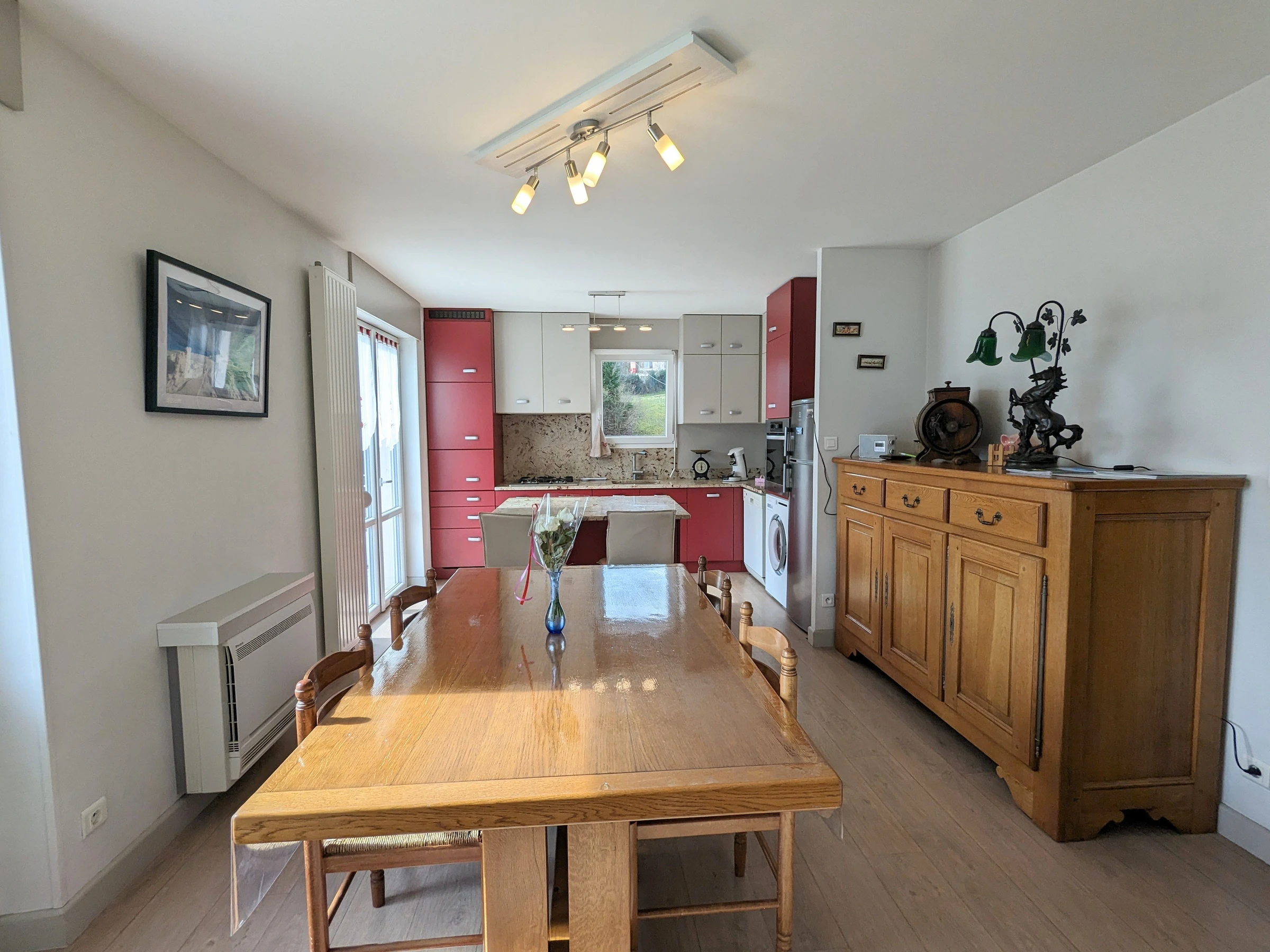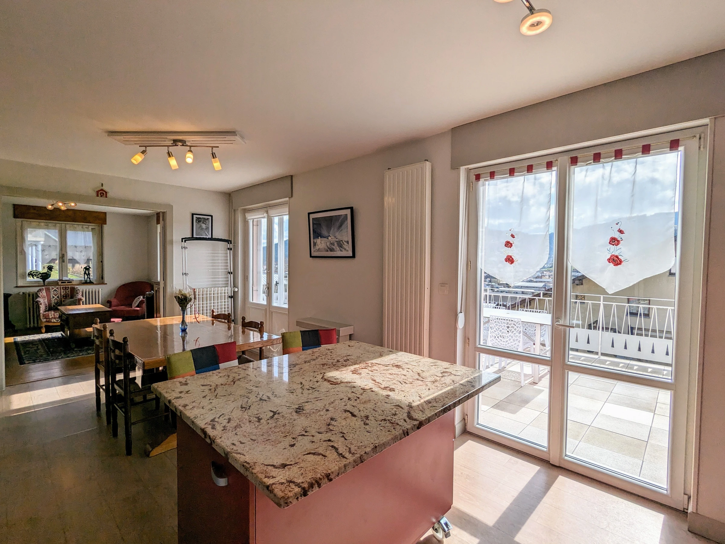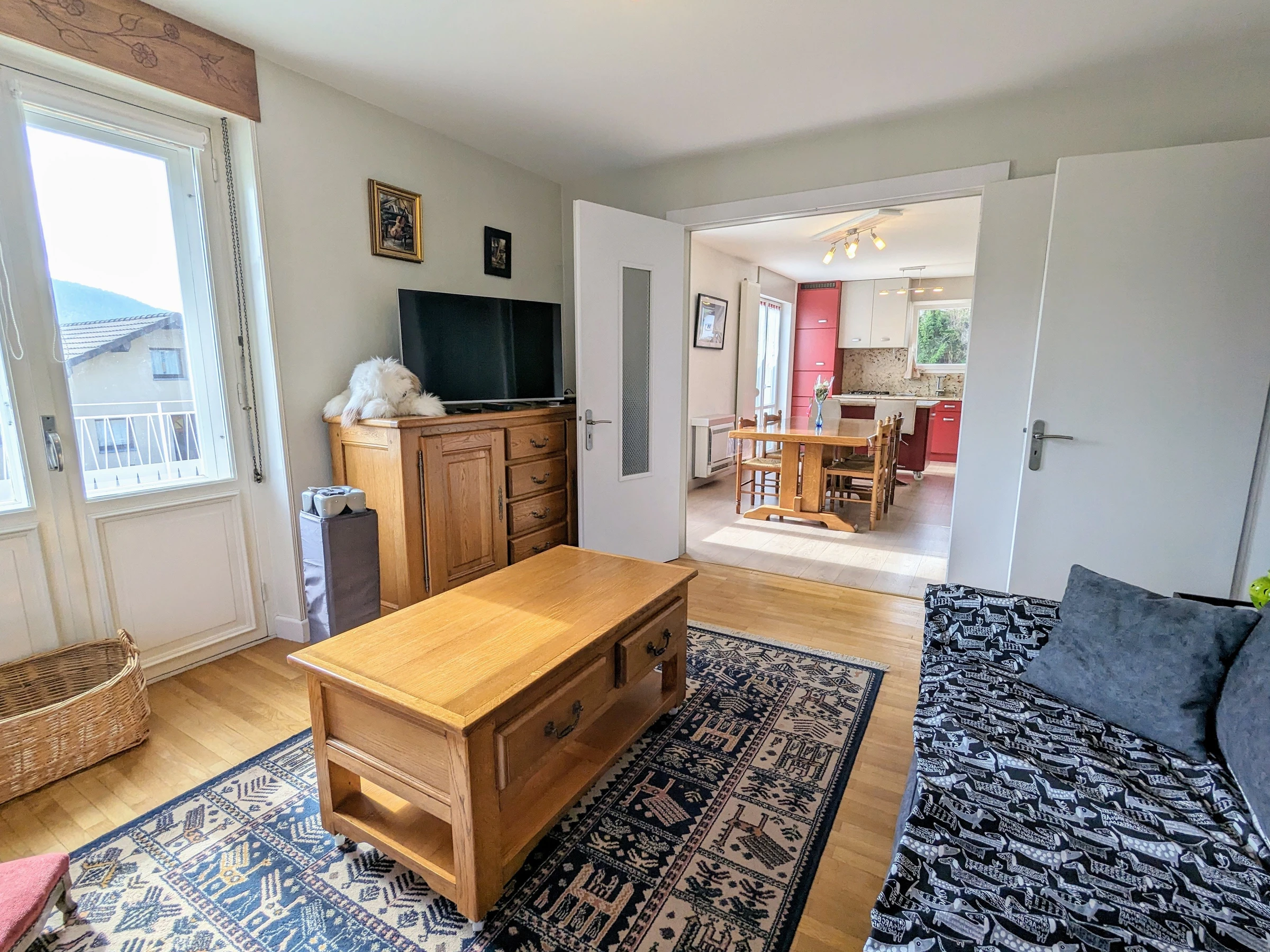 - Ein Wohnzimmer mit: einer ausgestatteten Küche, 4 Gasbrennern, Backofen, Kühlschrank mit Gefrierfach. Spülmaschine. Mikrowelle. Filter- und Senseo-Kaffeemaschine, Toaster, Wasserkocher. Waschmaschine. Küchenset. Raclettegerät, Stabmixer, elektrischer Zerkleinerer und Waffeleisen. Ein Essbereich, der Platz für bis zu 4 Personen bietet. Ein Loungebereich mit 140/190 umwandelbarem Sofa (Lattenrost mit 10 cm dicker Matratze). FERNSEHER. W-LAN.