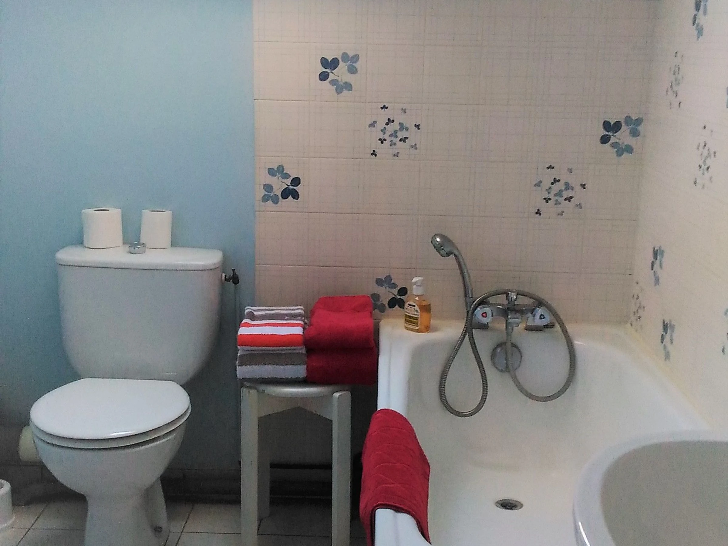 Gemeinsam mit den anderen Zimmern: Gemeinsamer Speisesaal mit Kochnische (Spüle, Mikrowelle, Minibackofen, Elektroherd), in dem das Frühstück serviert wird. Das Frühstück ist im Mietpreis inbegriffen. 1 Zimmer mit einem 140 cm breiten Bett und eigenem Bad.