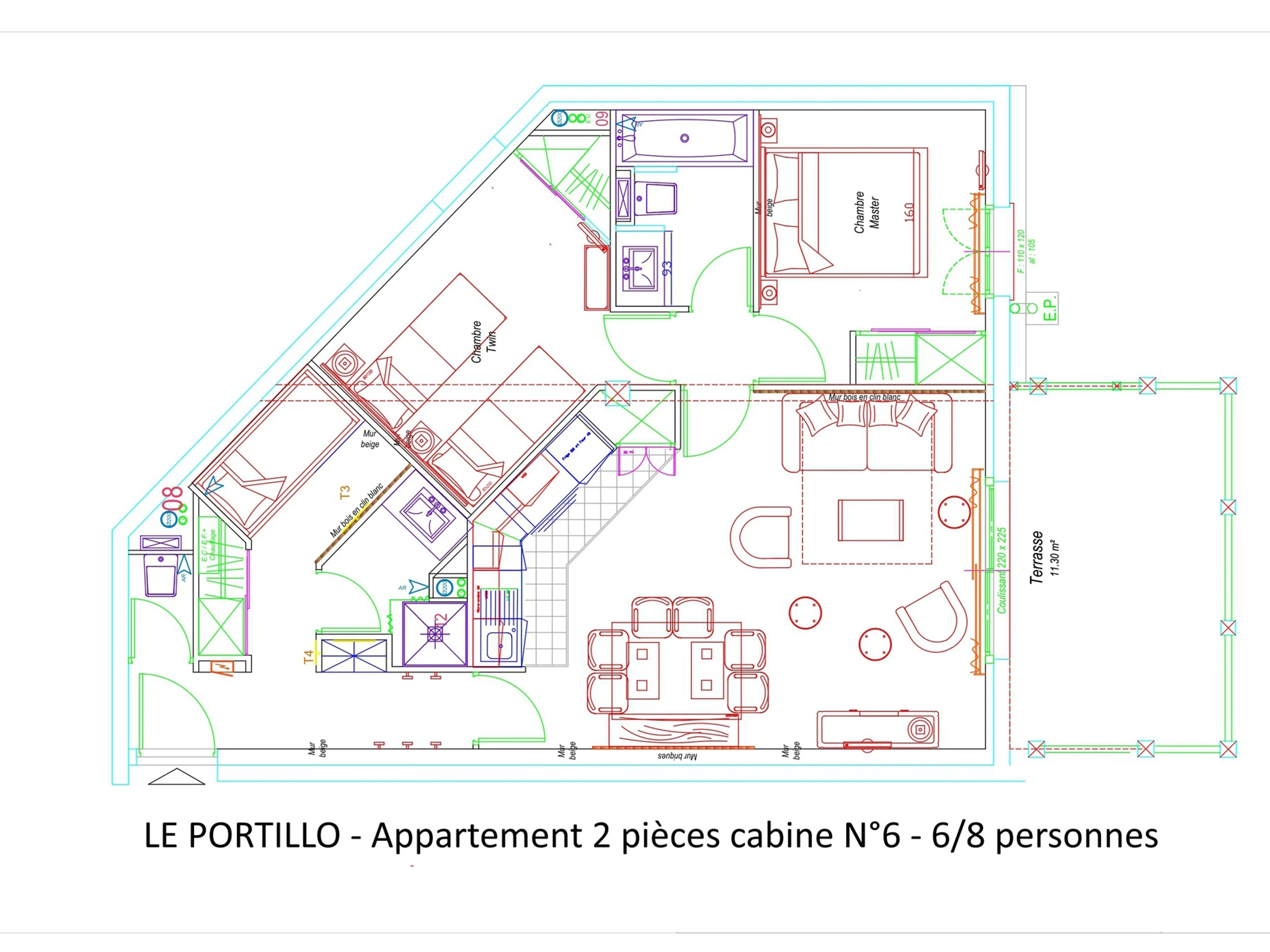 LE PORTILLO Residenz mit Pool, Studio für 6 Personen, 52 m², Südwestlage mit Blick auf die Pisten und den Ort, im 1. Stock mit Balkon.
