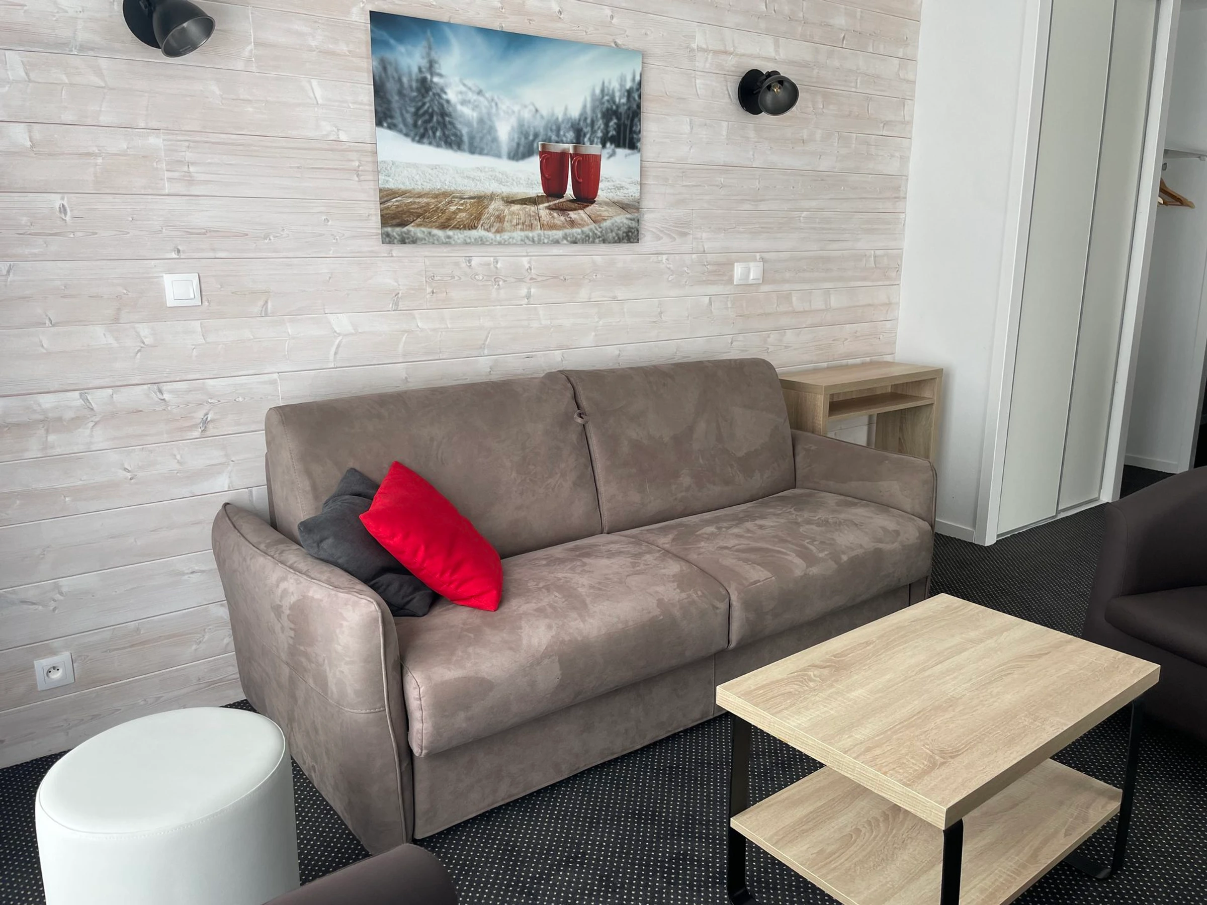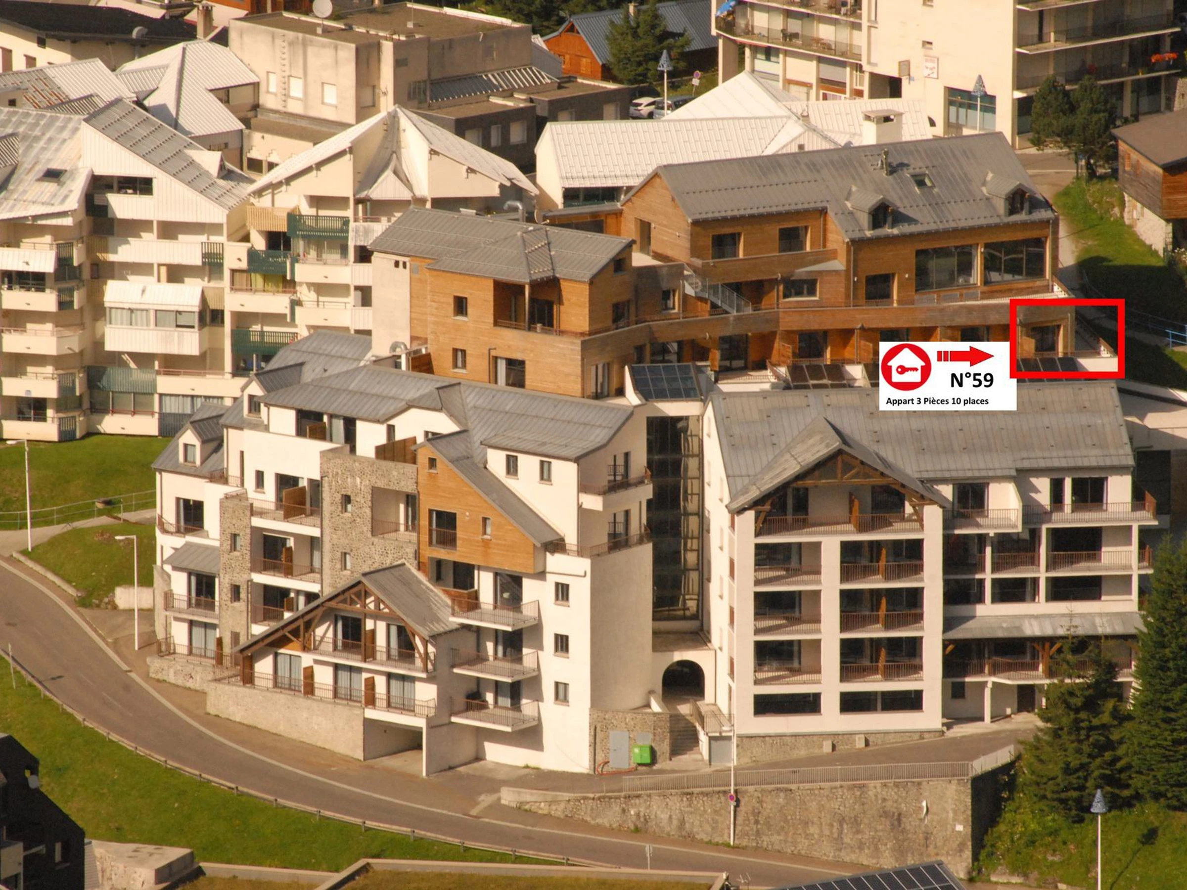 LE PORTILLO Residenz mit Pool, 4-Zimmer-Apartment für 6–8 Personen, 74 m², Südlage, Blick auf die Pisten, im 5. Stock mit Terrasse.