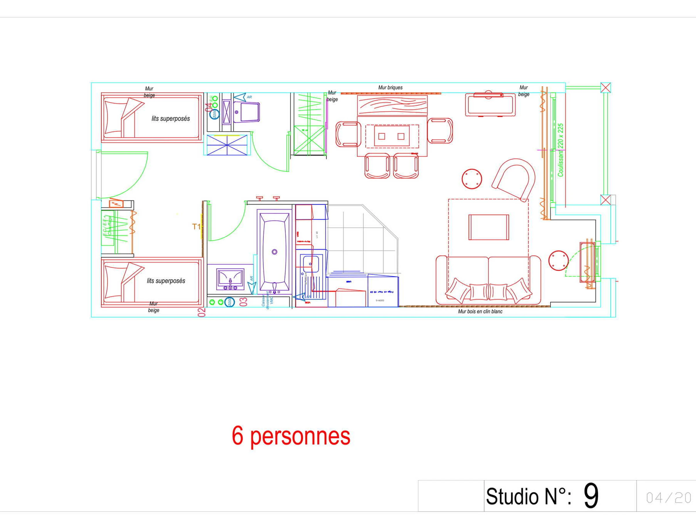 LE PORTILLO Residenz mit Pool, Studio für 6 Personen, 38 m², Südwestlage, Blick auf die Pisten und den Ort, im 1. Stock mit Balkon.