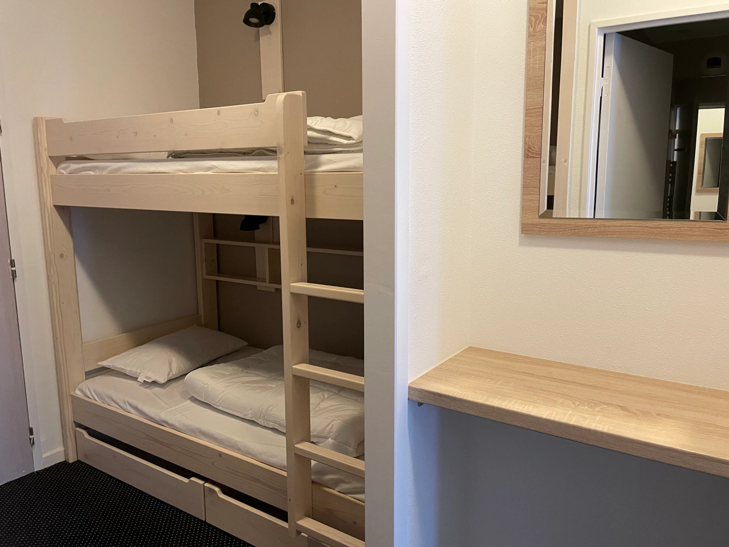 Eingangsbereich: Schlafbereich mit 2x2 Etagenbetten (90 cm).