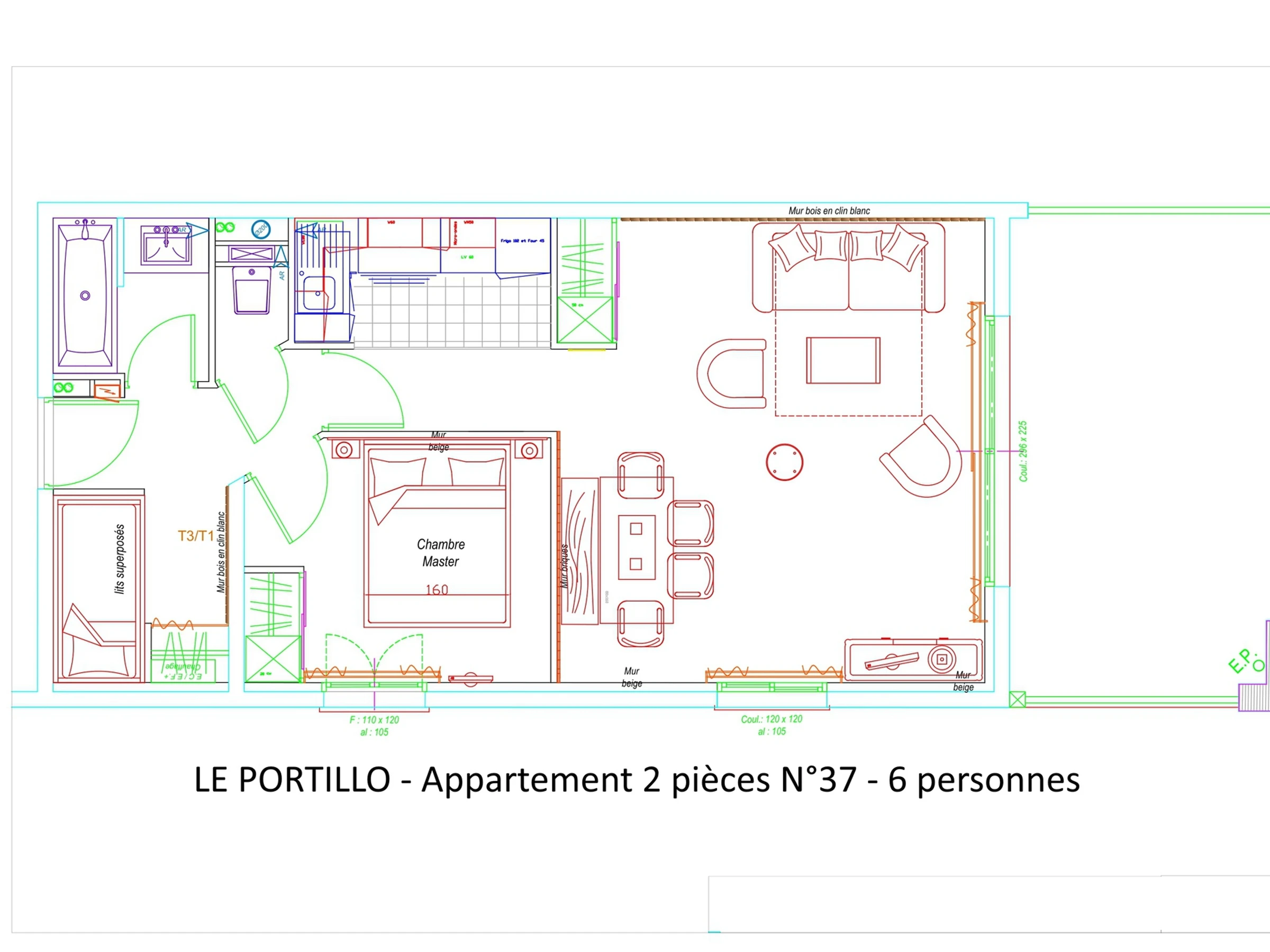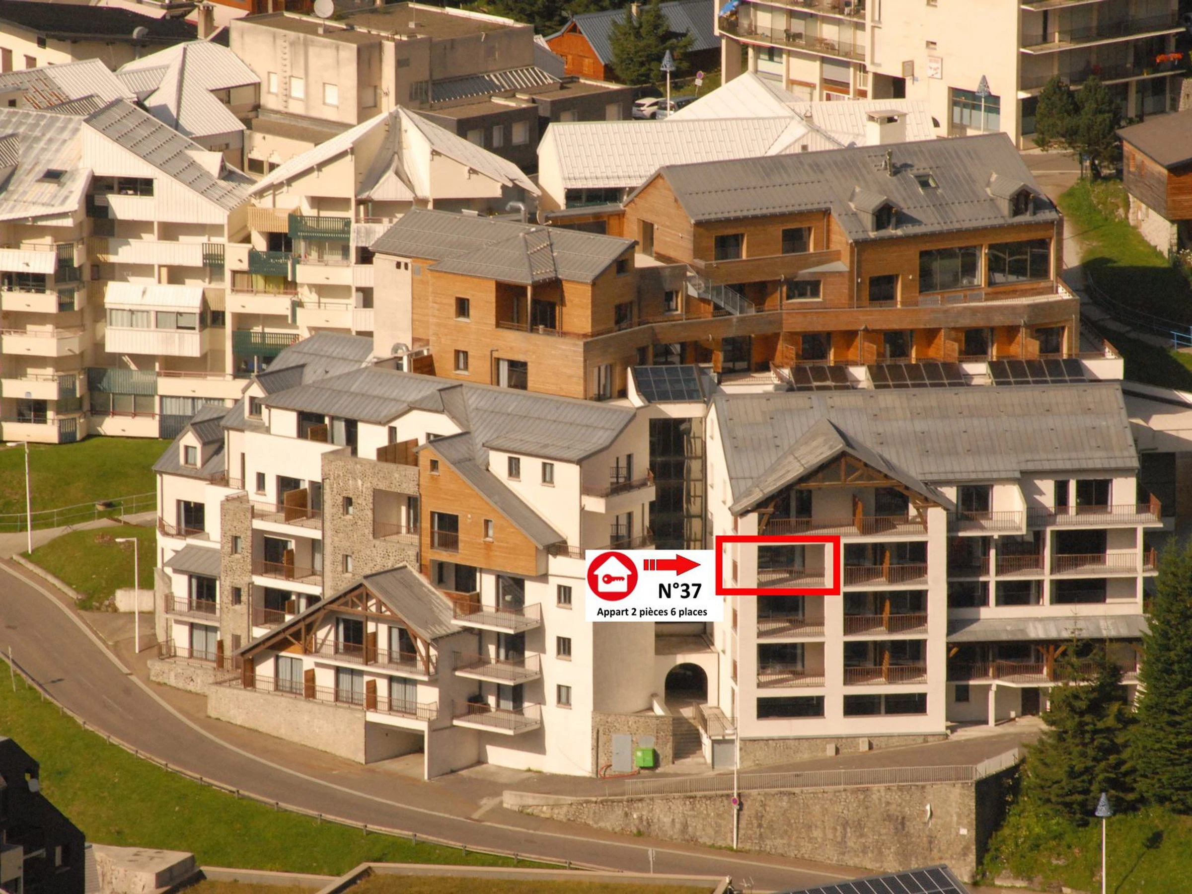 LE PORTILLO Residenz mit Pool, 2-Zimmer-Apartment für 6 Personen, 49 m², Südwestlage, Blick auf die Pisten und Berge, im 3. Stock mit Terrasse.