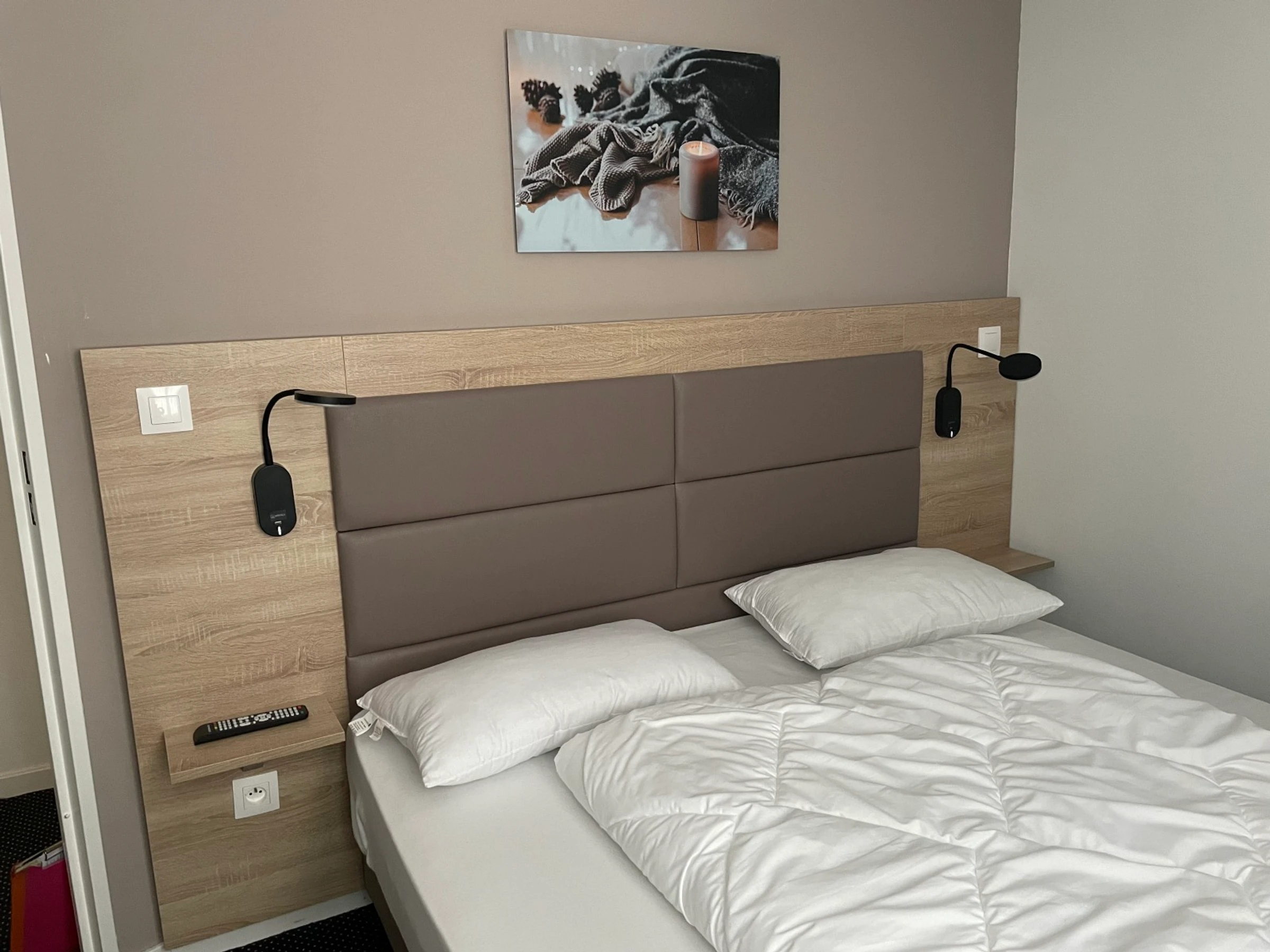 Schlafzimmer: Doppelbett (160 cm), Fernseher.