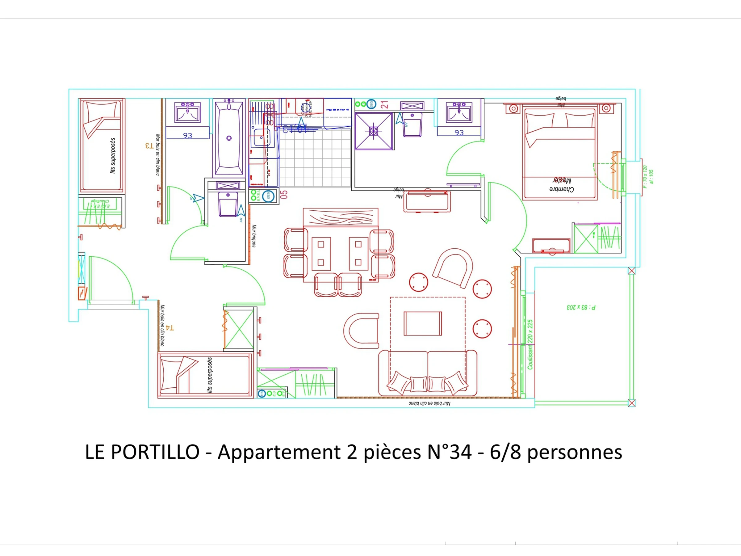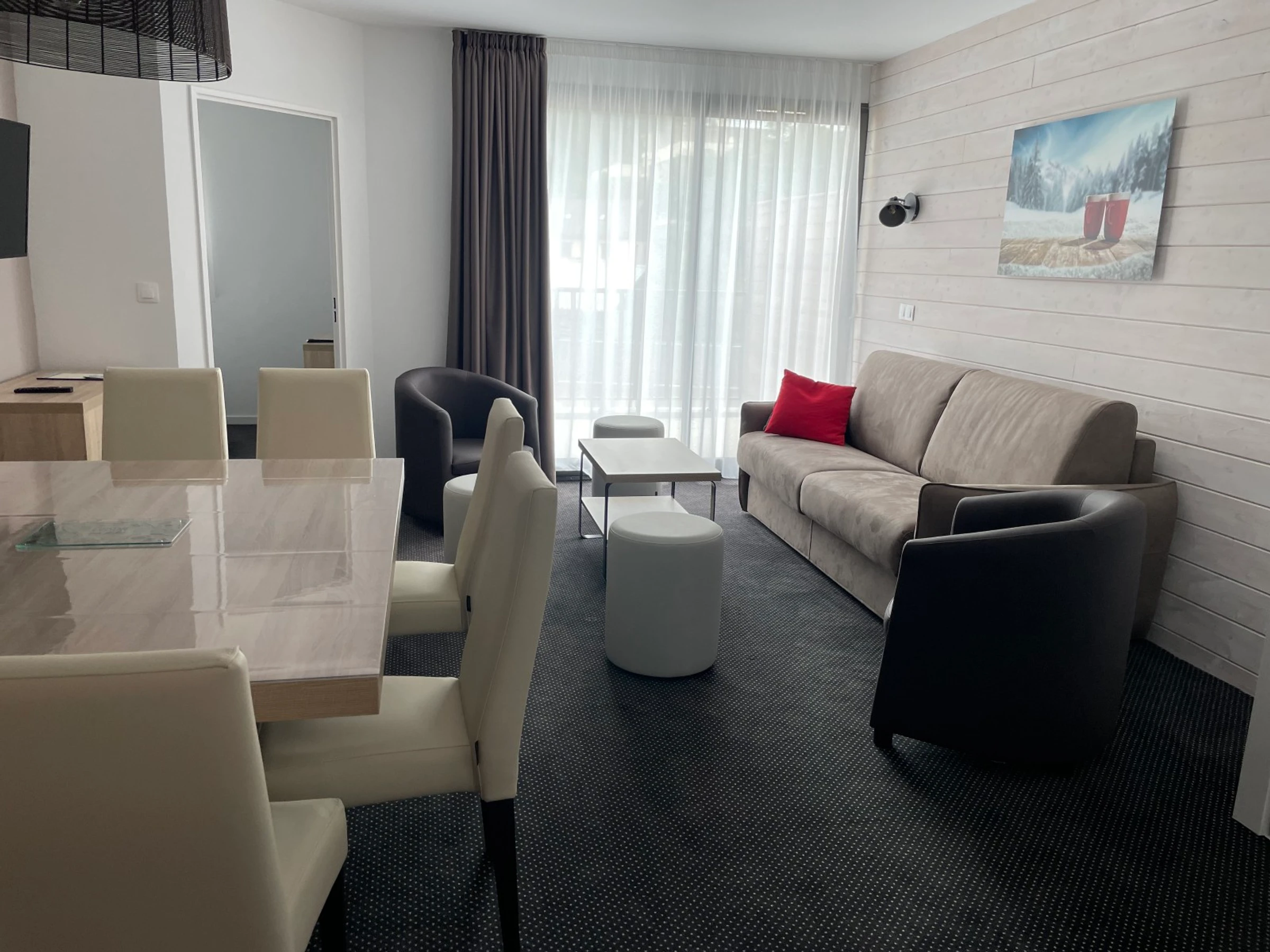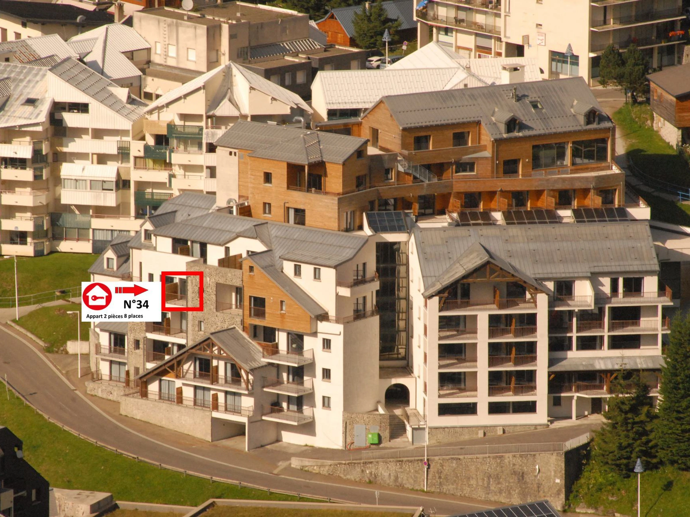 LE PORTILLO Residenz mit Pool, 2-Zimmer-Apartment für 8 Personen, 61 m², Südwestlage, Blick auf die Pisten und den Ort, im 3. Stock mit Terrasse.