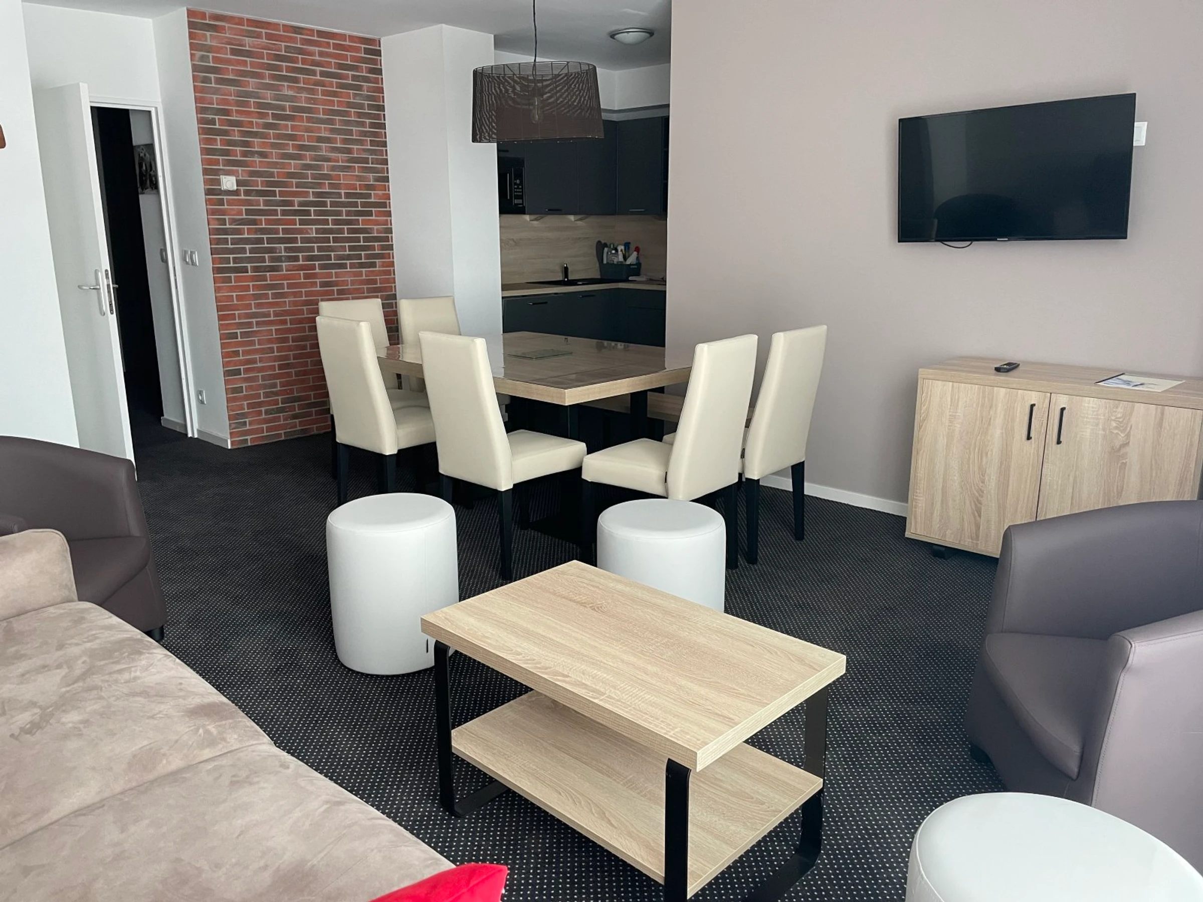 Wohnzimmer: Doppelschlafsofa (160 cm), Fernseher.