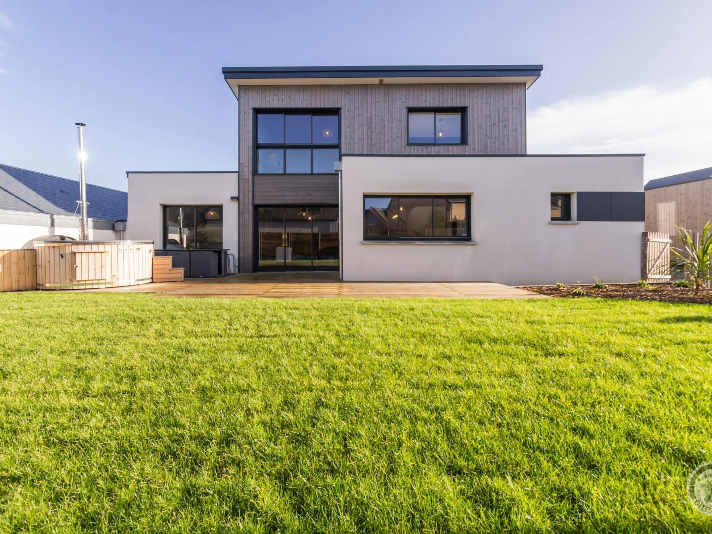 Modernes Einfamilienhaus. Eingang mit separatem WC. Großes Wohnzimmer mit offener Küche (Backofen, Induktionskochfeld mit integrierter Dunstabzugshaube, Geschirrspüler, Kühlschrank, Espressomaschine, Heißluftfritteuse). Hauswirtschaftsraum (Waschmaschine, Gefrierschrank). Wohnbereich (Pelletofen, TV, Bluetooth-Lautsprecher, Glasfaser-Internet). Schlafzimmer 1 (160x200 Bett) mit eigenem Duschbad und Zugang zur Terrasse. Im Obergeschoss: Schlafzimmer 2 (1 160x200 Bett), Schlafzimmer 3 (2 80x200 Ausziehbetten, die zusammengestellt werden können) und 1 160x200 Bett. Duschbad mit WC. Wohnnetz auf dem Treppenabsatz. Babyausstattung auf Anfrage. Bettwäsche und Handtücher werden gestellt. Betten bei Ankunft bezogen. Reinigungsservice gegen Aufpreis. Heizung mit Pelletofen im Erdgeschoss (Pellets werden bis zu 2 Säcke/Woche gestellt) und Elektroradiatoren im Obergeschoss. Alle Nebenkosten inklusive. Privater, umzäunter Garten. Holzterrasse. Gartenmöbel. Grill. Liegestühle. Beheiztes nordisches Bad mit Wärmepumpe (konstante Temperatur) und Hydrojets. Privatparkplatz für 3 bis 4 Fahrzeuge. Nur 2,5 km vom Strand entfernt ist das Dorf Gouville/Mer mit seinen Dünen, den berühmten kleinen bunten Hütten und den Austernbänken ein wunderschönes Ziel für Ihren Familienurlaub. Diskret am Ende einer Sackgasse gelegen, entdecken Sie ein bemerkenswertes, modernes Haus mit großzügigem Raumangebot und perfekter Ausstattung. Große Erkerfenster bieten eine dauerhafte Verbindung zur 50 m² großen Terrasse und dem umzäunten Garten. François teilt dieses von ihm für seine Familie entworfene Gebäude gerne mit Ihnen. Ihre Kinder werden den Spielbereich im Erdgeschoss sowie das Wohnnetz im Obergeschoss genießen, das die Erwachsenen für ihren Mittagsschlaf nutzen. Ein echtes nordisches Bad steht Ihnen für wahre Entspannungsmomente zu jeder Jahreszeit zur Verfügung. Beachten Sie auch, dass der Eigentümer ausgebildeter Osteopath ist und zwei Tage pro Woche in seiner kleinen Praxis neben dem Haus praktiziert. Sie können bei Bedarf eine Sitzung buchen.