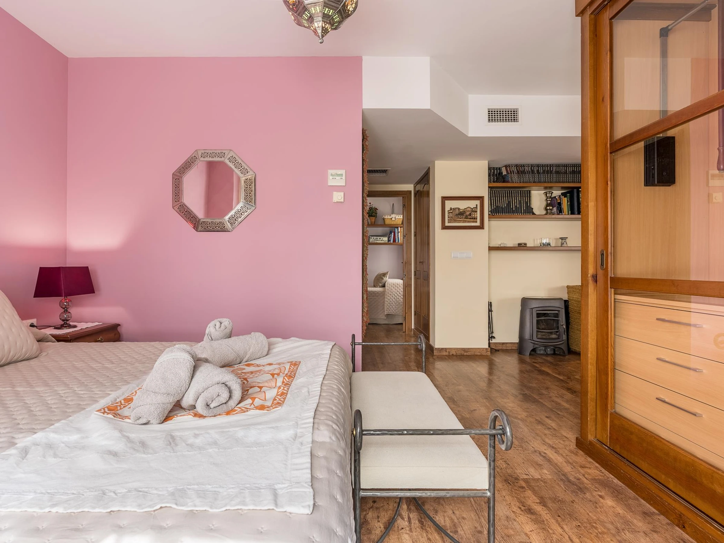 Die Wohnung befindet sich in einem geteilten Haus ohne Aufzug im 1. Stock. Treppensteigen ist erforderlich. Wie auf den Fotos zu sehen, besteht die Wohnung aus folgenden Räumen: - einem Wohnbereich mit Sofa und Fernseher, der in einen offenen Bereich mit Esstisch übergeht. - einer Küchenzeile, die wie ein Schrank verschließbar ist. Zum Kochen steht ein tragbarer Elektroherd zur Verfügung. - ein zum Wohnzimmer offener Schlafbereich mit einem Doppelbett (150 x 200) - 1 Schlafzimmer mit 1 Einzelbett für ein Kind (80 x 180) - 1 Badezimmer. Oberes Stockwerk der Wohnung: Sie haben Zugang zu einer gemütlichen, 14 m² großen Privatterrasse mit Stühlen und einem kleinen Tisch und Blick auf die Alhambra und die Stadt. Es ist ein warmer und gemütlicher Raum, der darauf ausgerichtet ist, den Gästen den bestmöglichen Aufenthalt zu bieten. *Im Gartenbereich gibt es ein Tor, das NICHT von Gästen benutzt werden darf. Wenn Sie nach 20:00 Uhr anreisen, lesen Sie bitte sorgfältig die Hausordnung, damit wir dafür sorgen können, dass es klappt :) Gesetzliche Registrierung für Reisende gemäß Dekret 1513/1959, Dekret 450/1975 und Real Decreto 933/2021. Aus rechtlichen Gründen müssen alle Reisenden ihre Ausweisdaten angeben. Diese werden nur bei bestätigten Reservierungen und wenige Tage vor Ihrer Ankunft über ein Online-Register angefordert. Sollten Sie die erforderlichen Daten vor Ihrer Ankunft nicht angeben, wird Ihre Reservierung ohne Rückerstattung storniert. Vielen Dank für Ihr Verständnis.