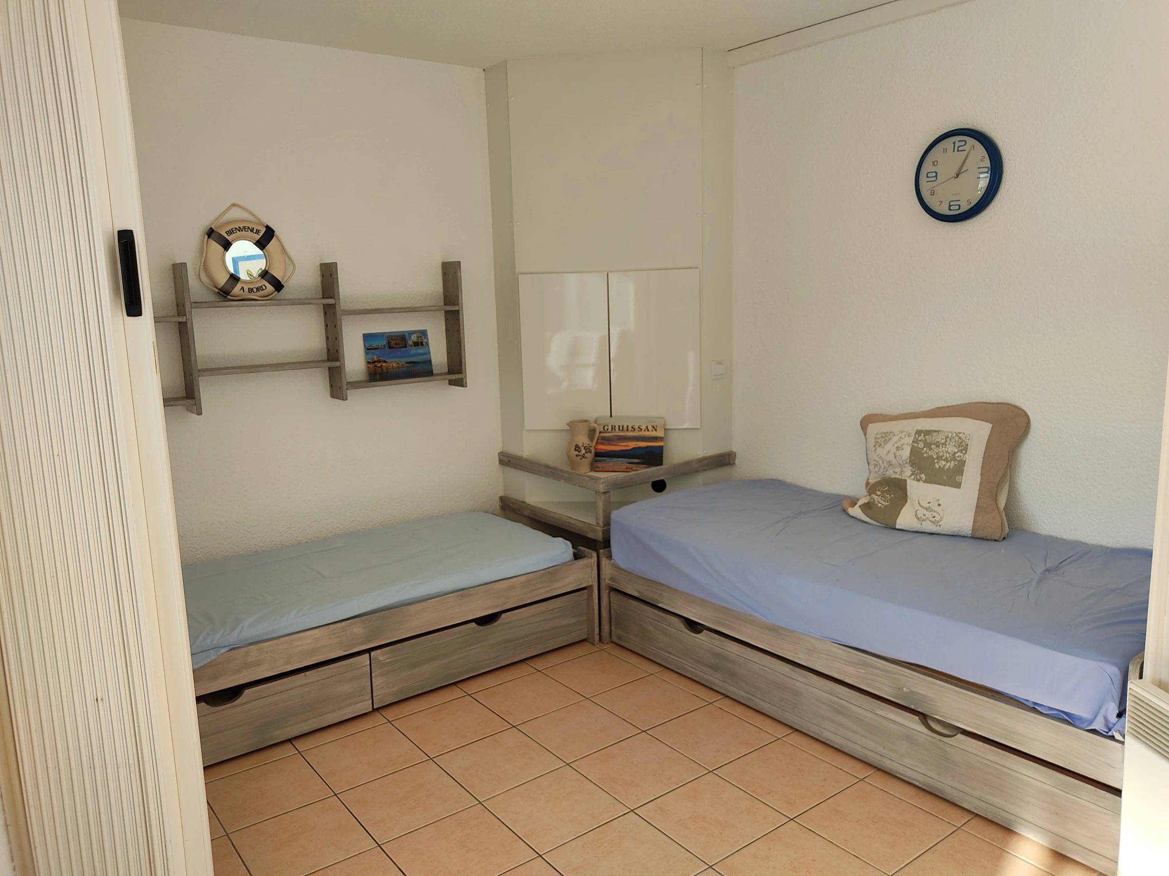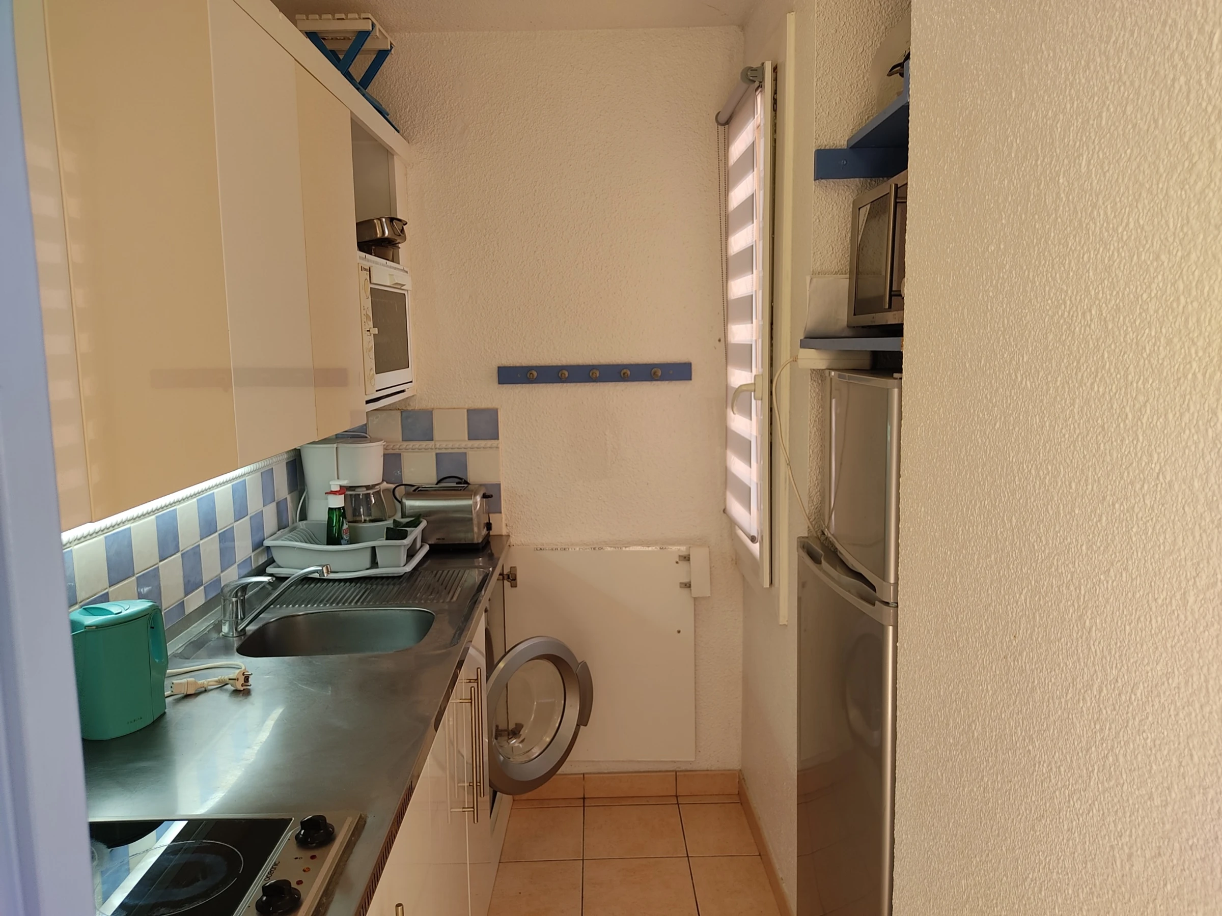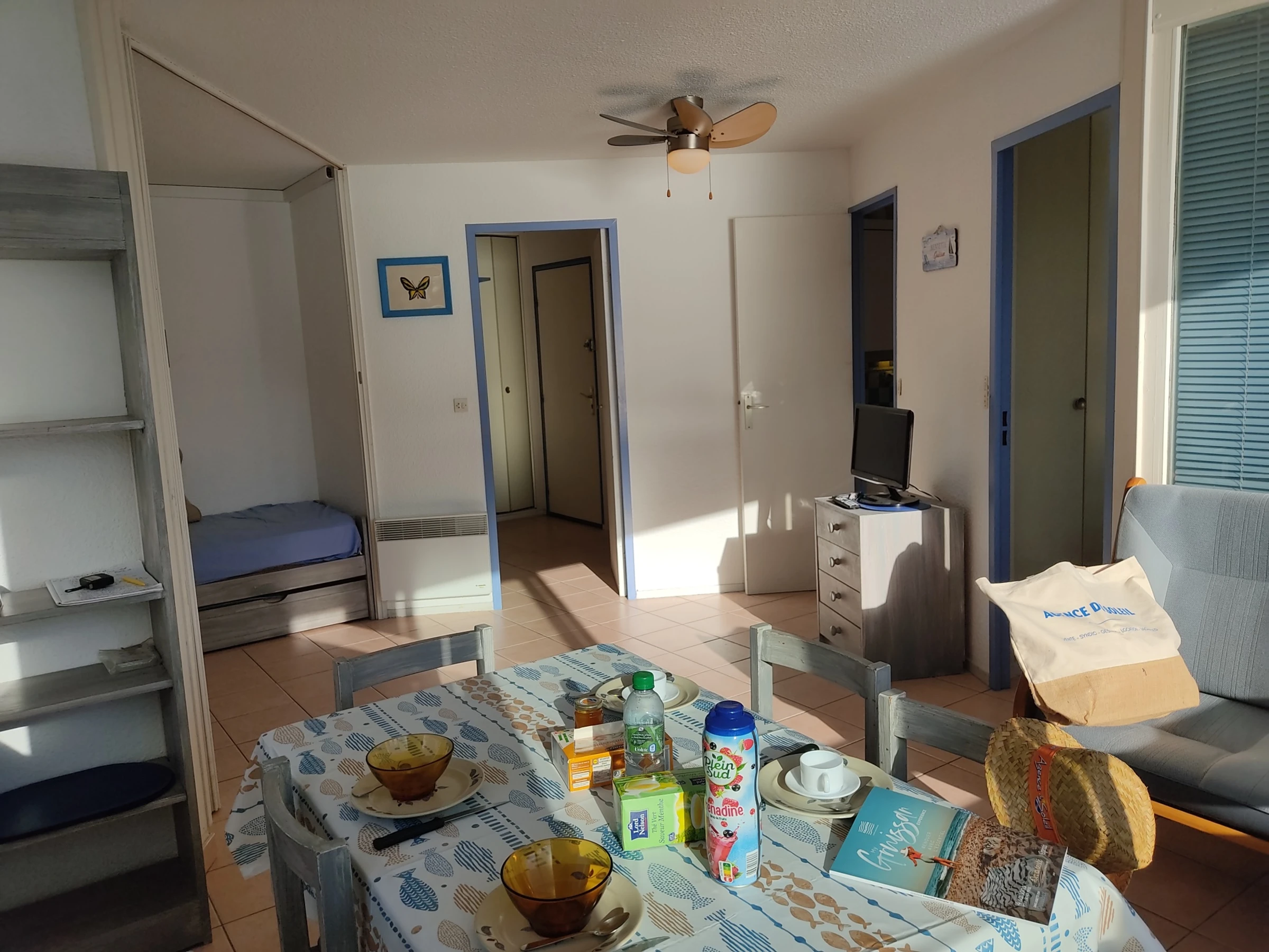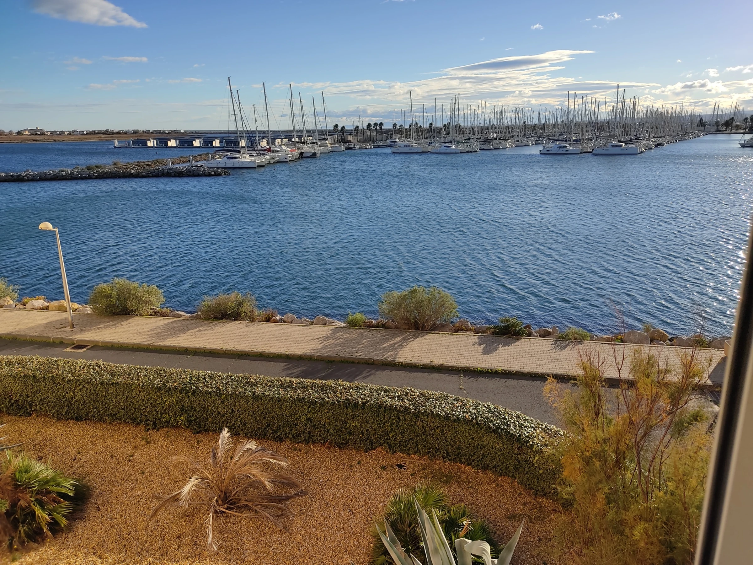 Herrlicher Blick auf das Meer und die Pyrenäen von dieser GERÄUMIGEN 40 m² großen Ein-Zimmer-Wohnung im 2. Stock, nur einen Steinwurf vom Strand Grazel (100 m) und dem Hafenzentrum (600 m) entfernt.