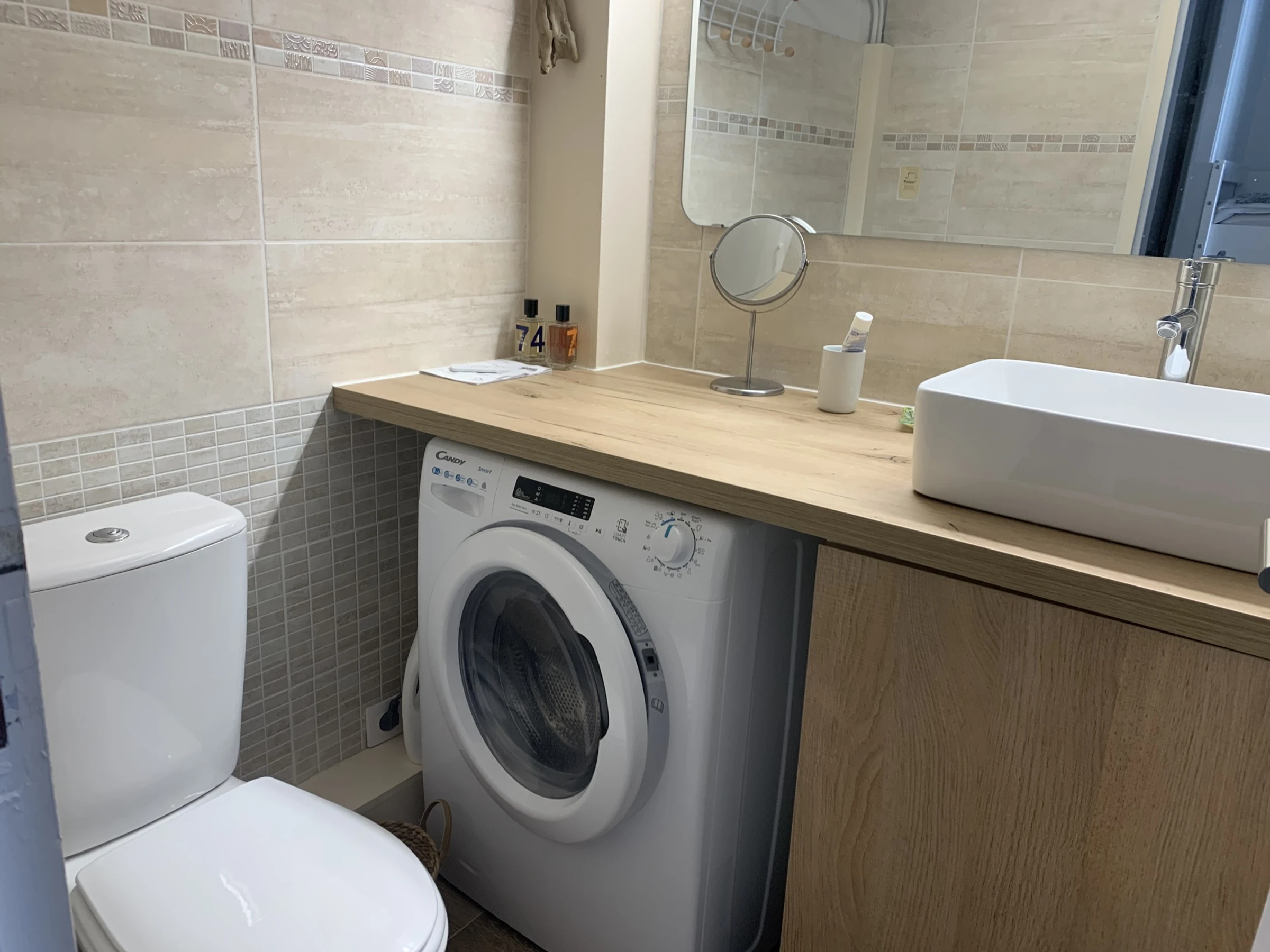 Ausstattung: Fernseher, Waschmaschine, World Waves. Modernes Badezimmer mit 1 Toilette – Schöne Ausstattung.
