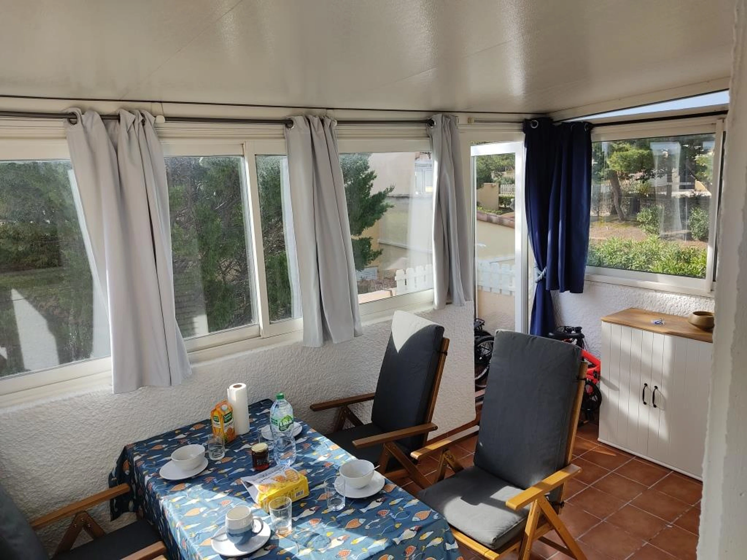 Vergessen Sie Ihre Fahrräder nicht, um Gruissan, das CLAPE-Massiv, die Salzwiesen und das kreisförmige Dorf (Märkte, Geschäfte, Unterhaltung) auf eine andere Art zu entdecken. Haustiergebühr – 10 kg: 30 € – 350 € Kaution – Bettwäsche nicht vorhanden – Optionale Reinigungsgebühr. Die Stromrechnungen werden von Oktober bis Ende Mai erhoben.